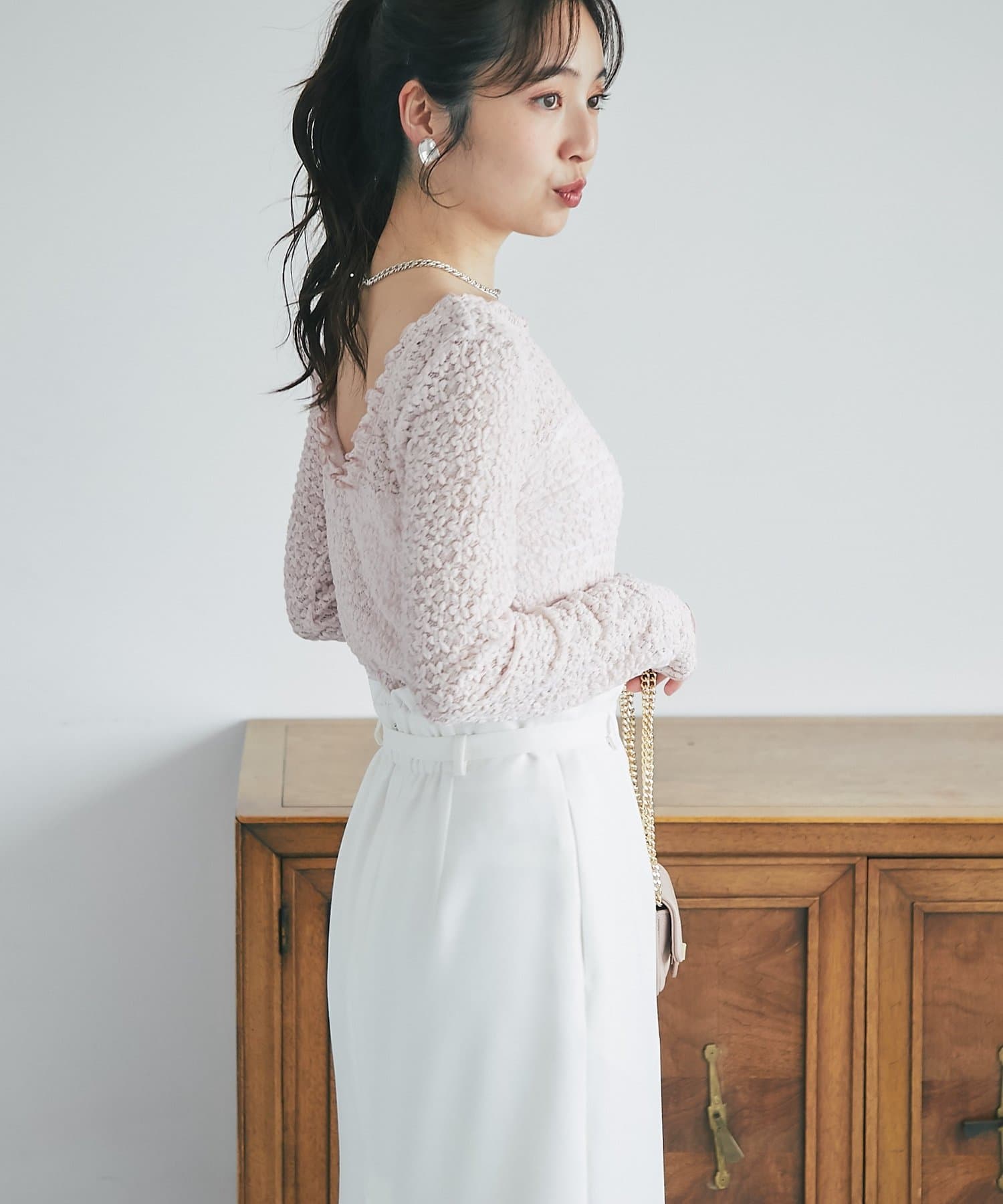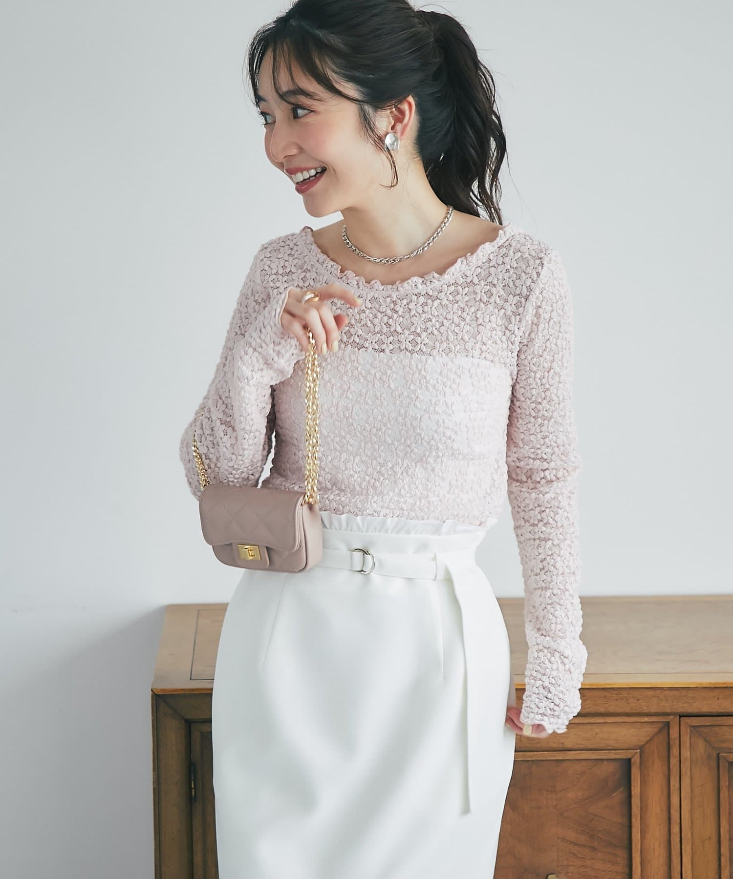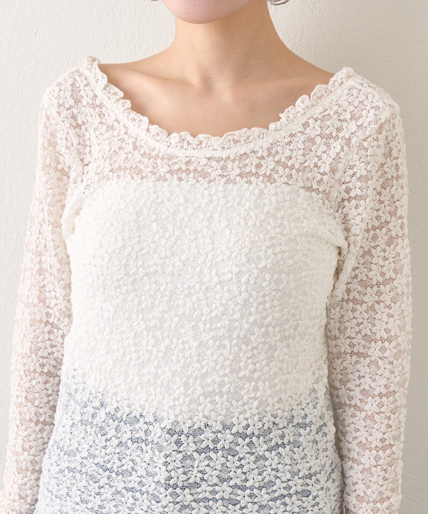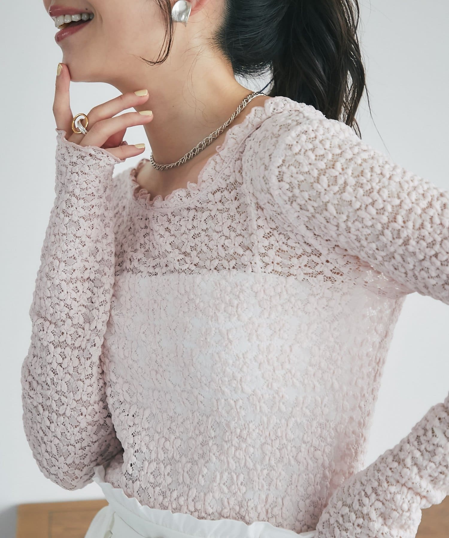繊細なレース素材を贅沢に使用した、フェミニンな印象のプルオーバー。