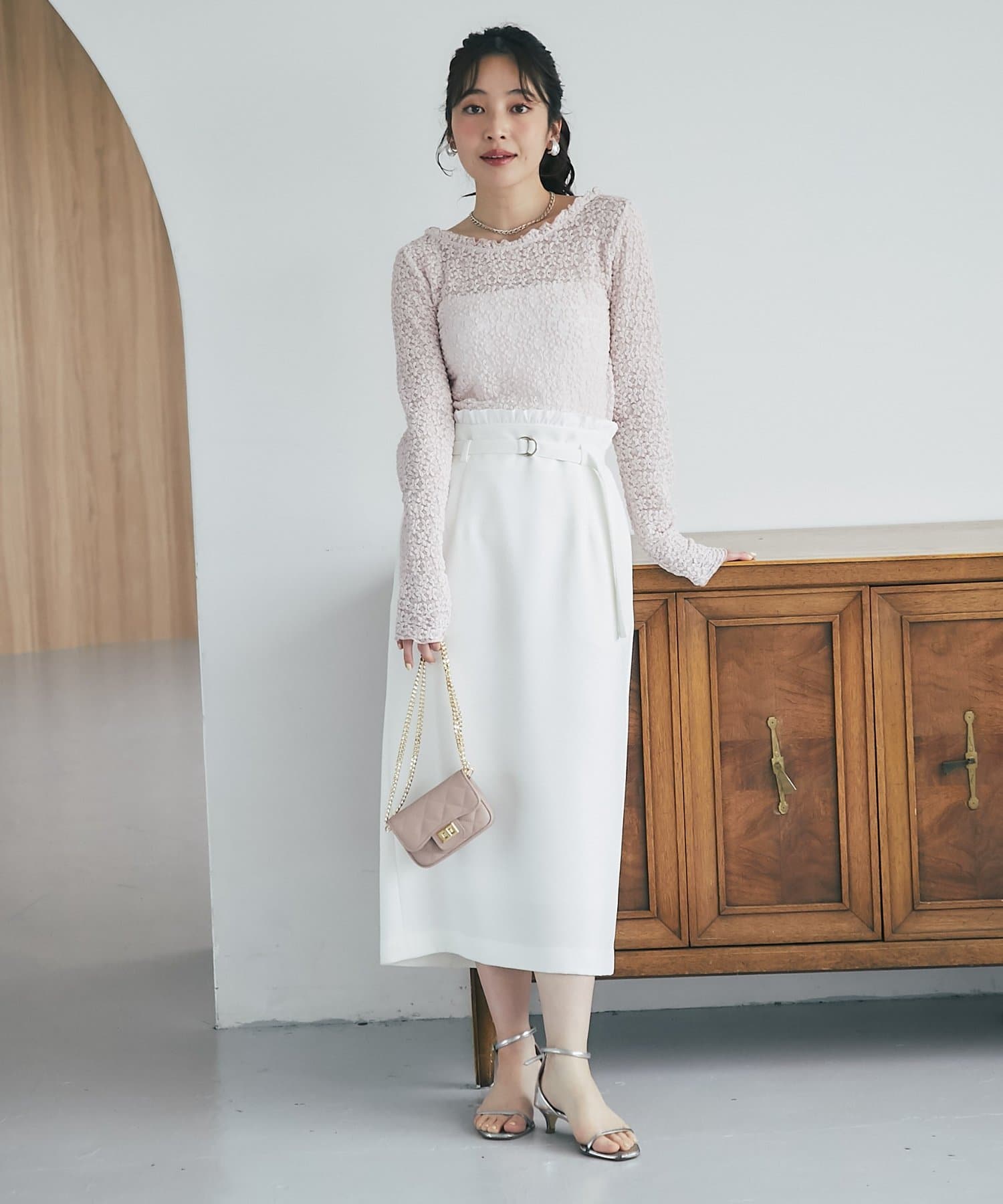 さりげない肌見せがデコルテをきれいに見せ、女性らしい抜け感を演出します。