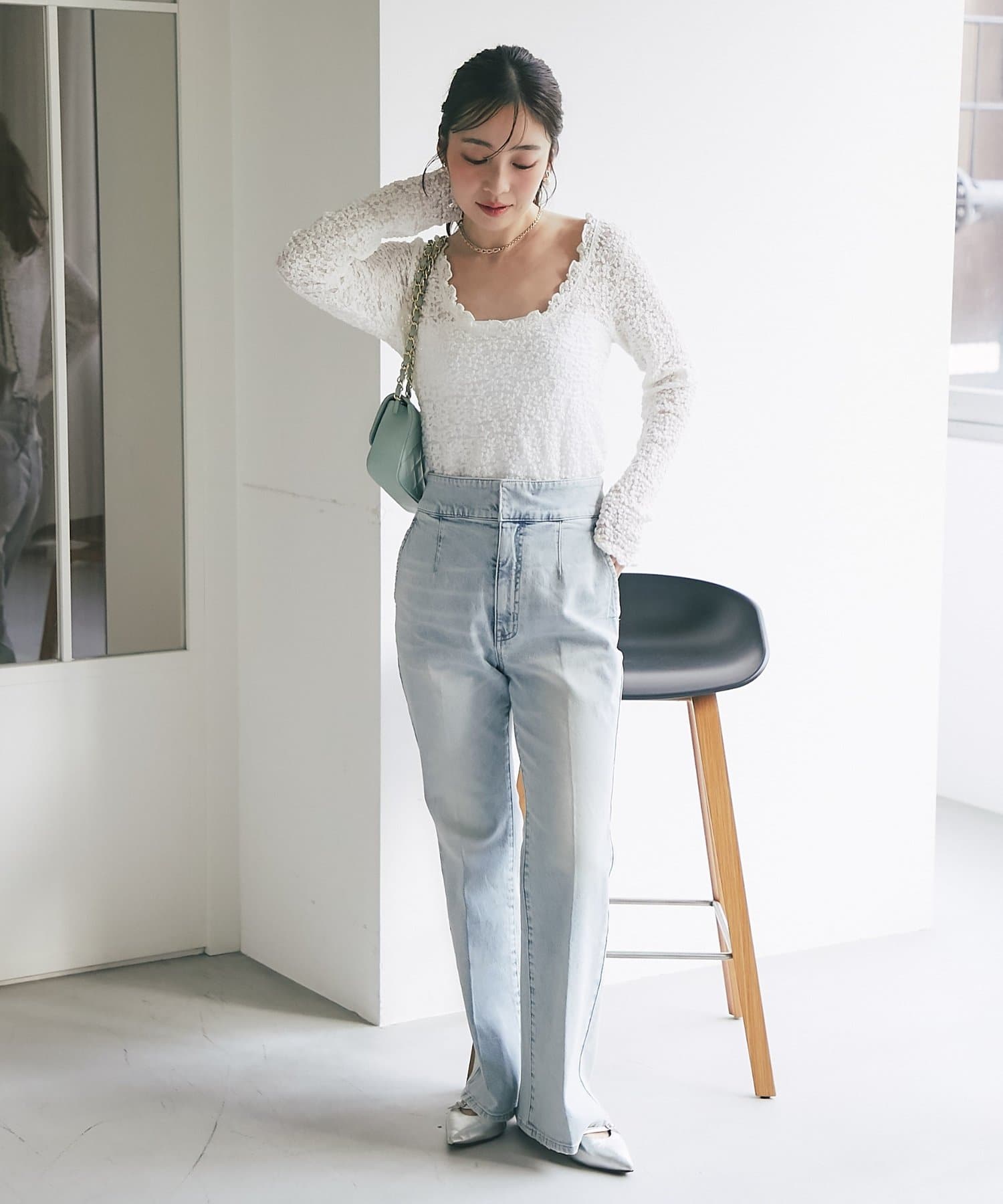 スラックスやデニムと合わせて、甘さを抑えた大人カジュアルスタイルに。