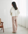 シンプルなボトムと合わせるだけでフェザーの生地感が映えます。