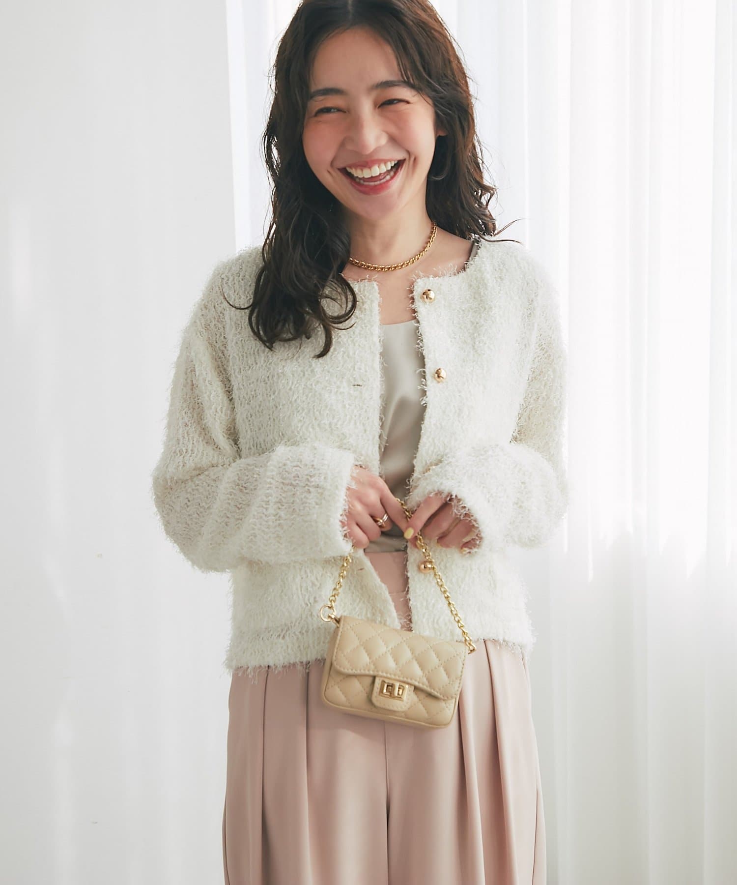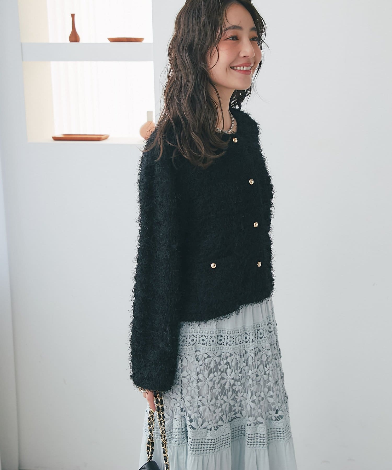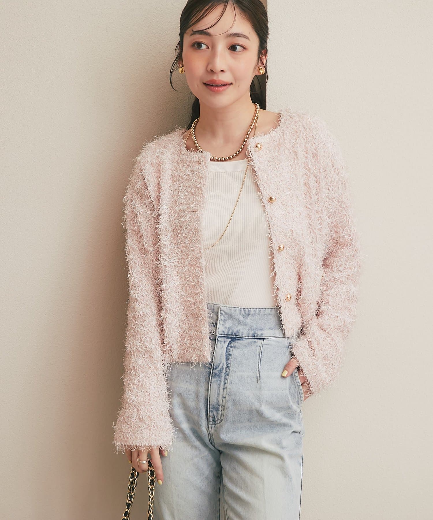 まるでフェザーのような繊細な素材感が魅力のカーディガン。