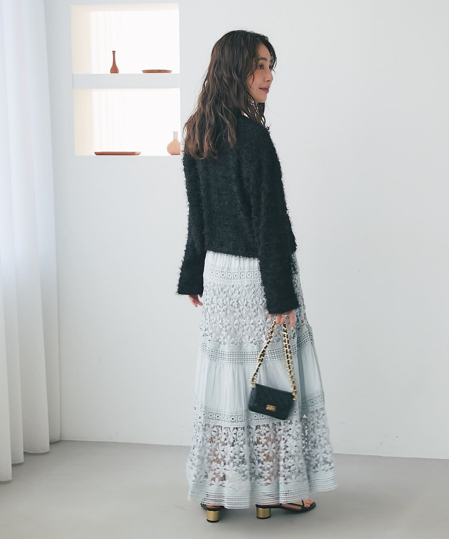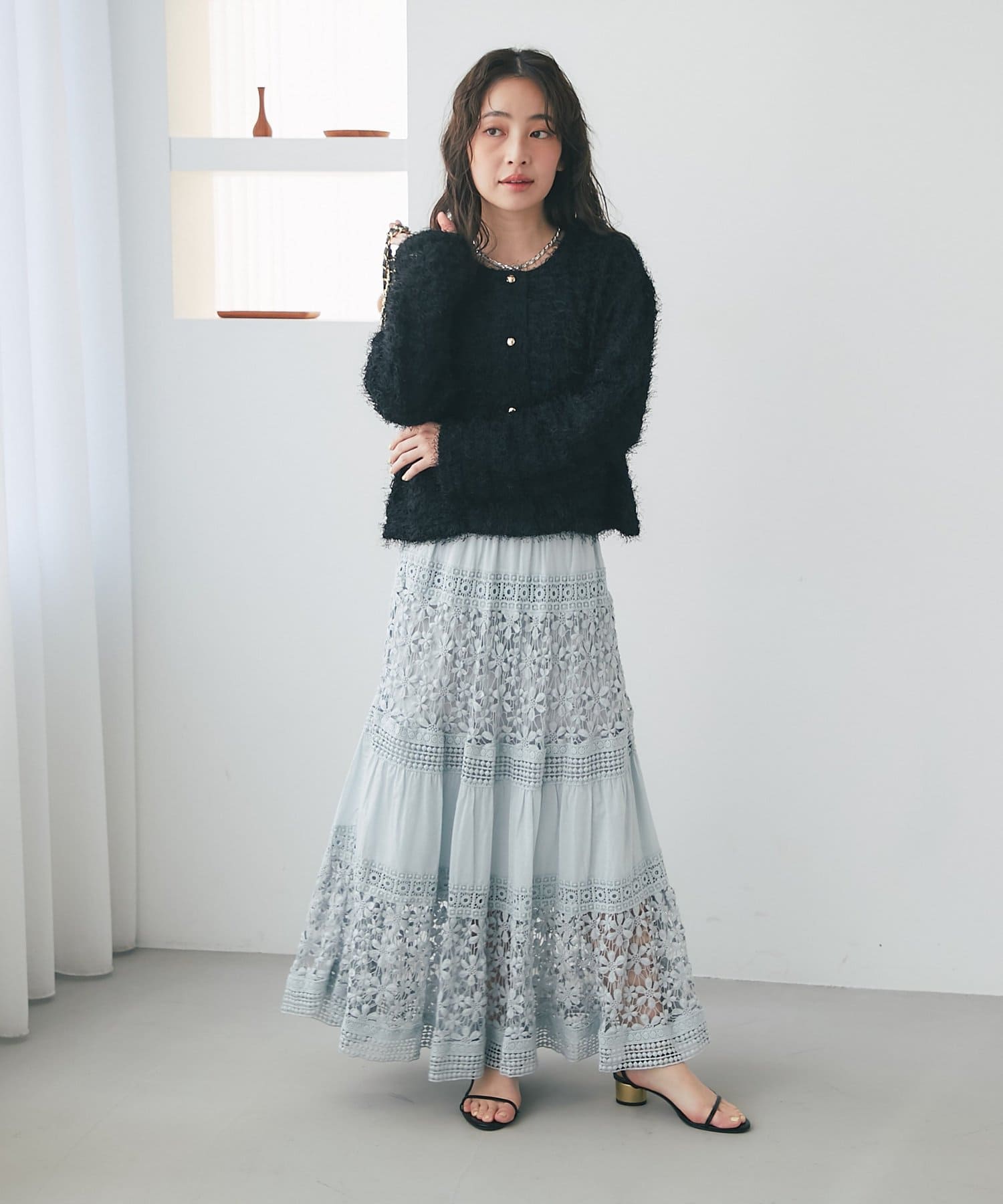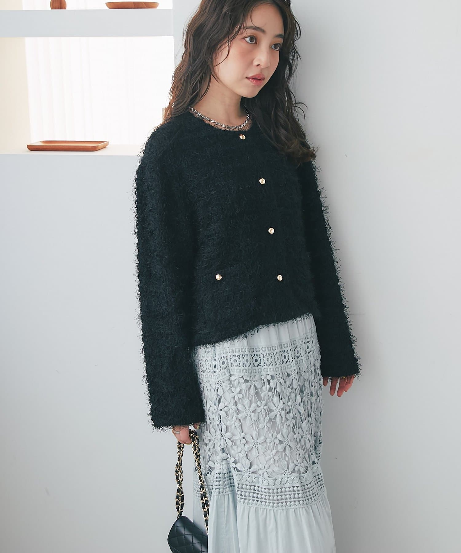 まるでフェザーのような繊細な素材感が魅力のカーディガン。