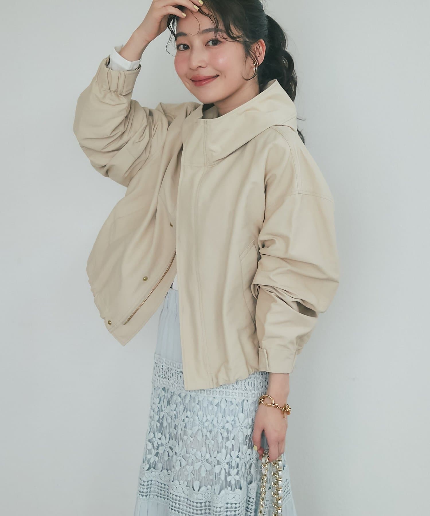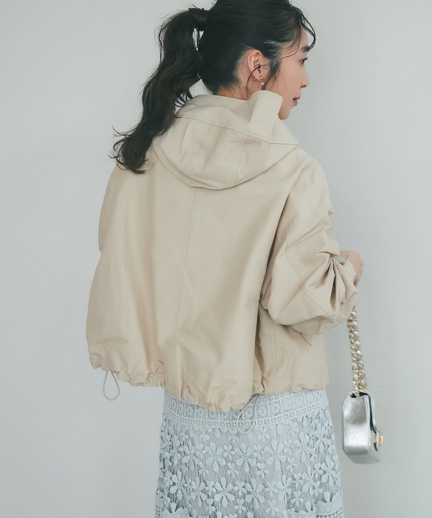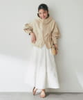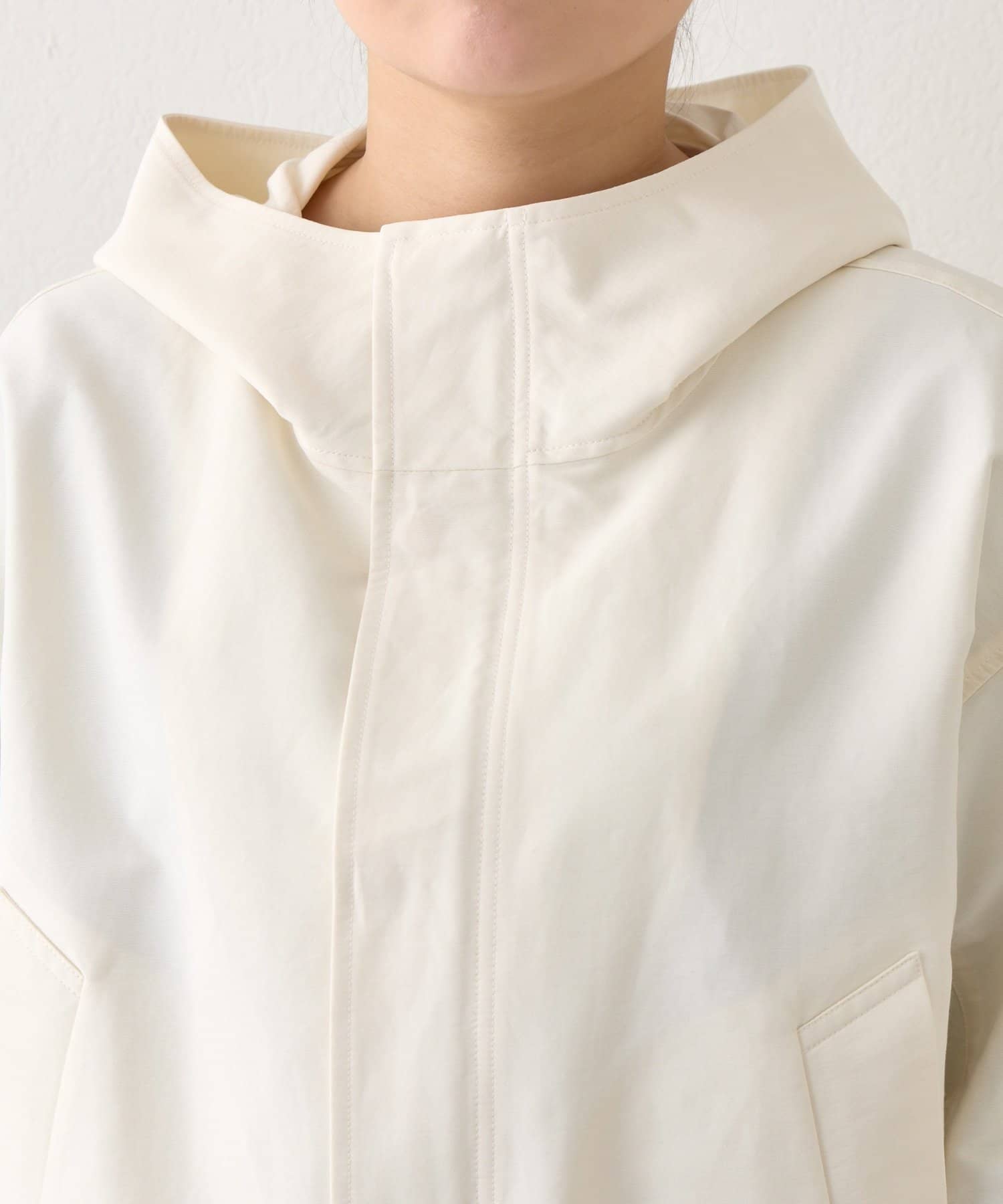 ワイドな身幅で抜け感がありつつ、高めの襟とフードで小顔効果も期待できます。