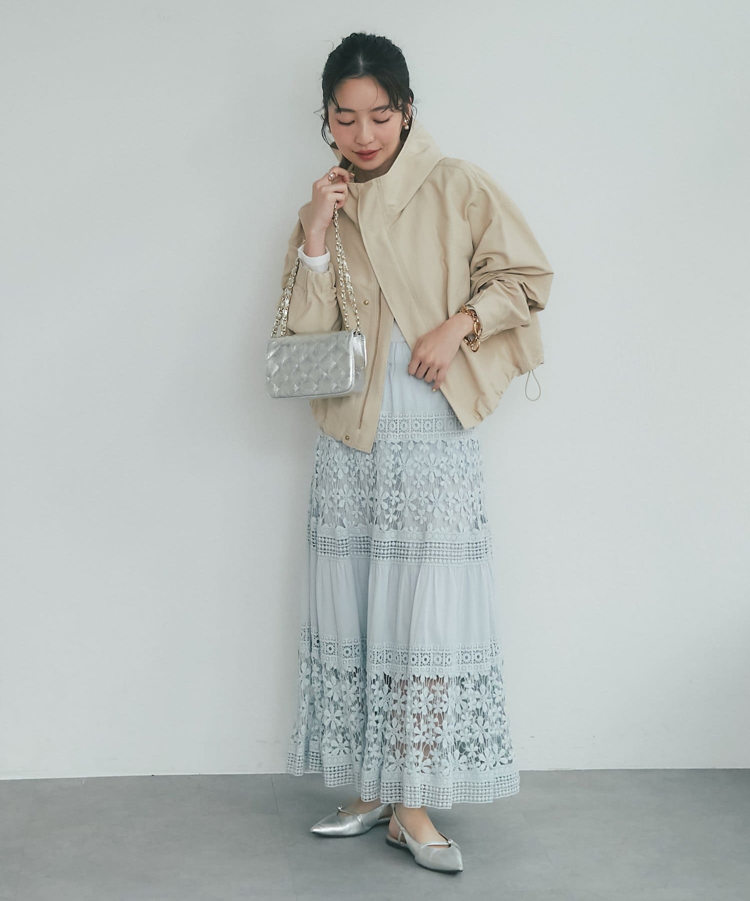 ショート丈なのでワンピースやハイウエストボトム・ボリュームのあるスカート
