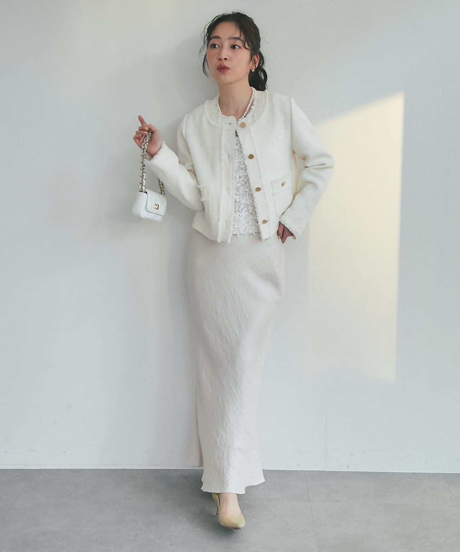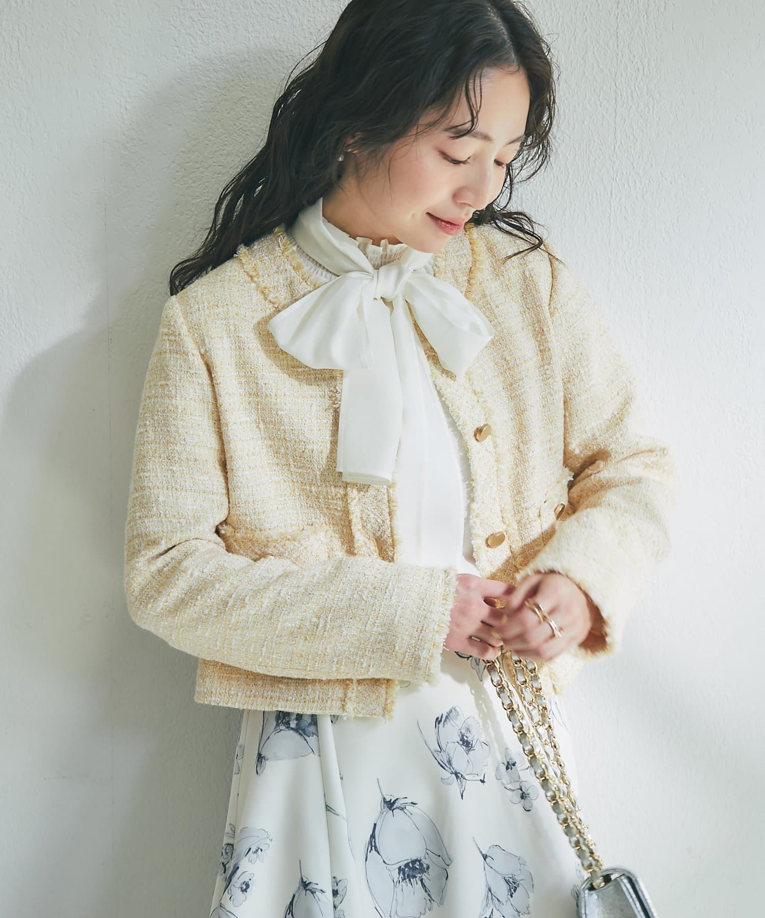 オケージョンシーンにぴったりな華やかツイードジャケット。