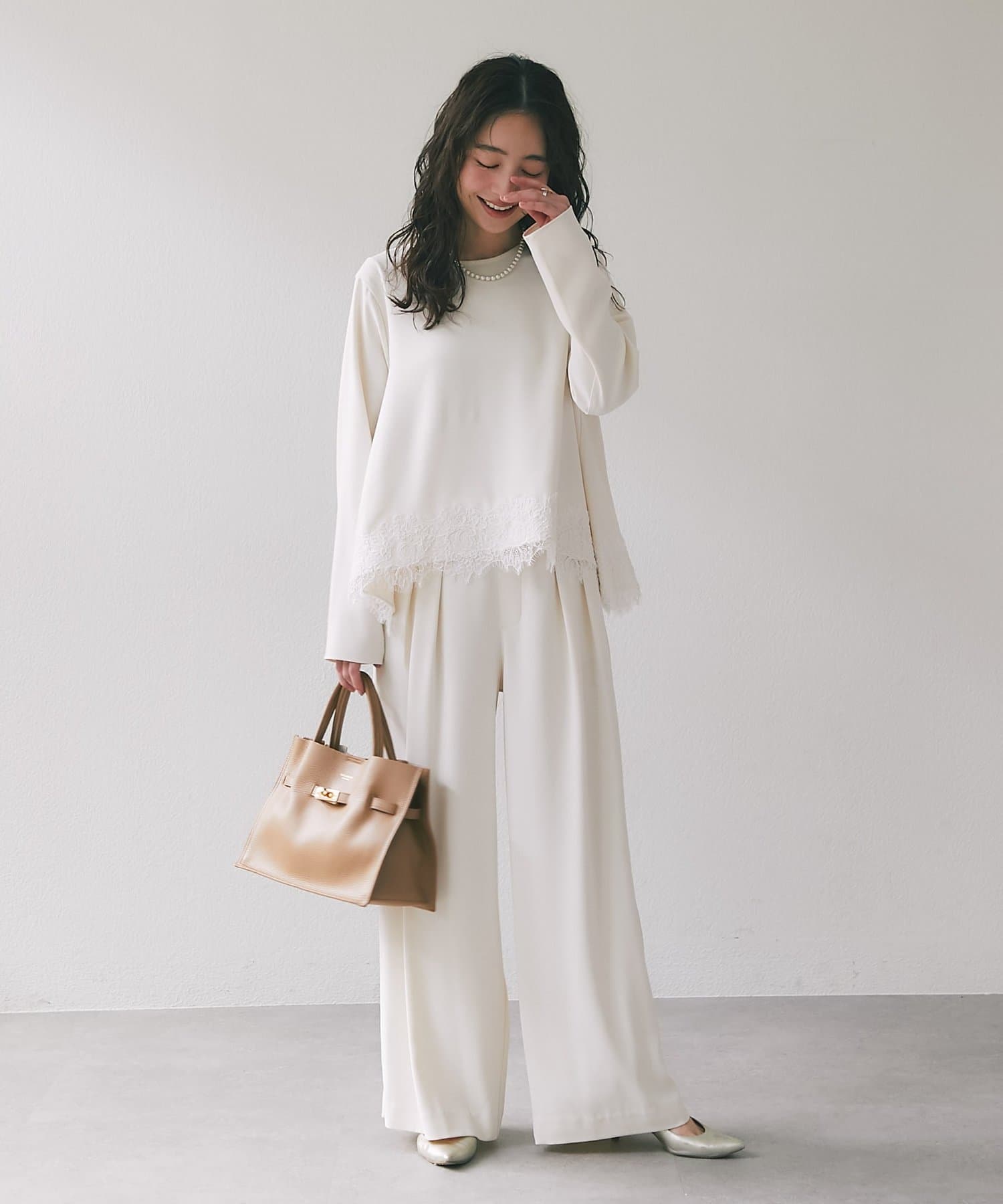 【RISA監修・オケージョン対応】裾レースブラウス+2タックワイドパンツ