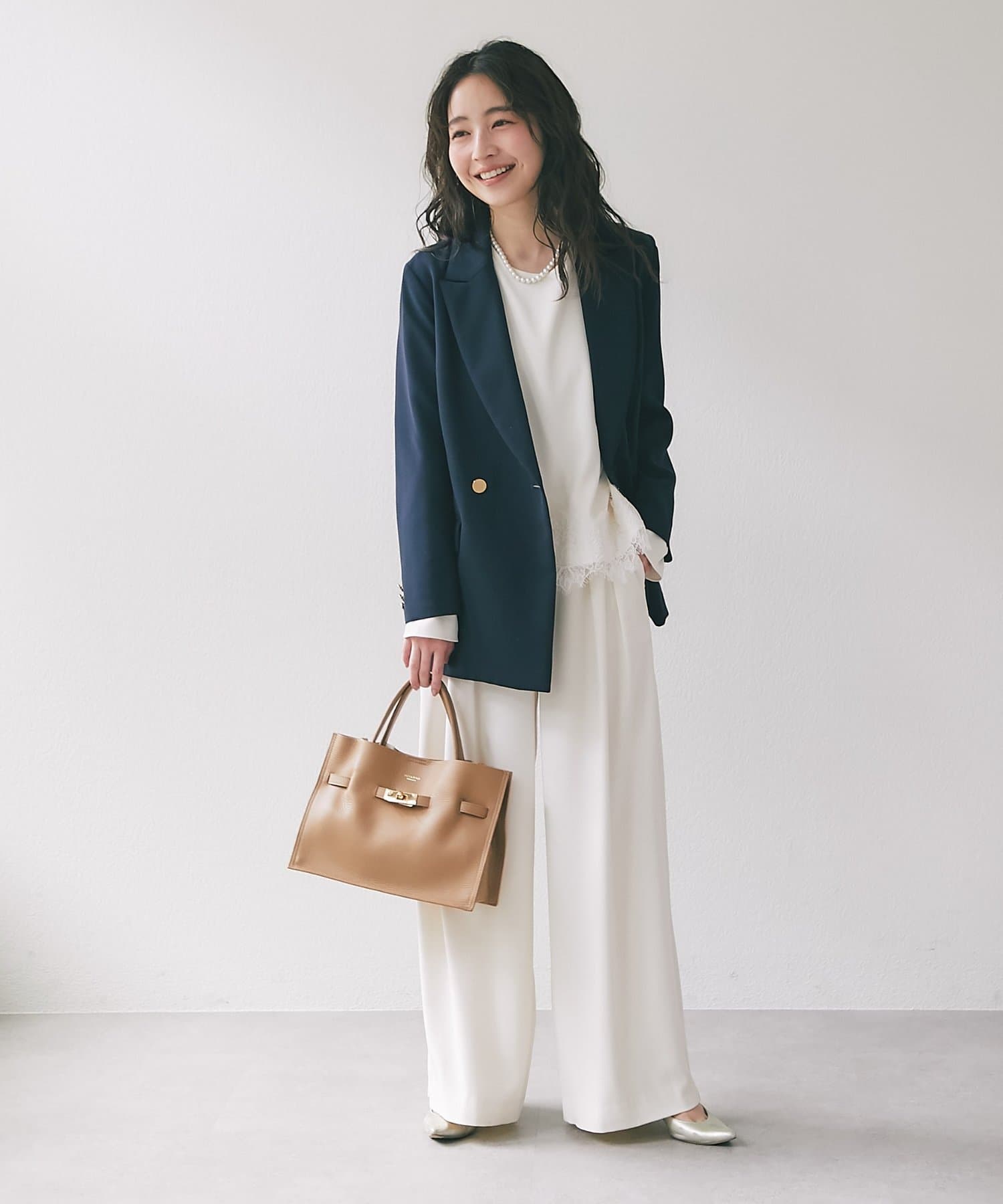 ボトムスは、大人気の美シルエットなワイドパンツ。