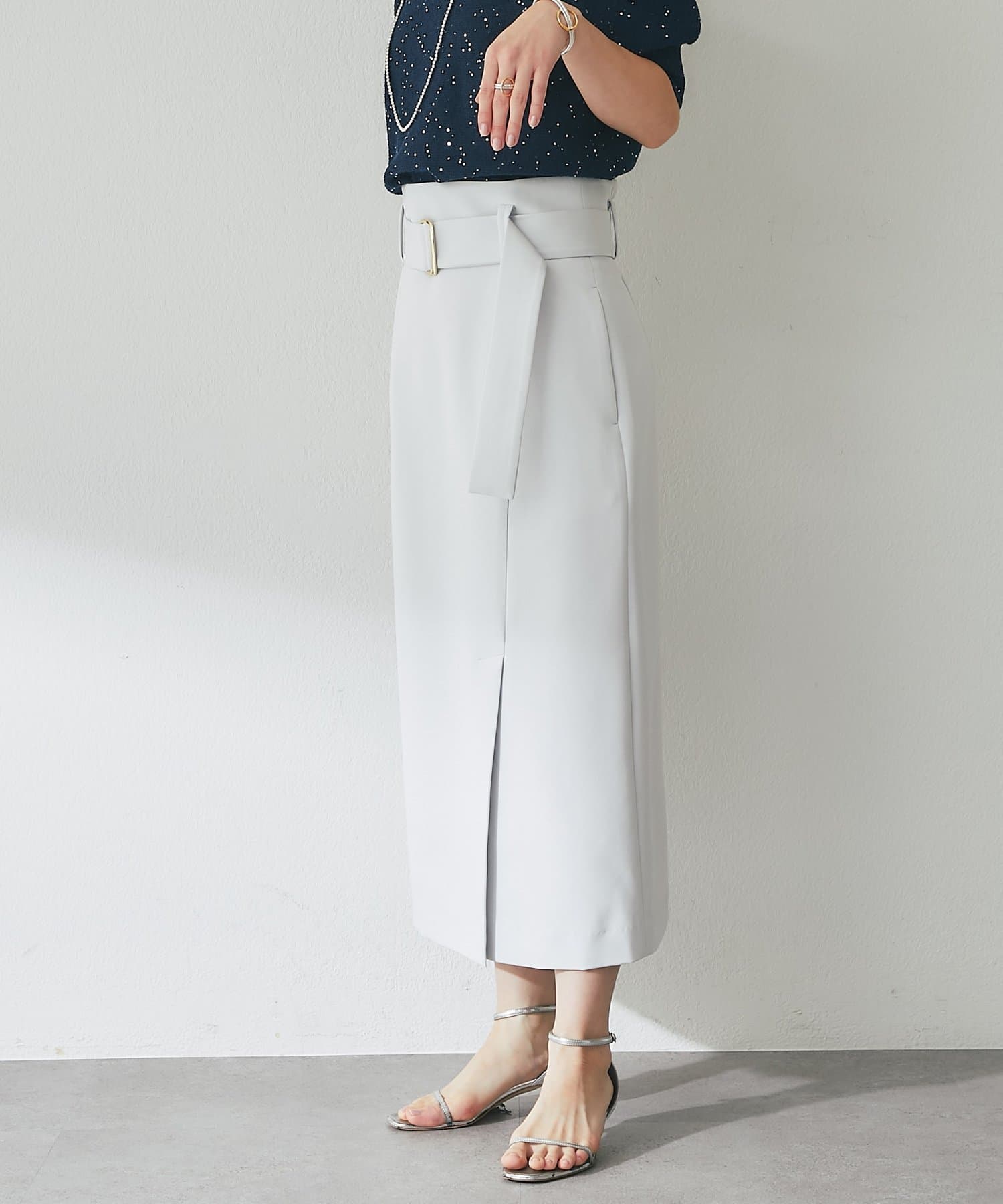 品よく整う、すっきりライン。大人のためのベルト付きスカート