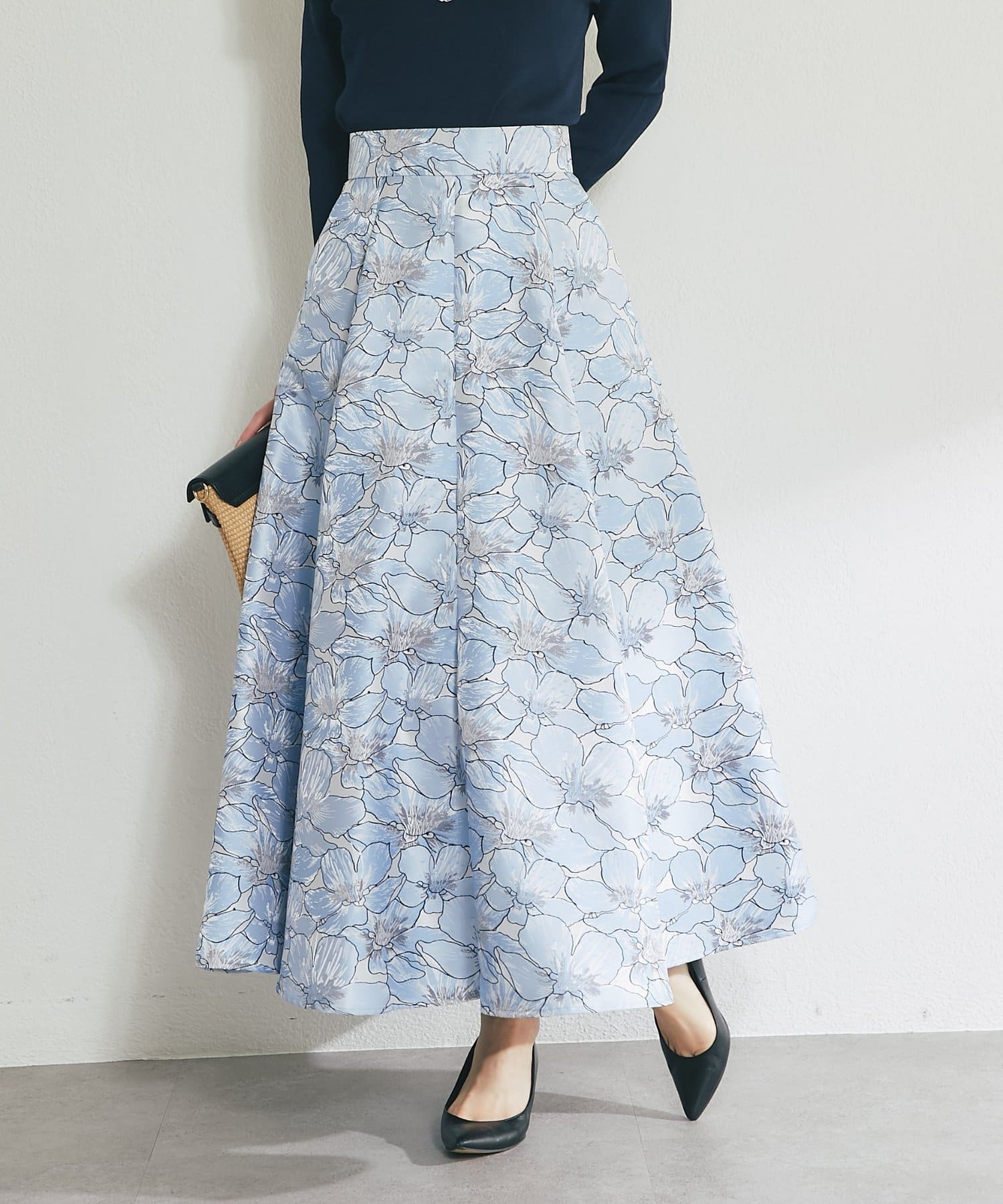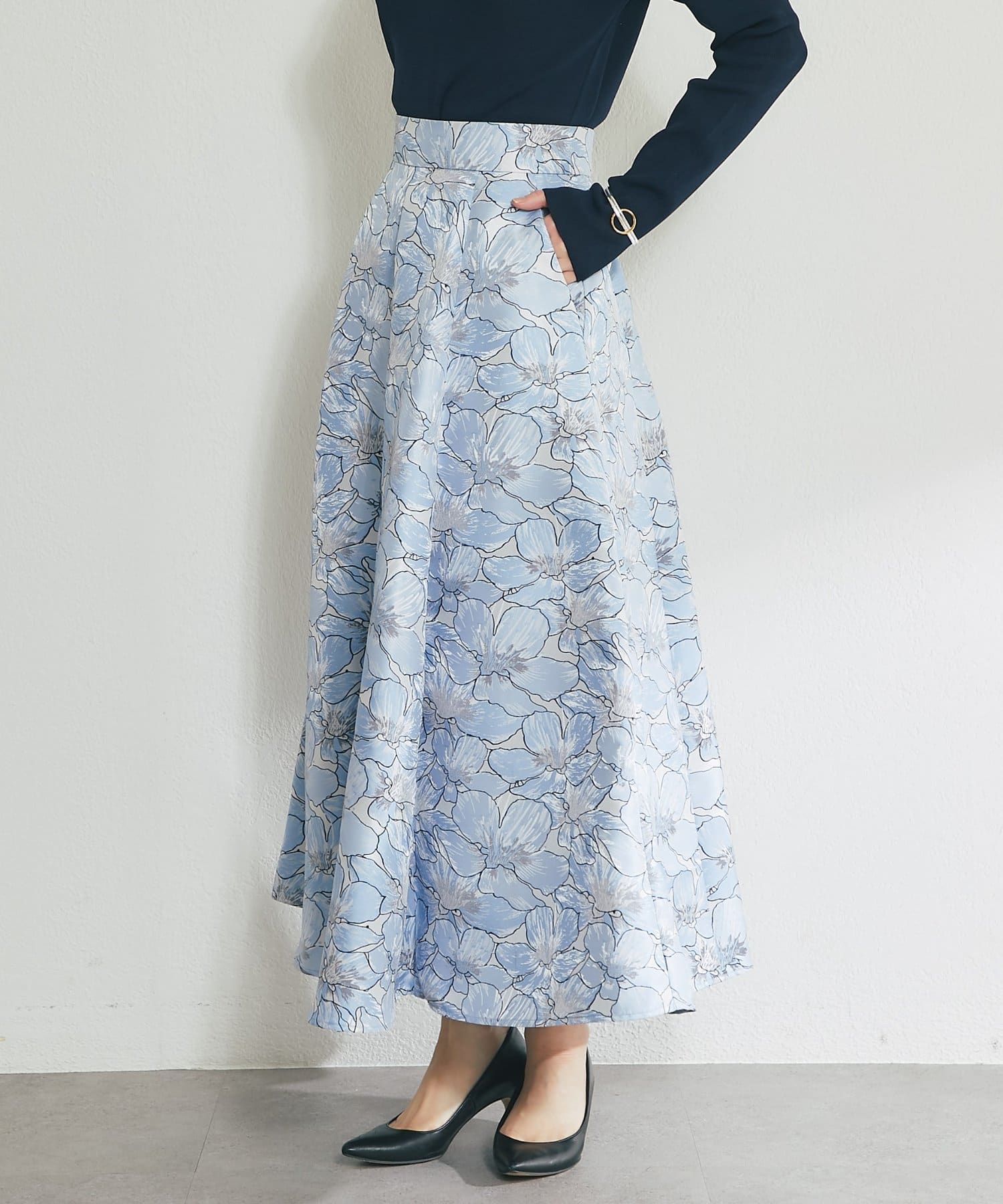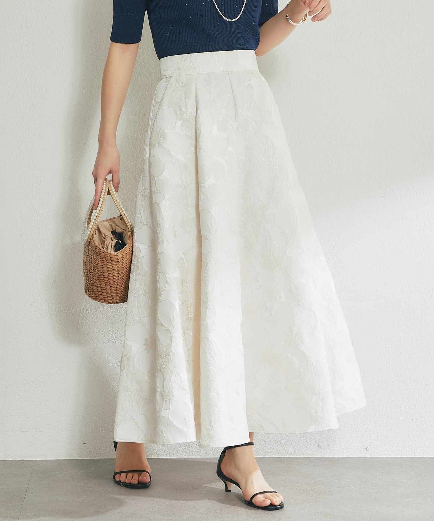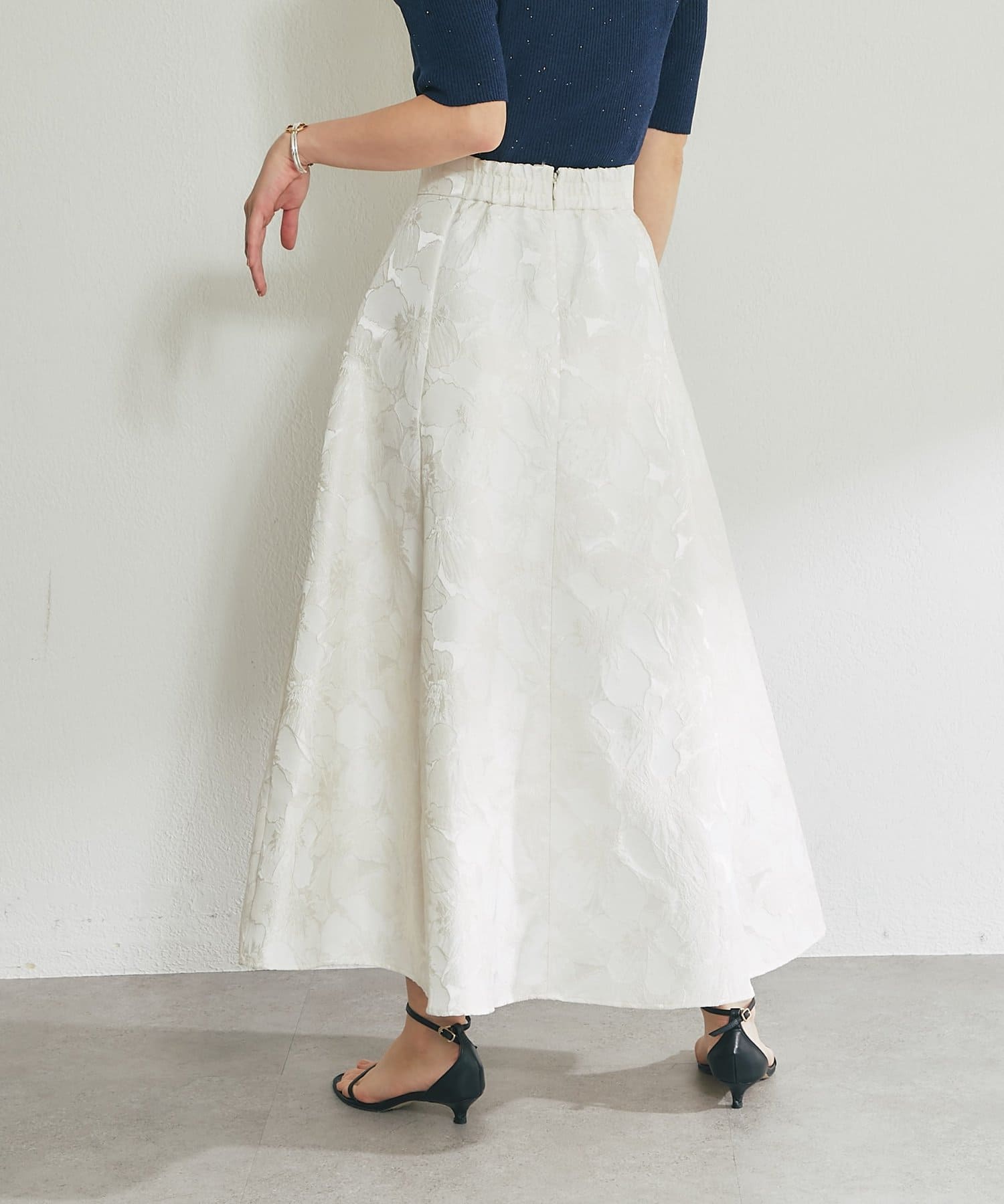 ふんわり揺れて、上品に華やぐ。大人のフラワージャガードスカート