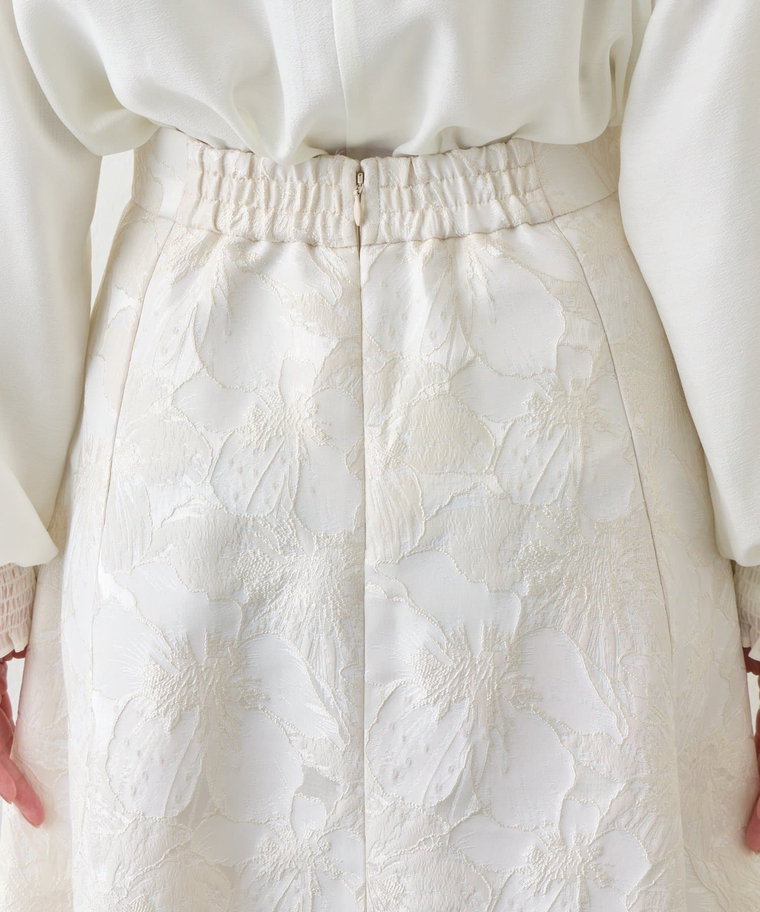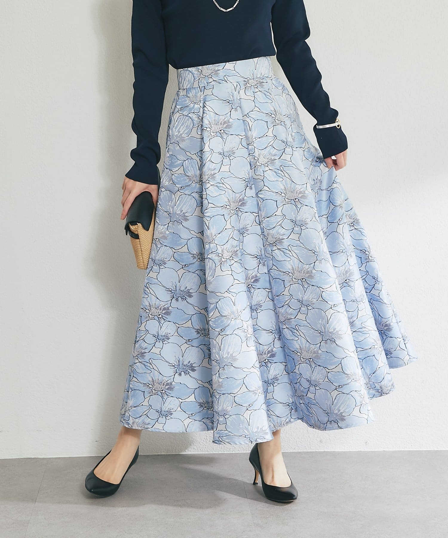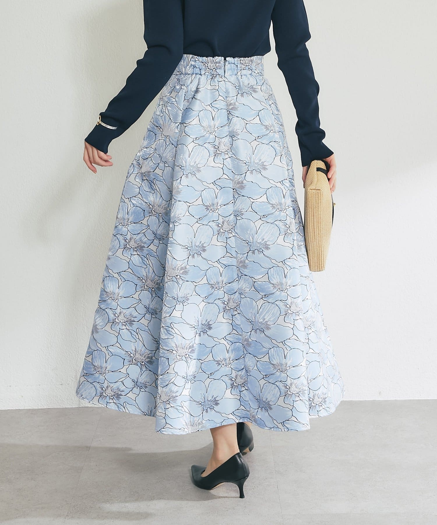 ふんわり揺れて、上品に華やぐ。大人のフラワージャガードスカート