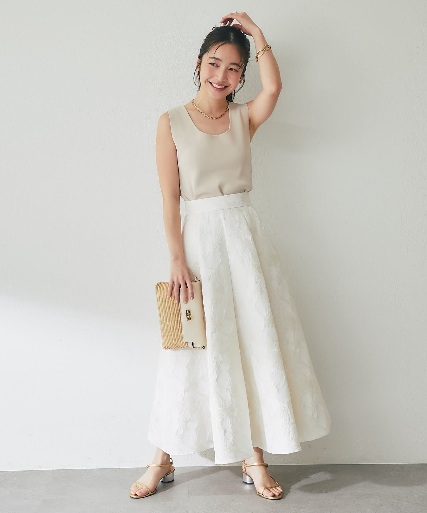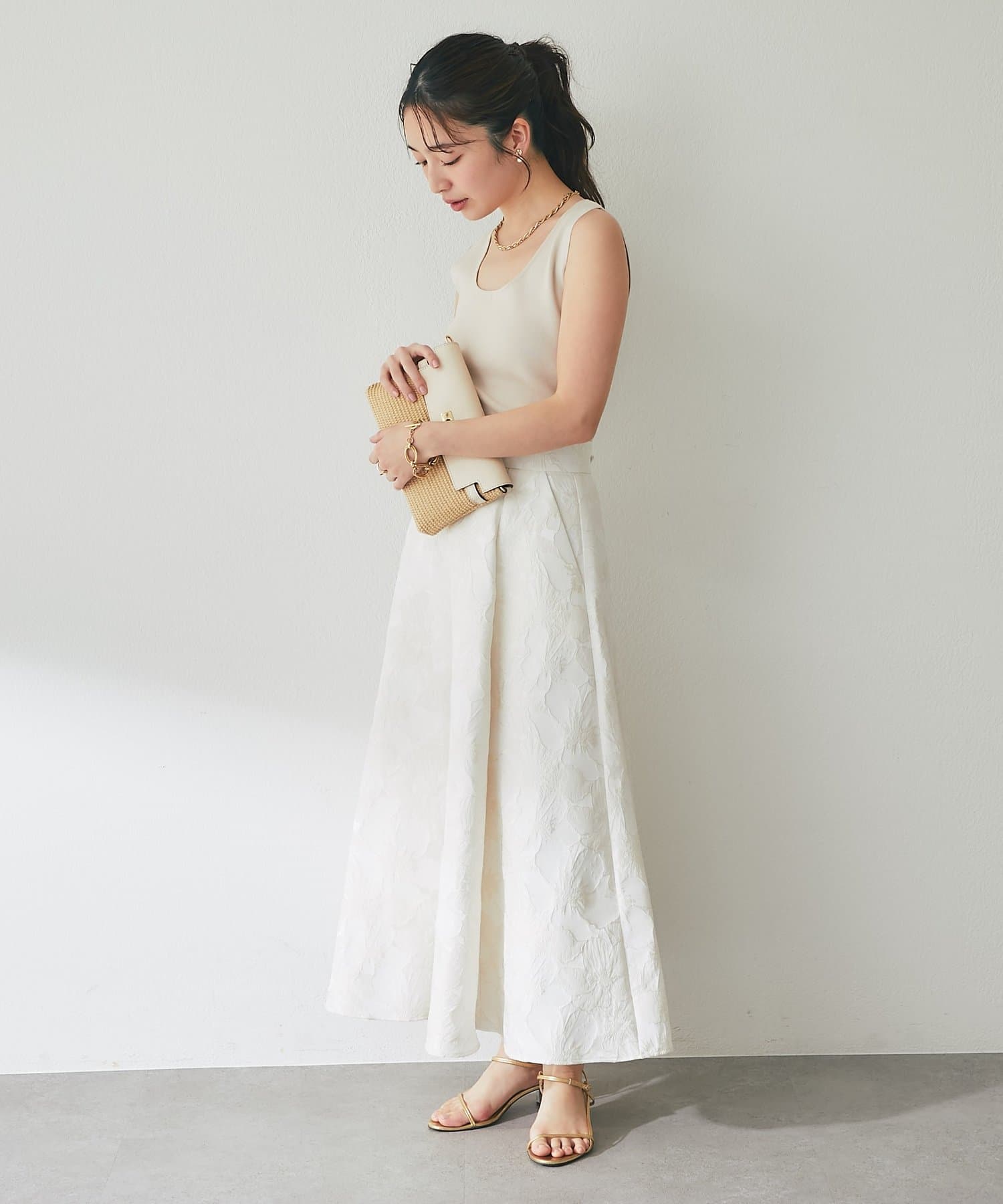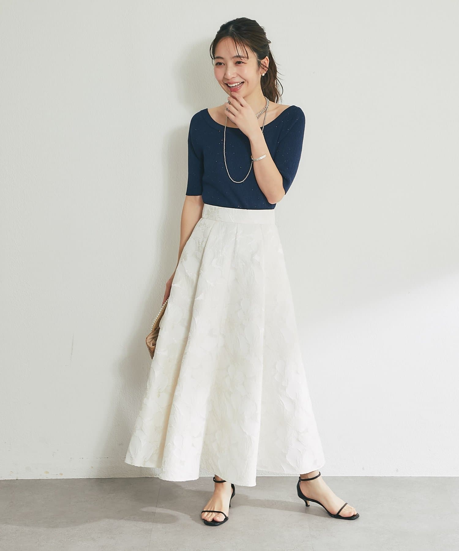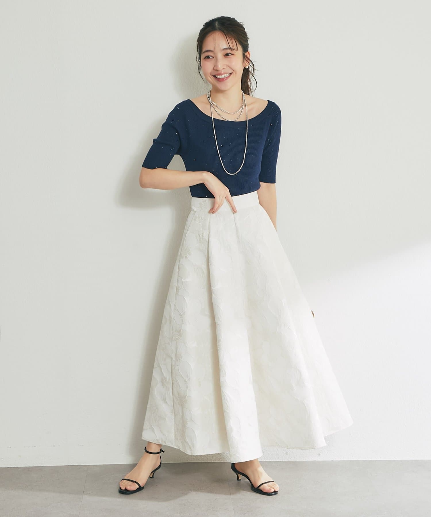 ふんわり揺れて、上品に華やぐ。大人のフラワージャガードスカート