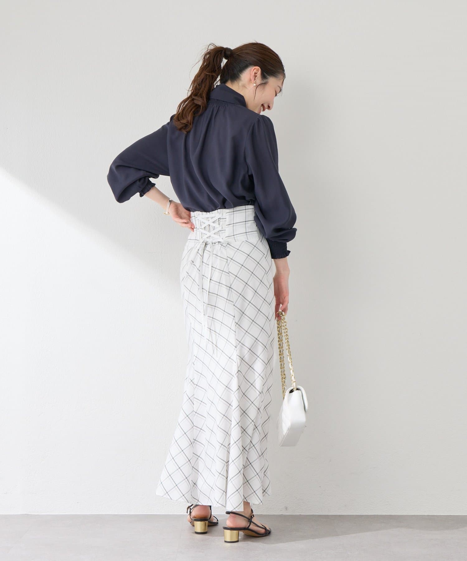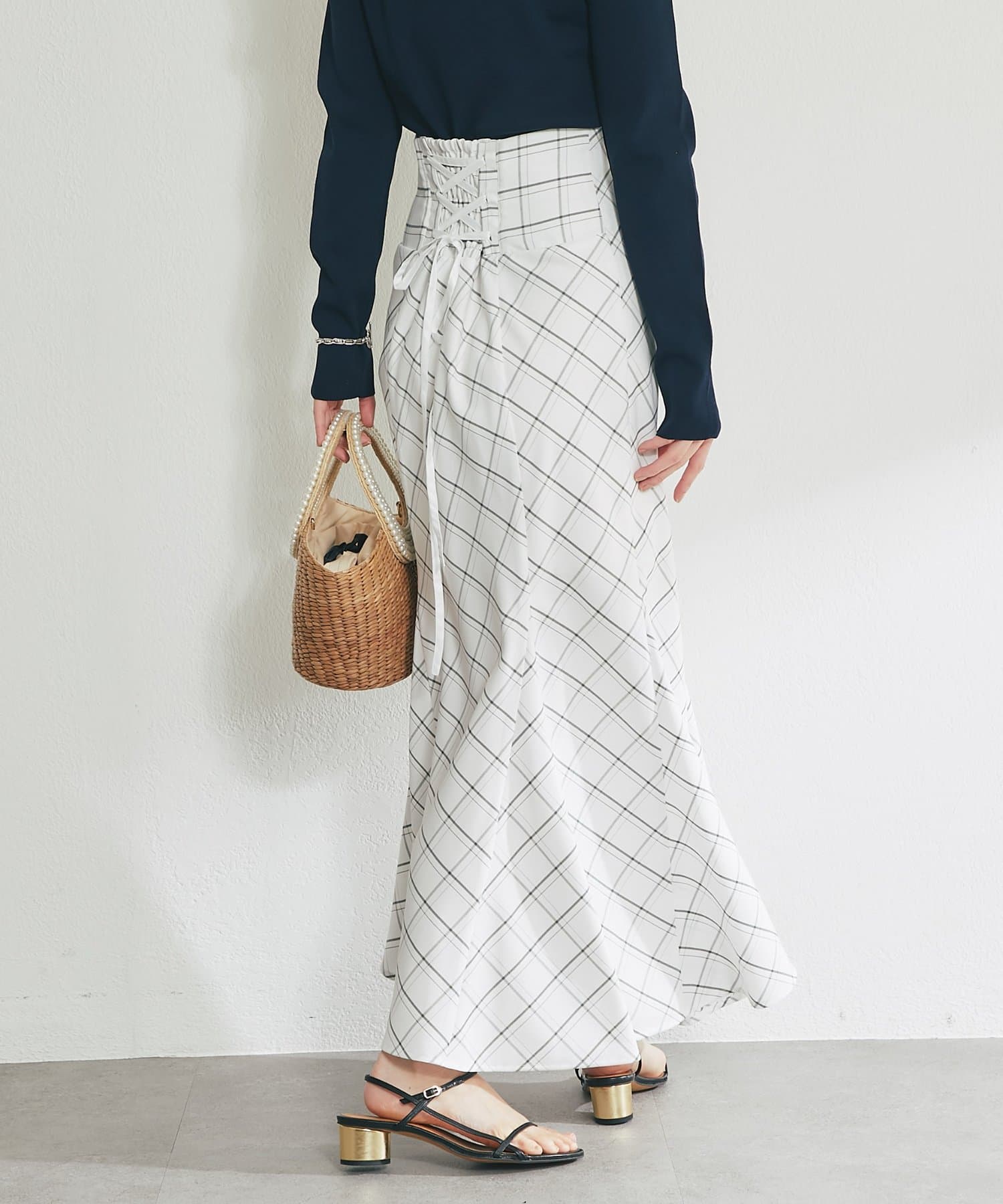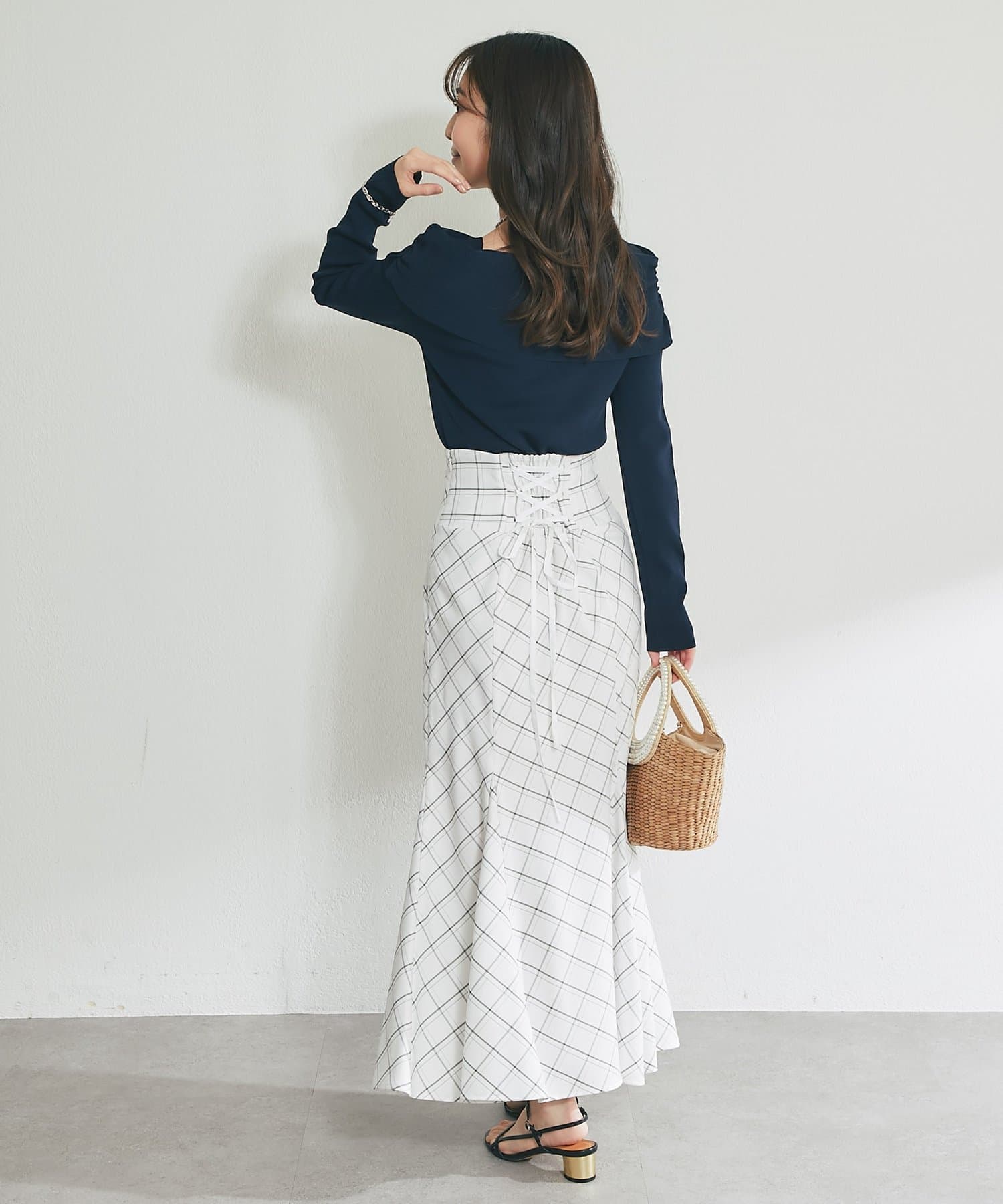 後ろ姿まで美しく。レースアップが映えるマーメイドスカート。