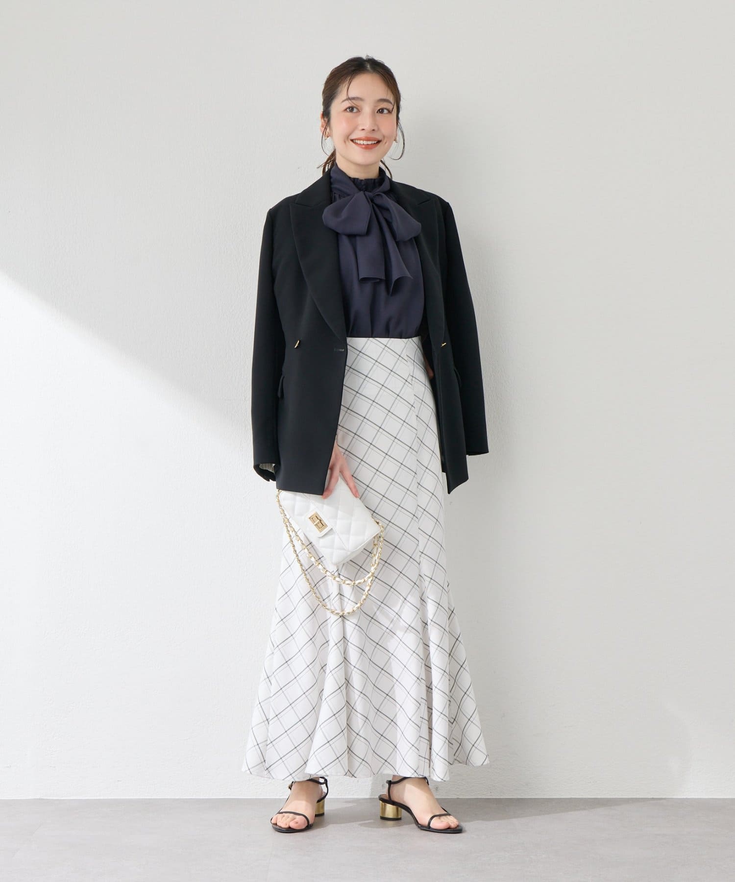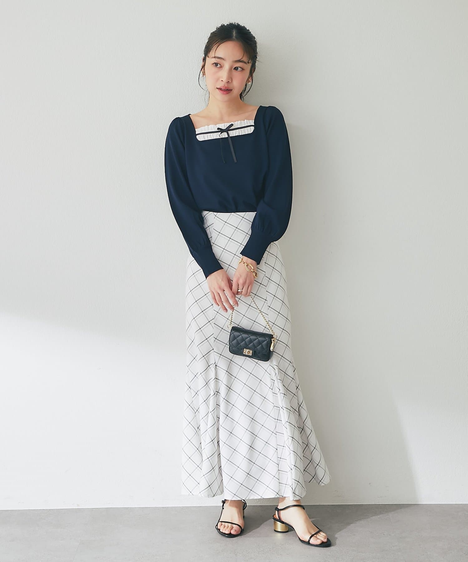 ブラウスやニットと合わせて、フェミニンで上品なスタイリングに。