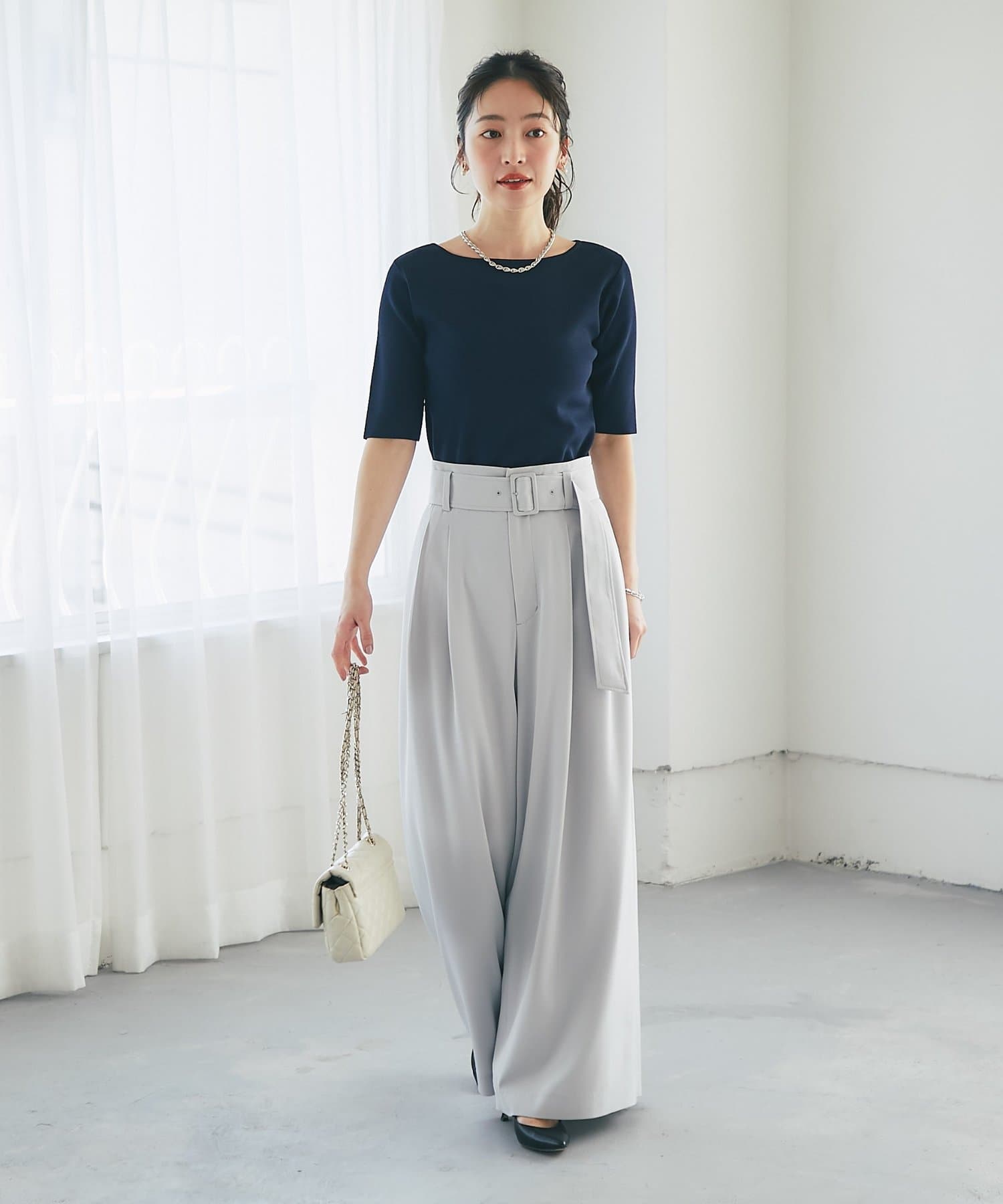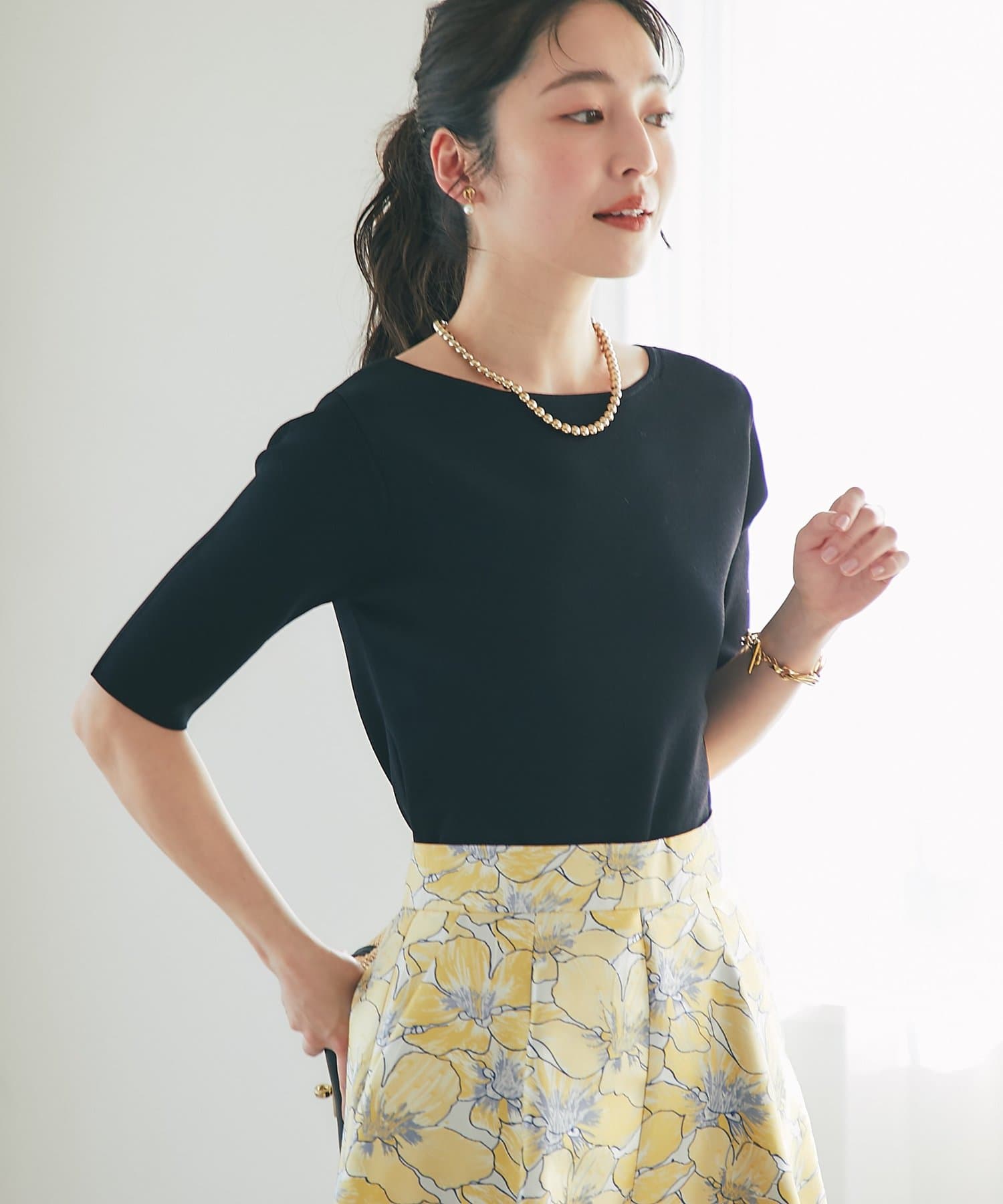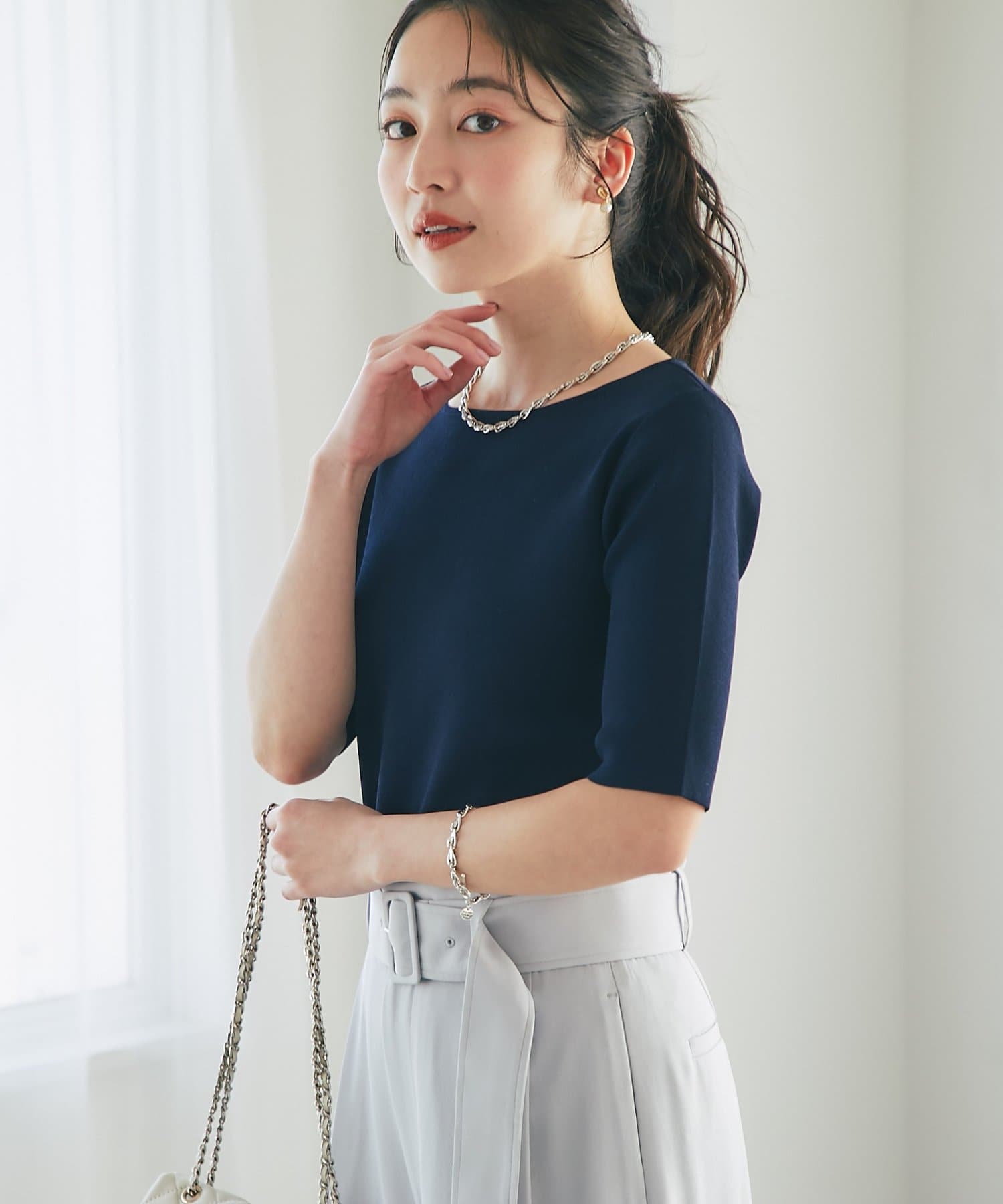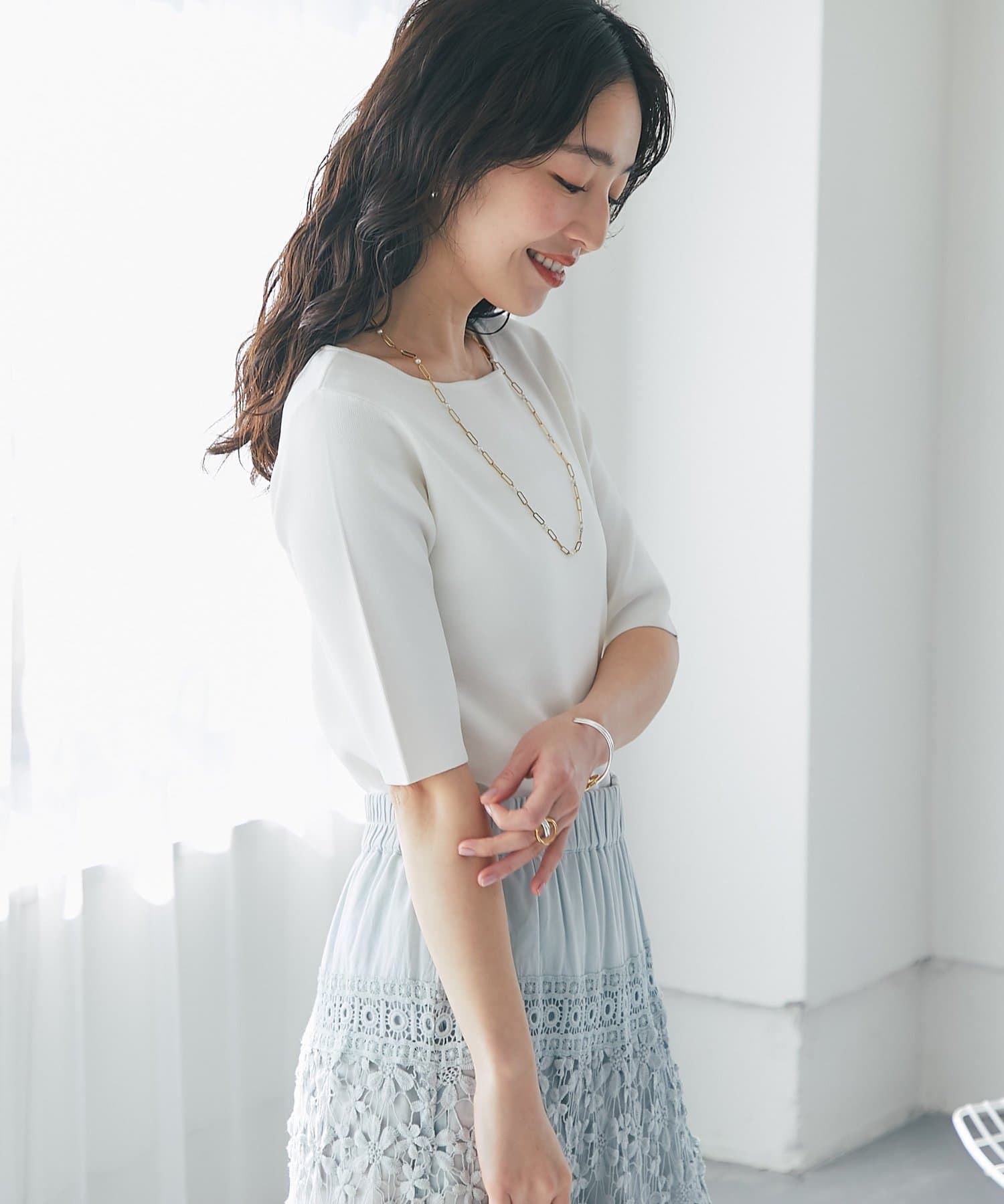 スカートなどフェミニンなスタイルにはもちろん、ジャケットなどのインナーとしてもおすすめです。