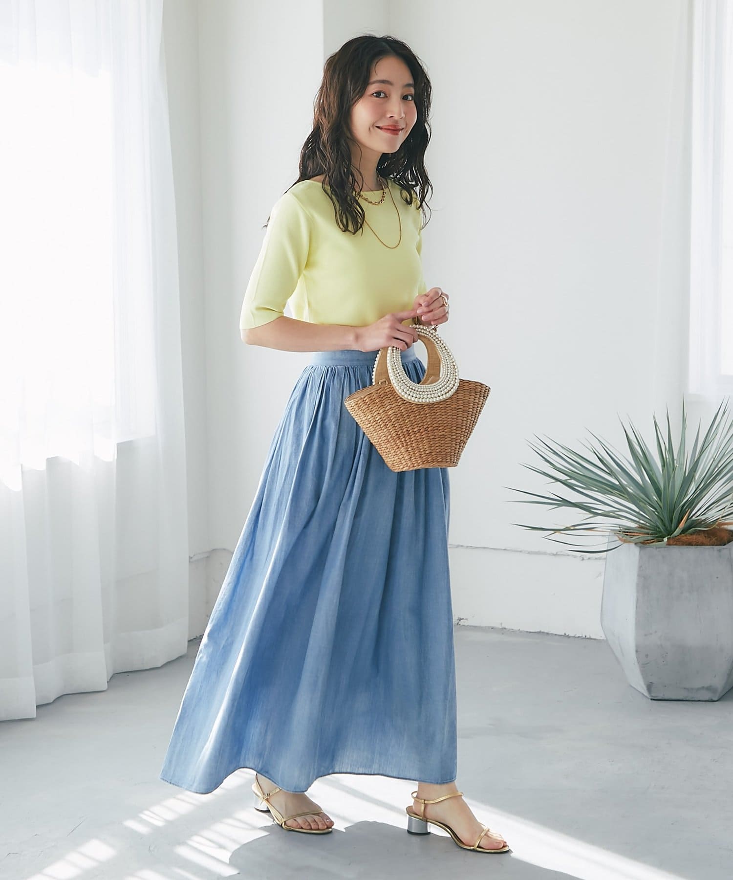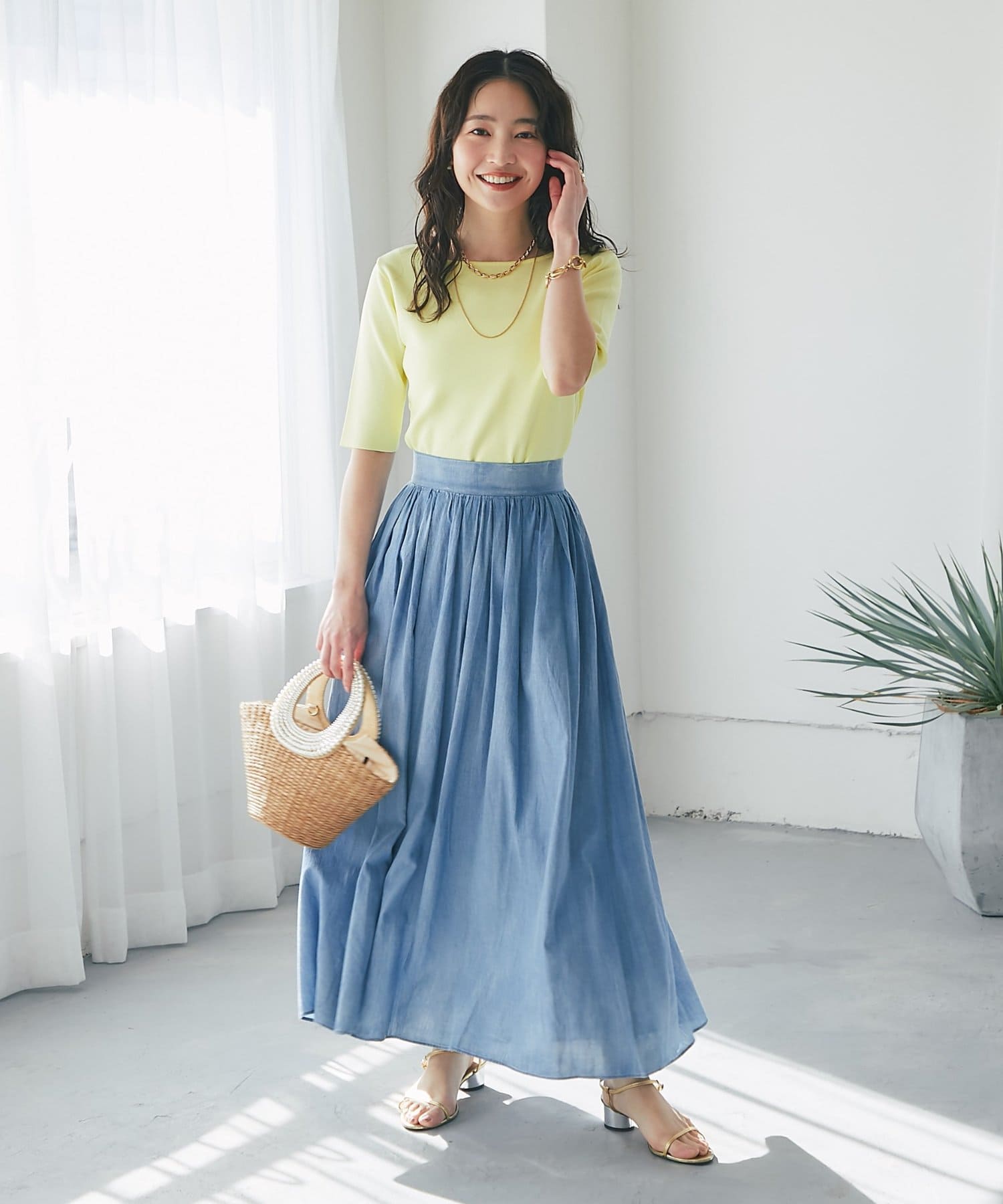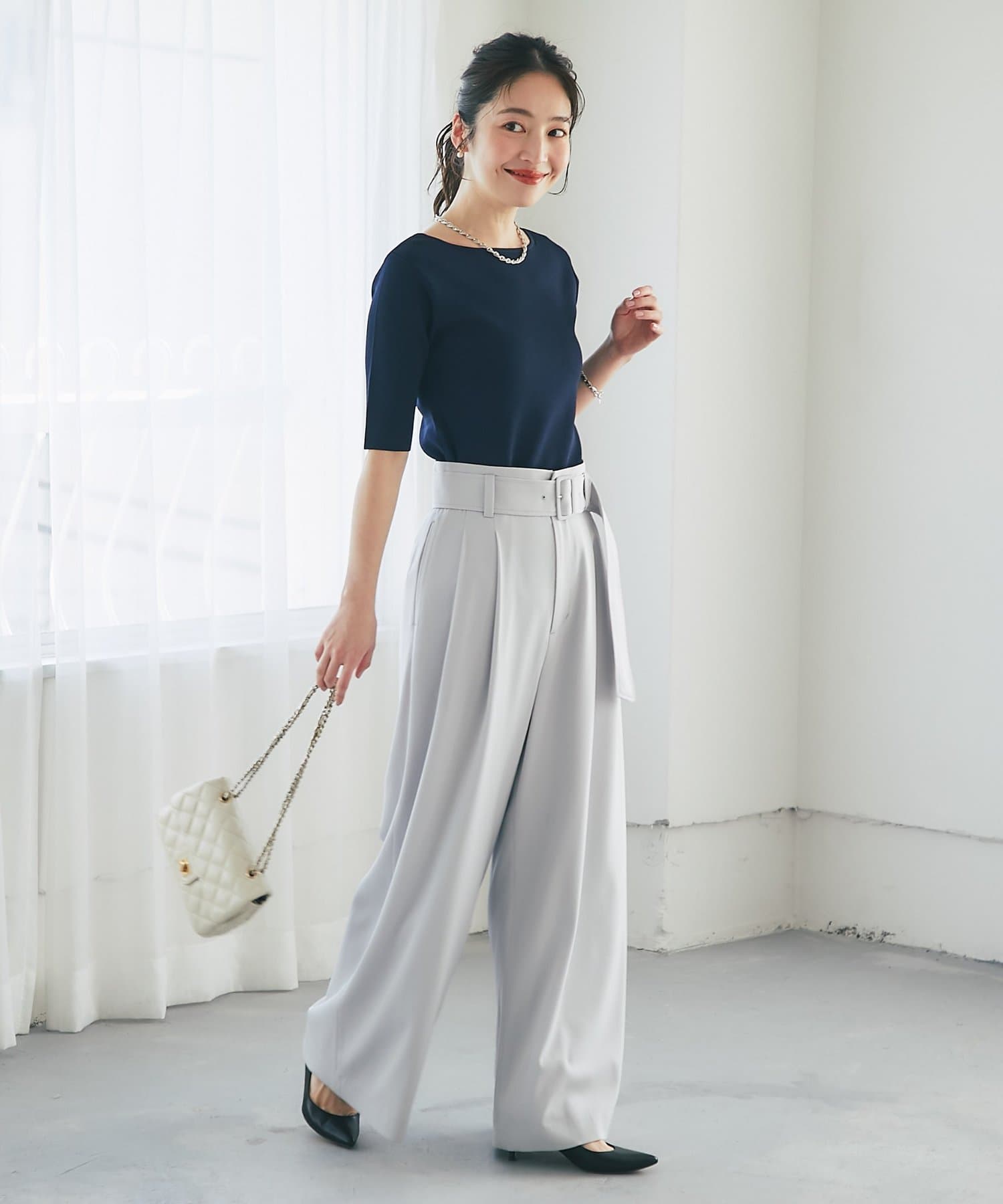 スカートなどフェミニンなスタイルにはもちろん、ジャケットなどのインナーとしてもおすすめです。