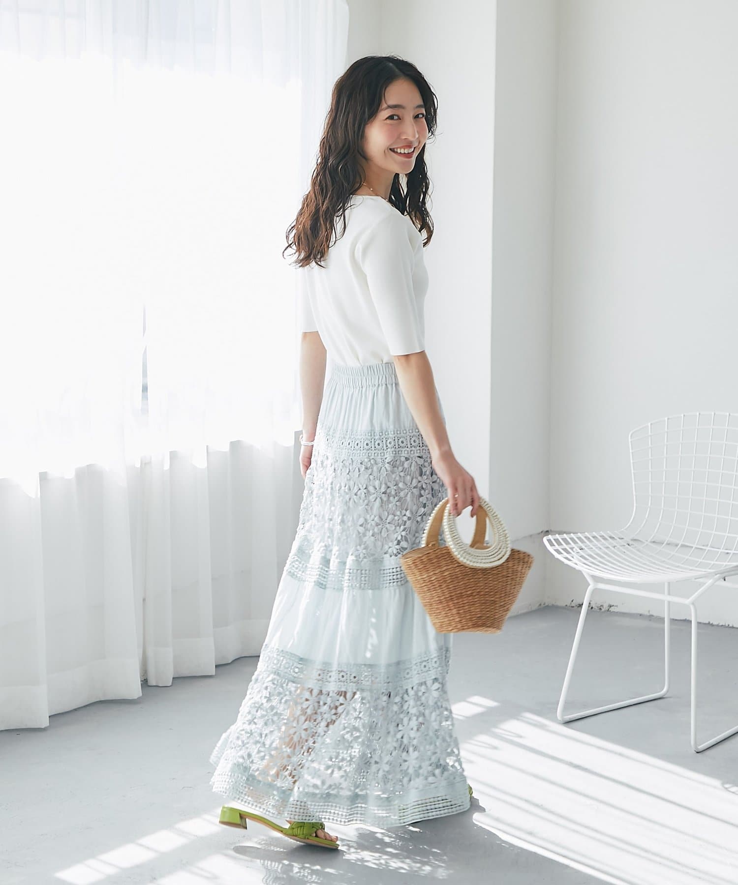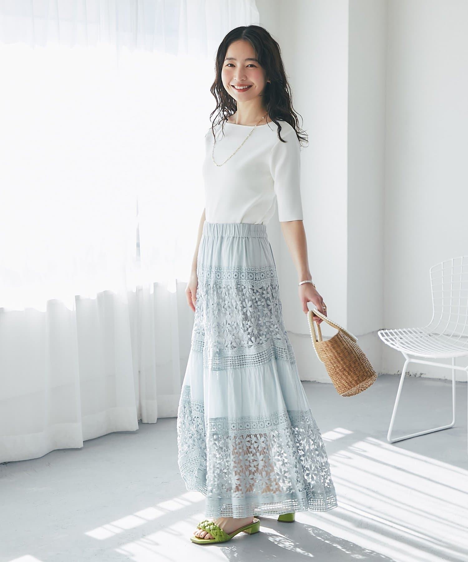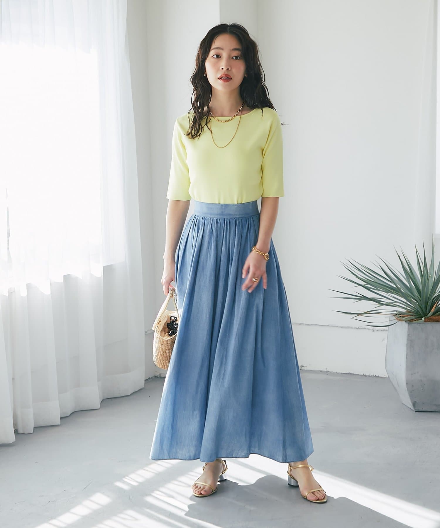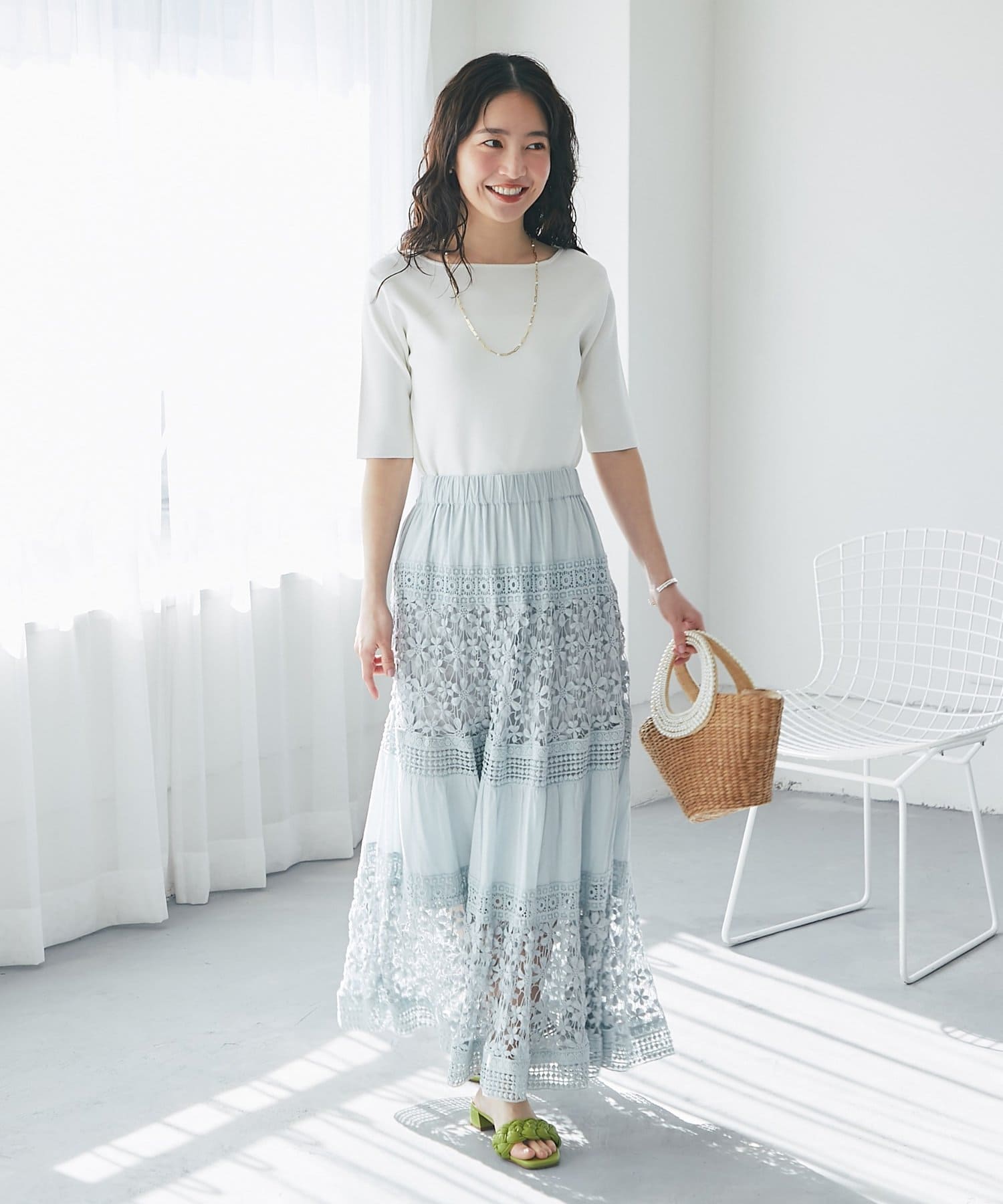 スカートなどフェミニンなスタイルにはもちろん、ジャケットなどのインナーとしてもおすすめです。