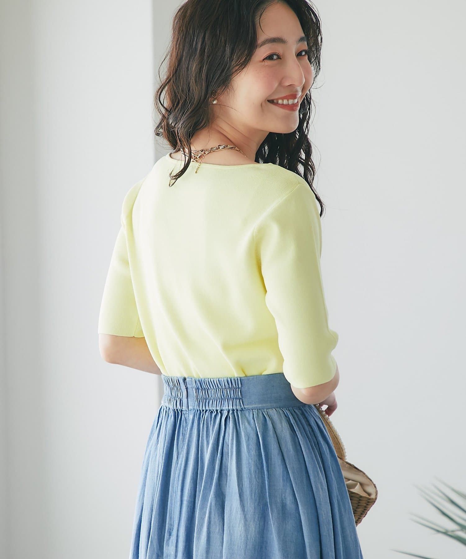 ・クールタッチUVアシメネック5分袖ニット(LBZ1061205A0010)