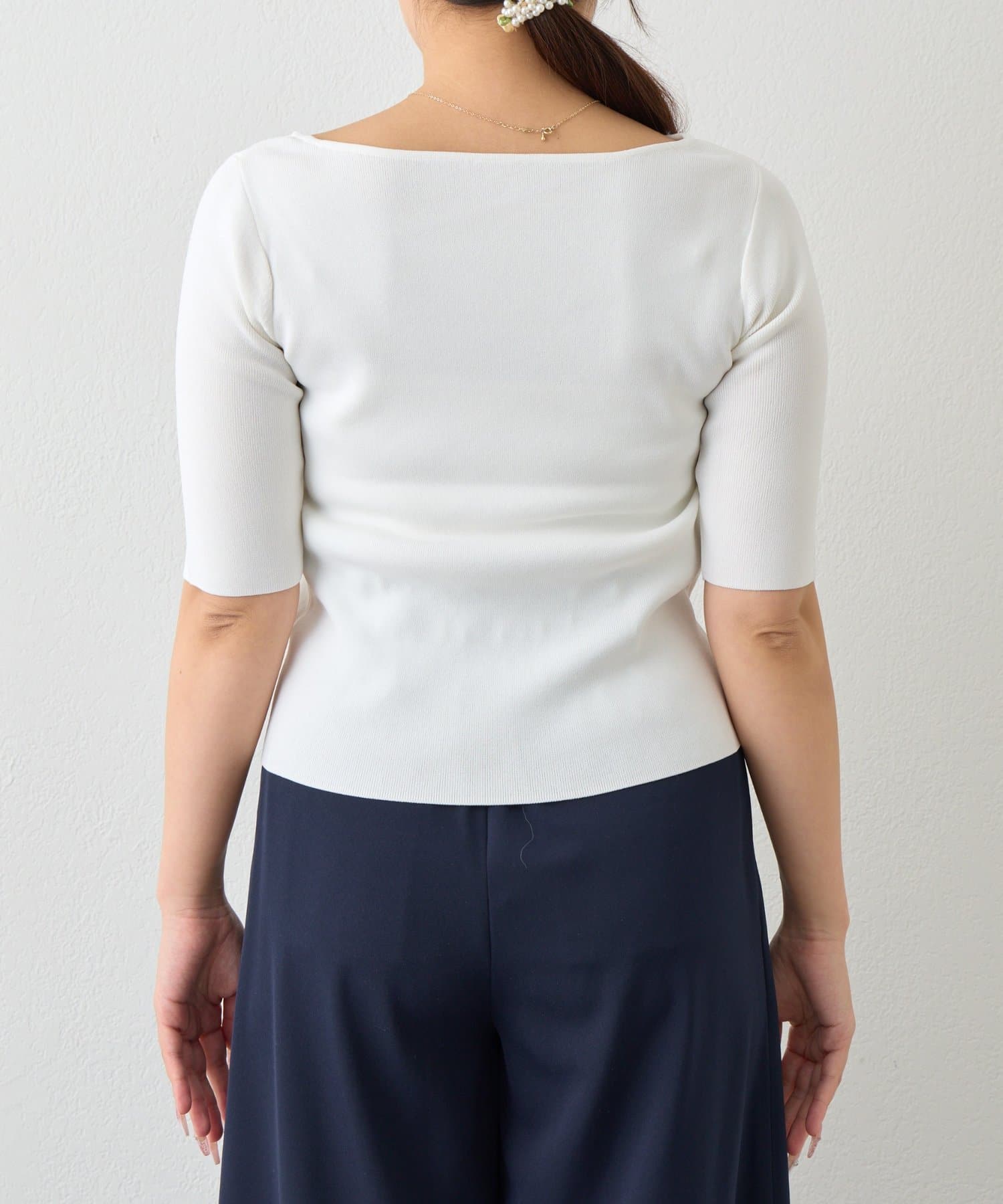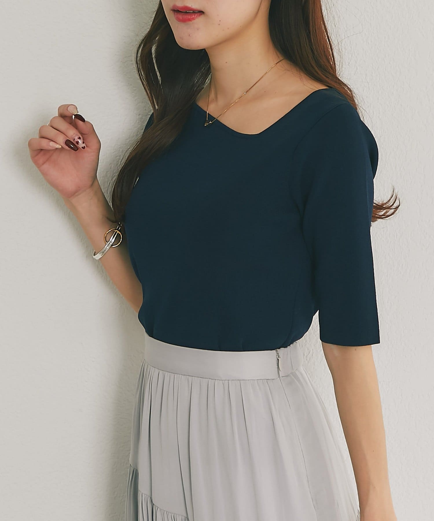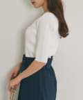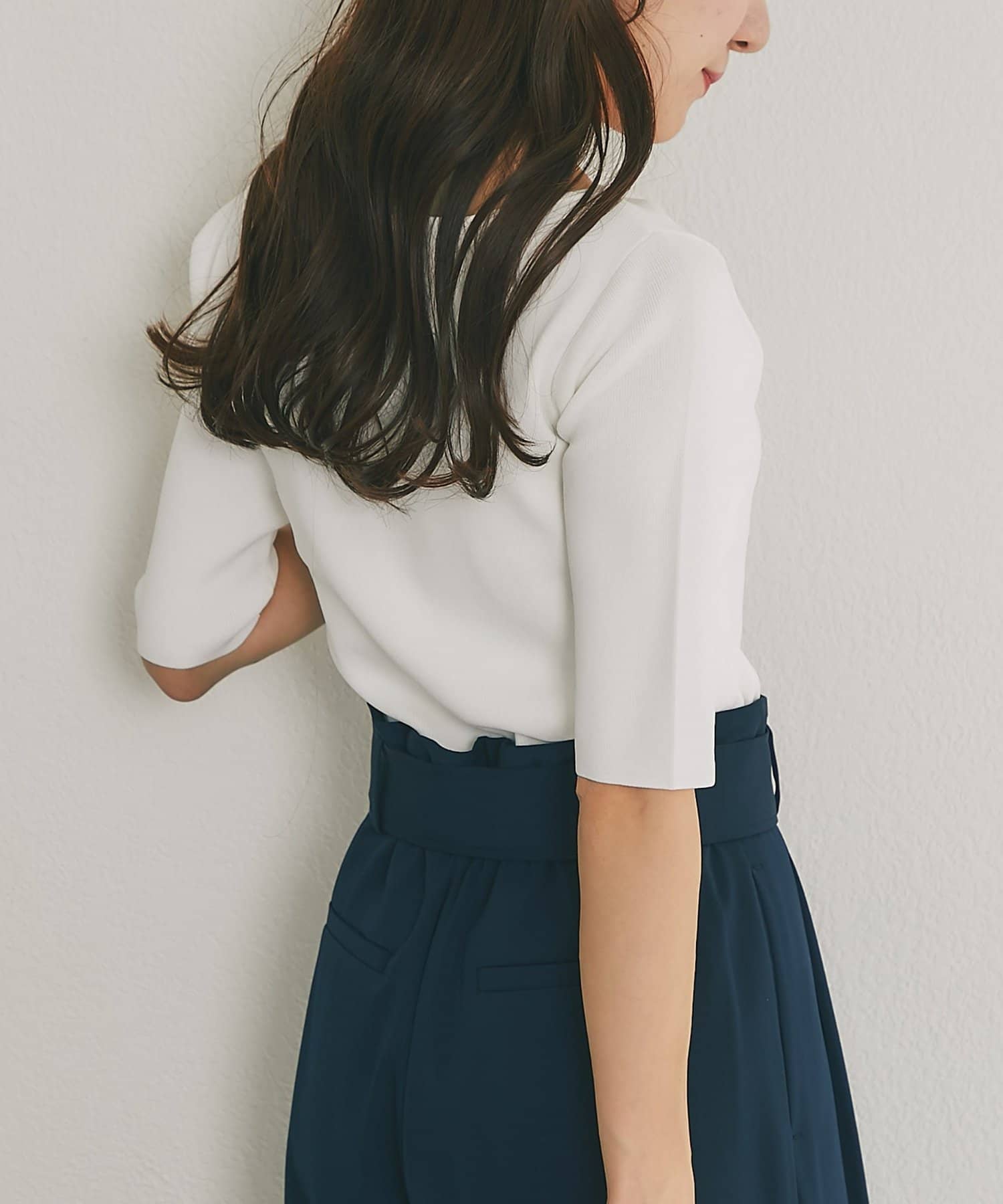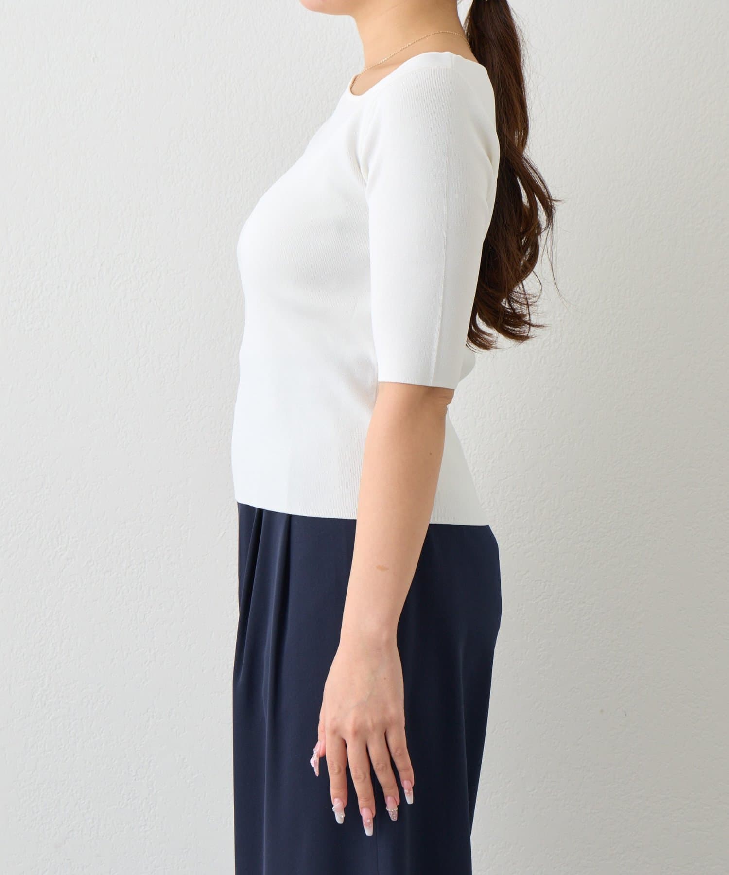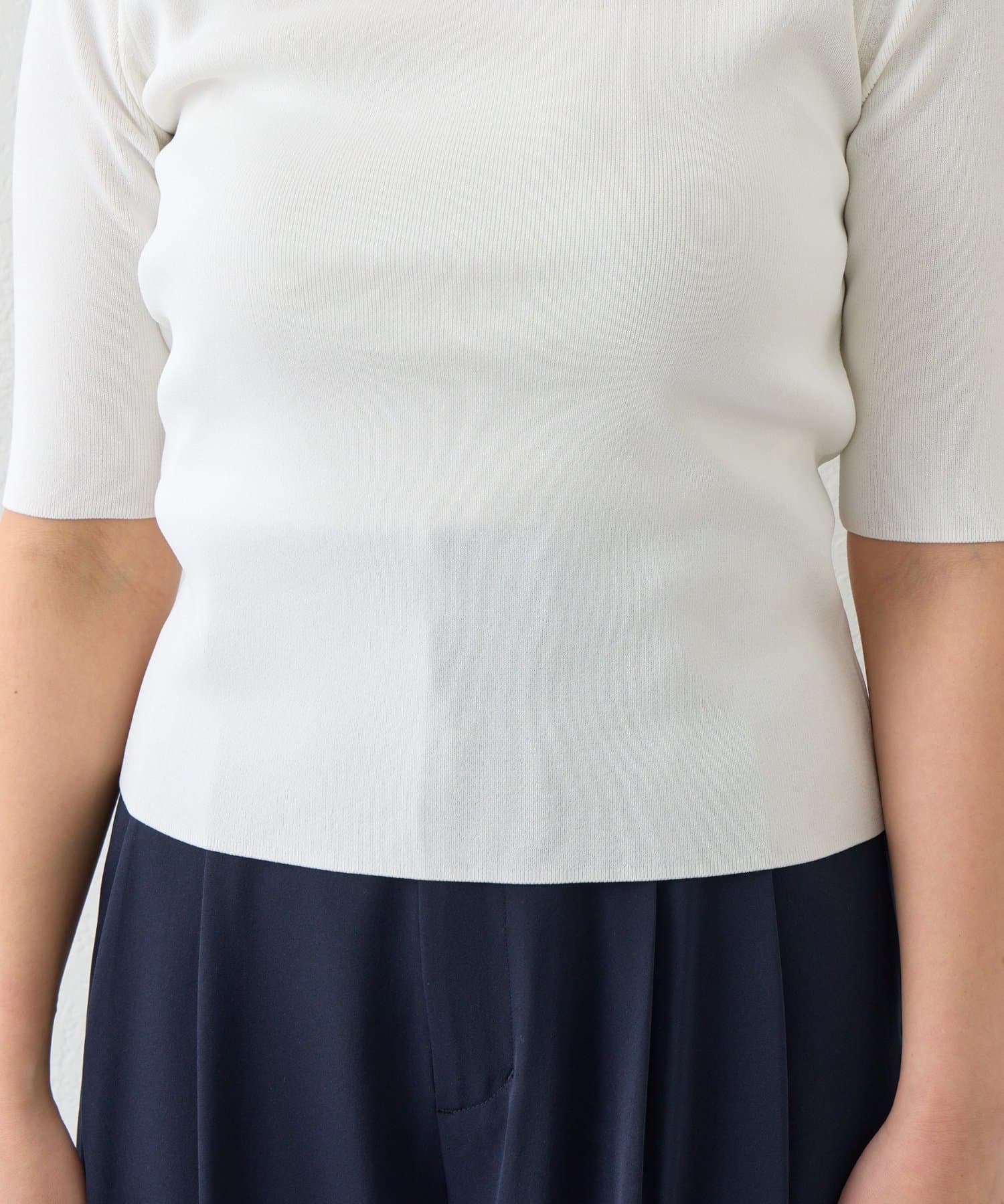 コンパクトなシルエットに二の腕が隠れる5分袖プルオーバー。