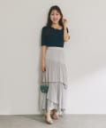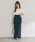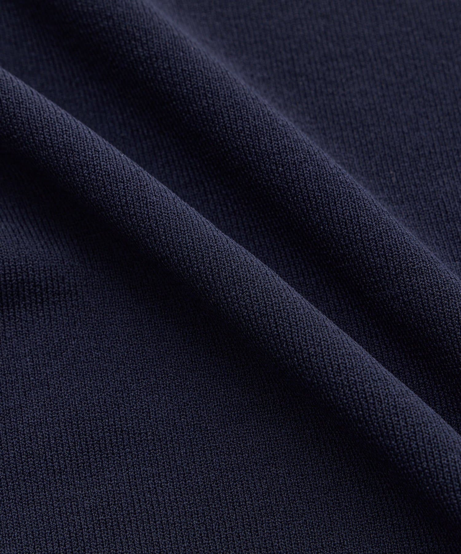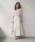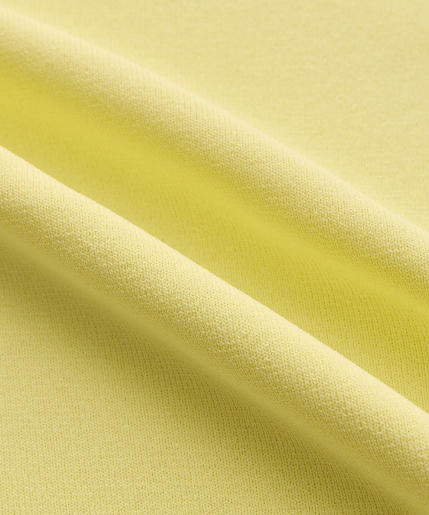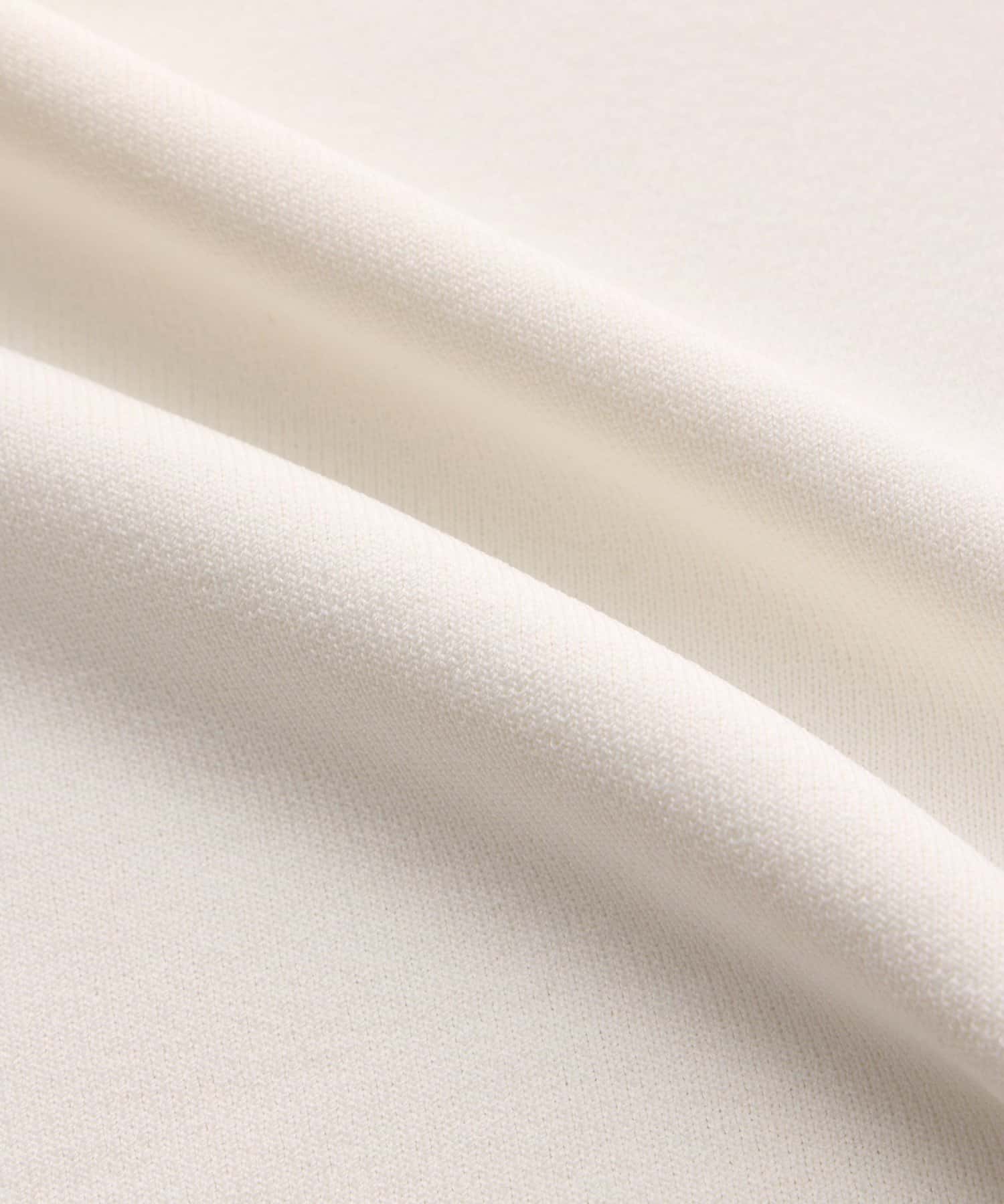 マットな光沢感と身体のラインを拾わず適度なハリがある総針の編地で女性らしいシルエットに。