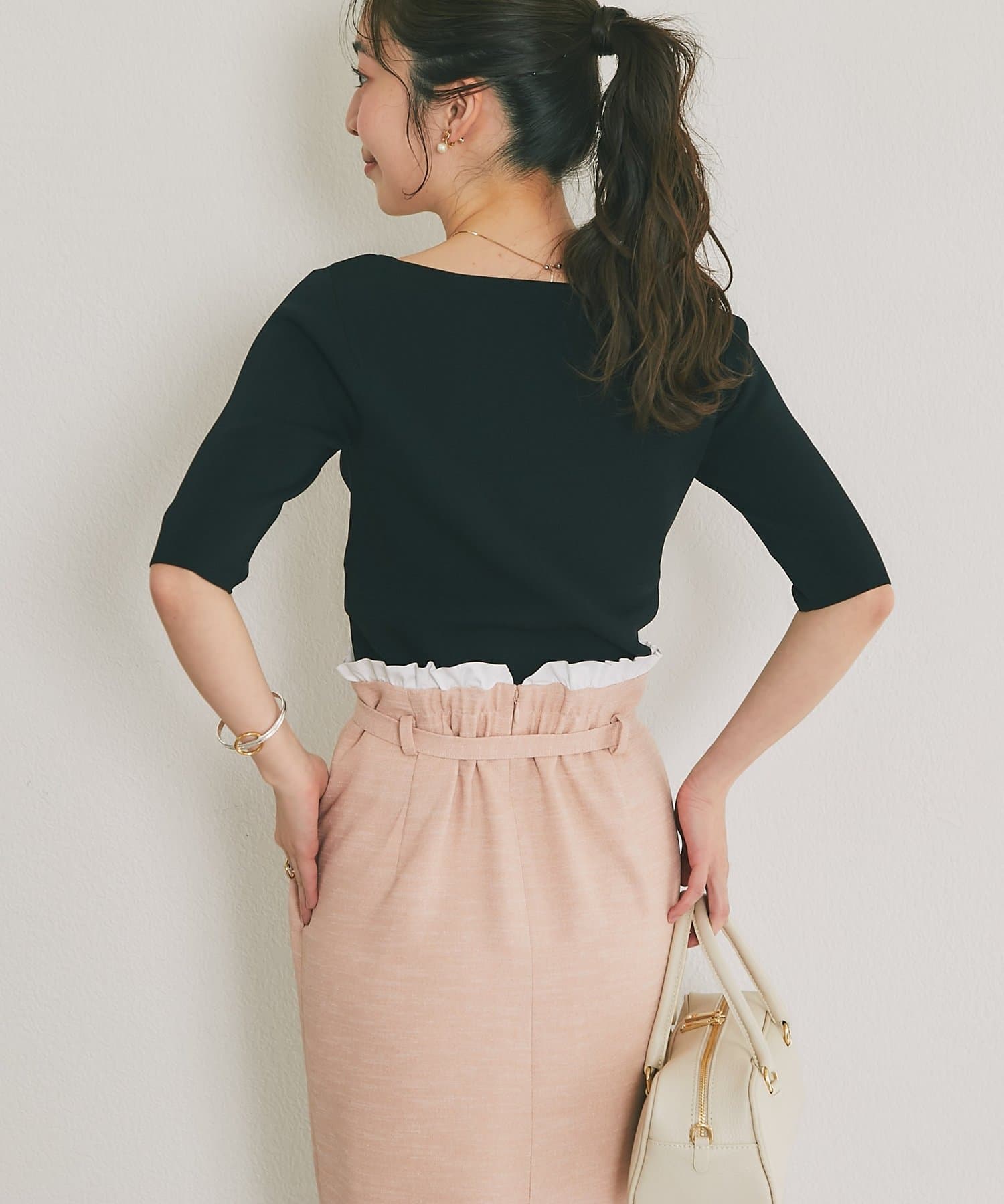 ・バイカラーオフショルラッフルリブニット(LBZ1052105A0005)
