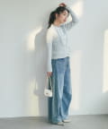 落ち感のある綺麗目なスカートはもちろんデニムなどのパンツスタイルもおすすめ。