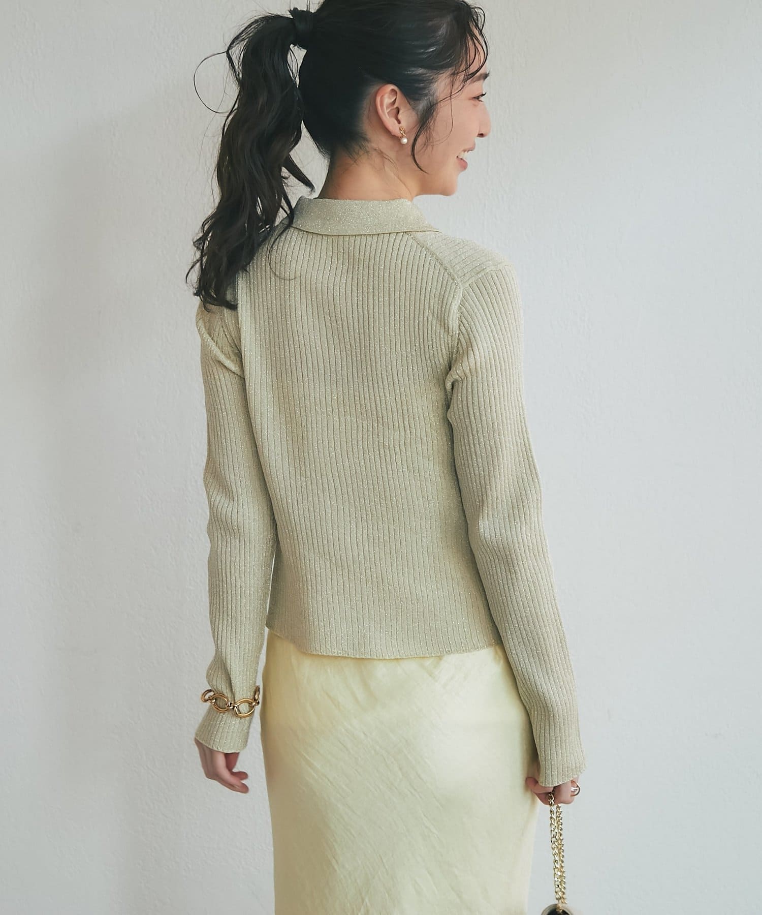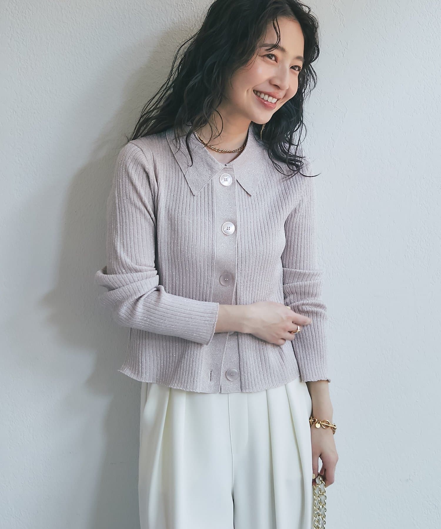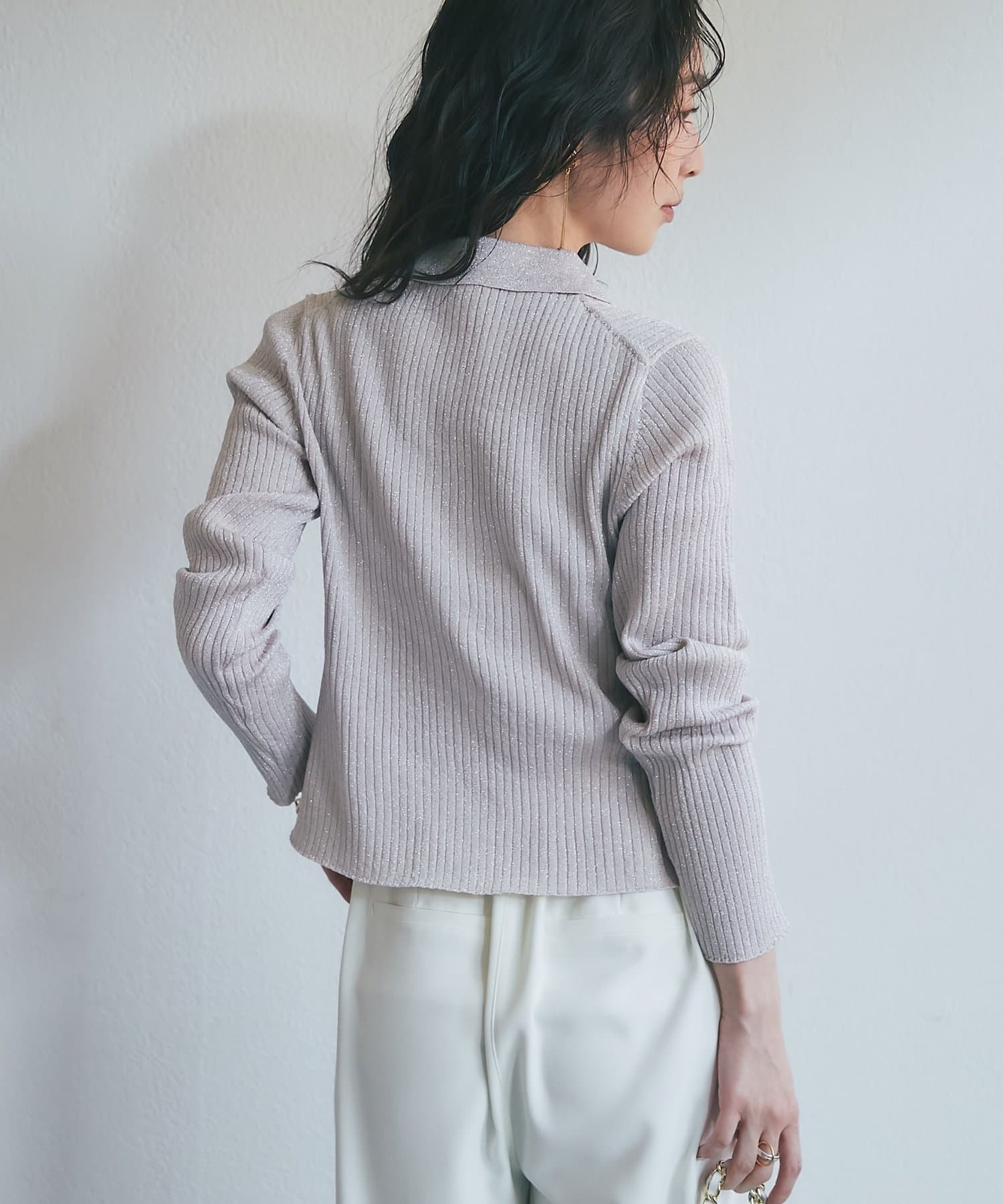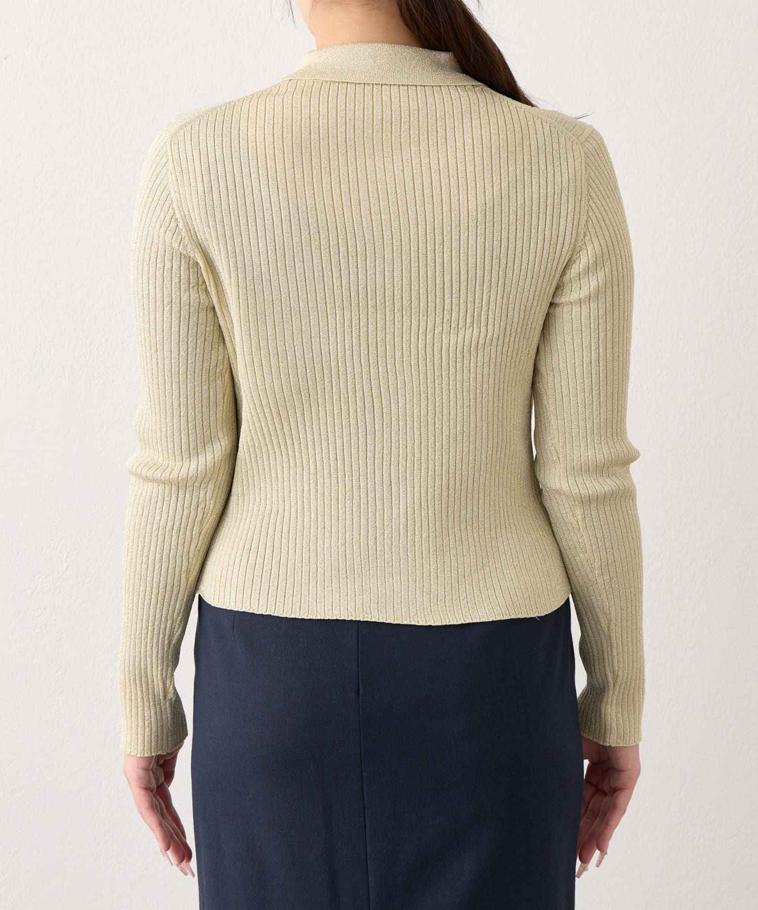 【名品・新色登場!】ラメリブポロ衿カーディガン