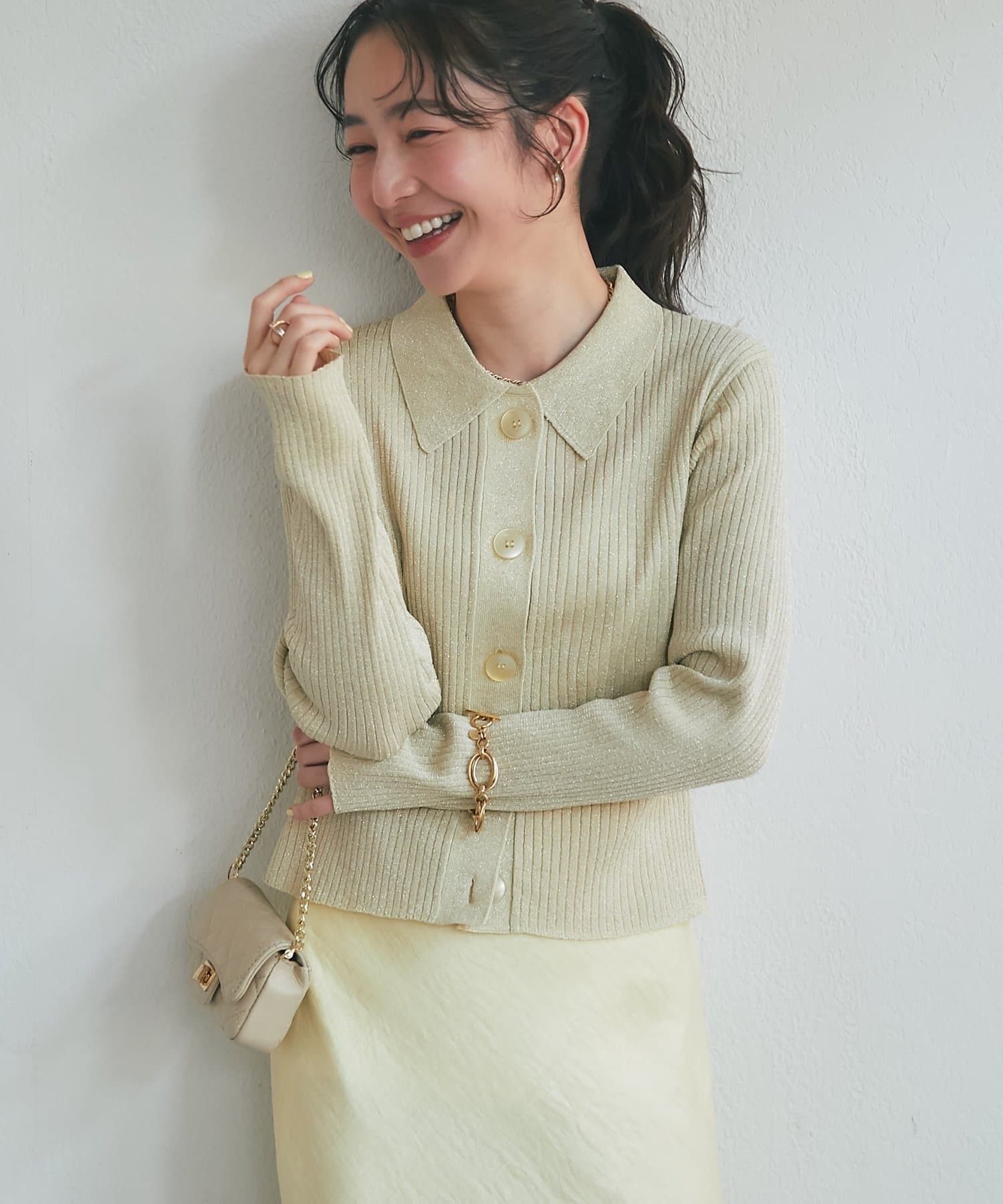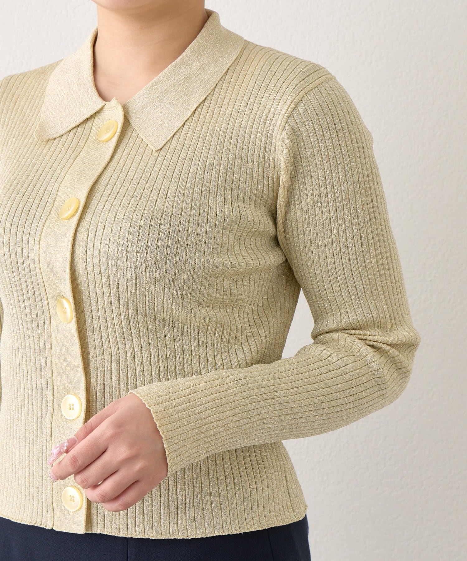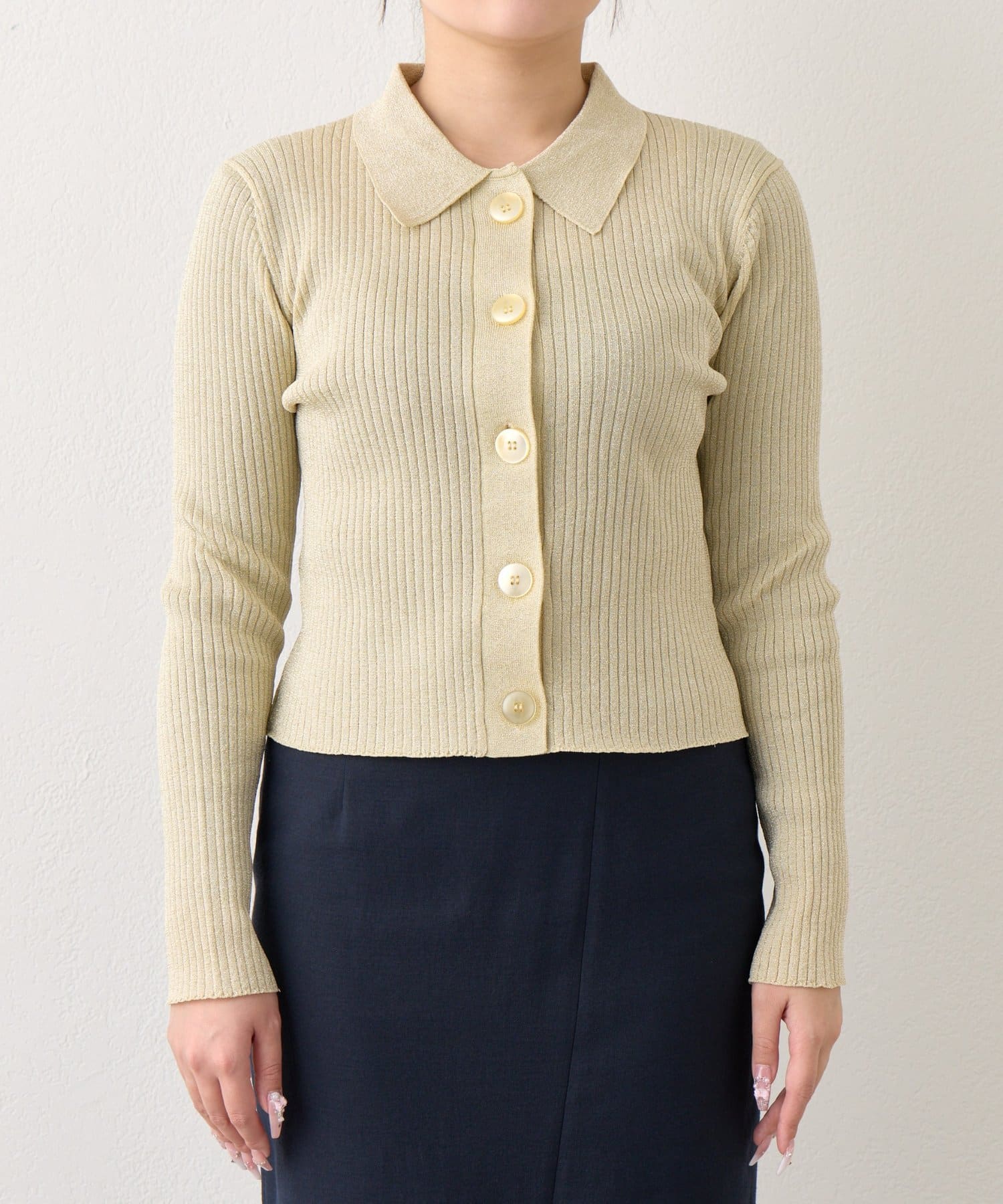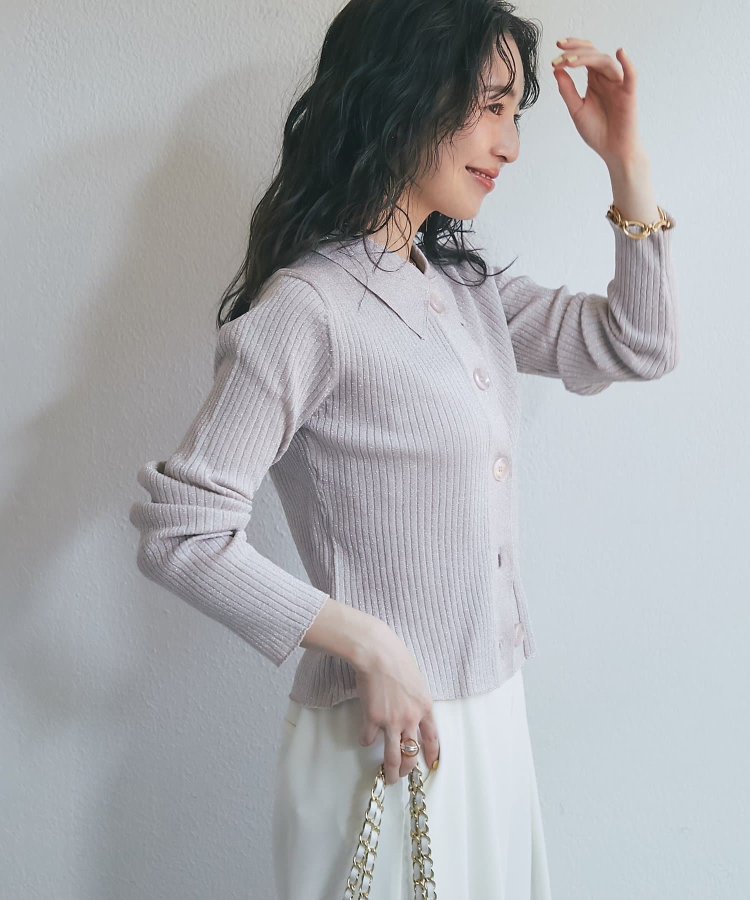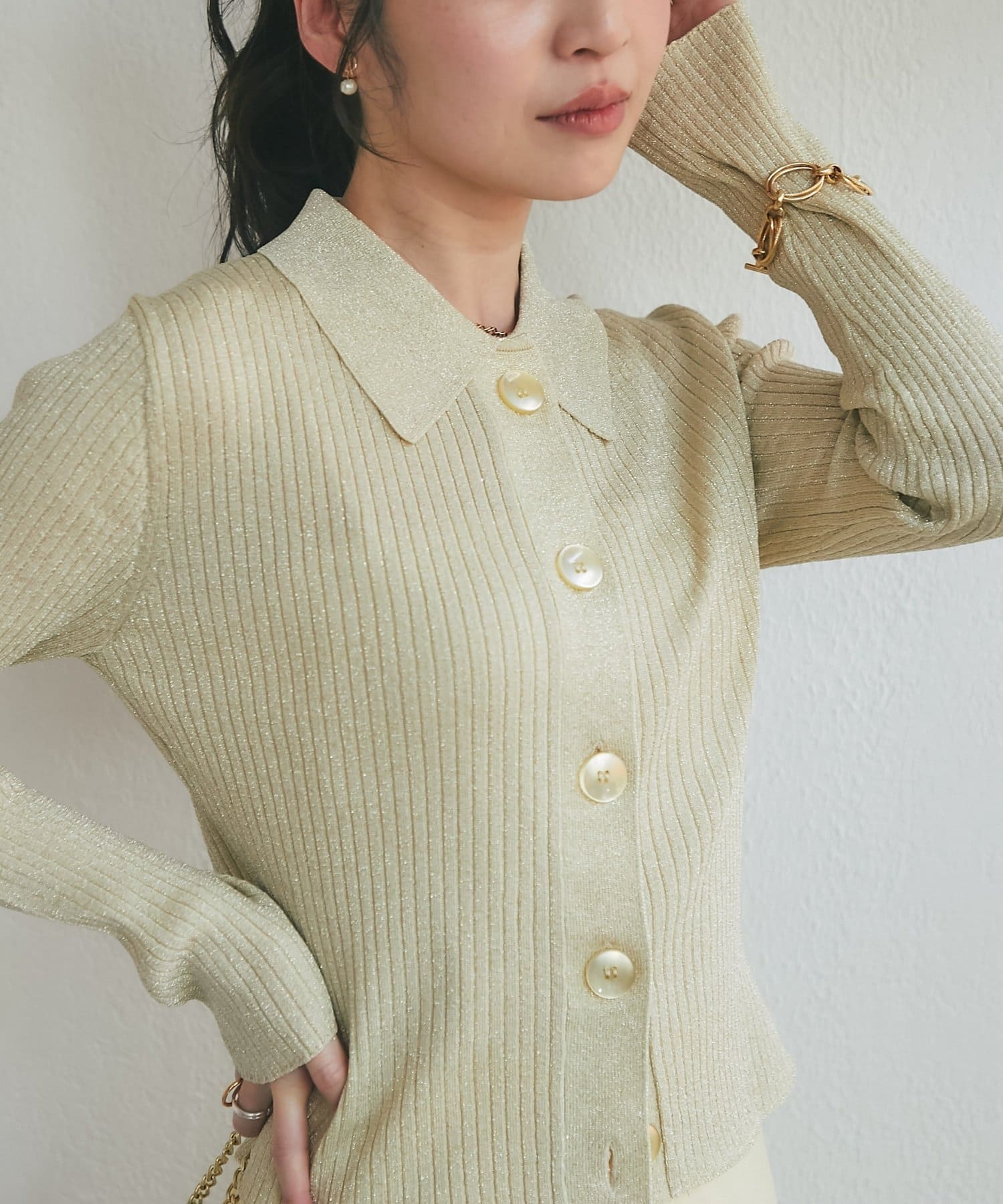 【名品・新色登場!】ラメリブポロ衿カーディガン