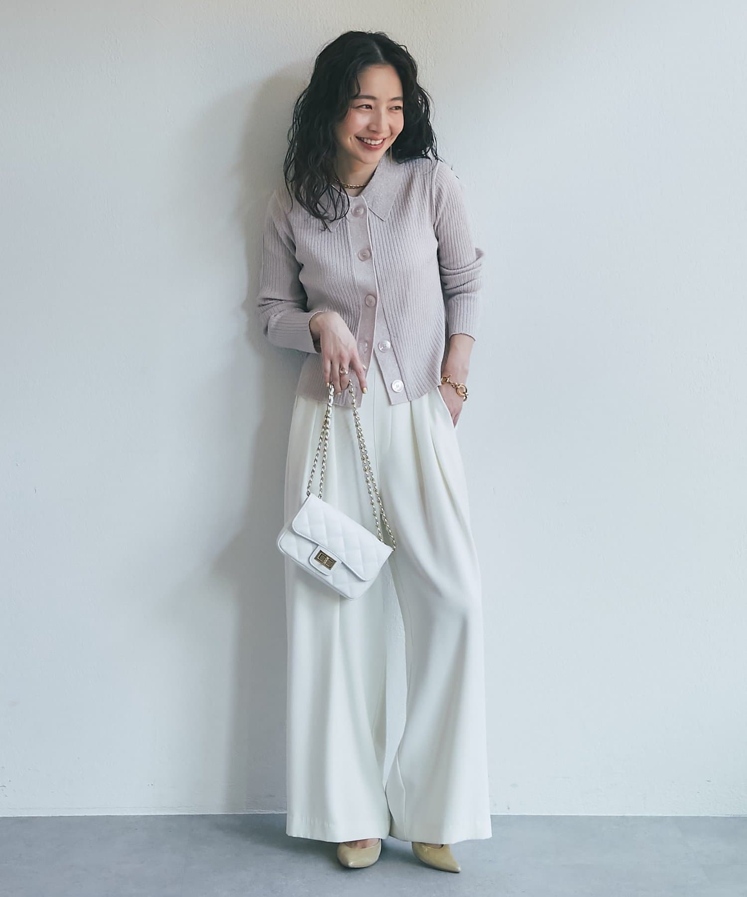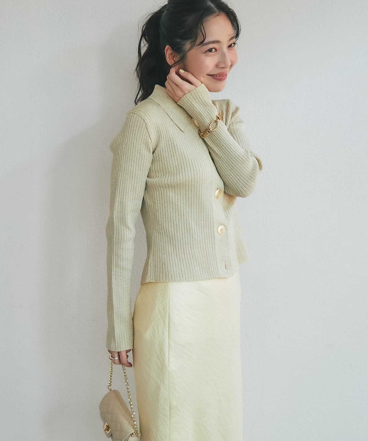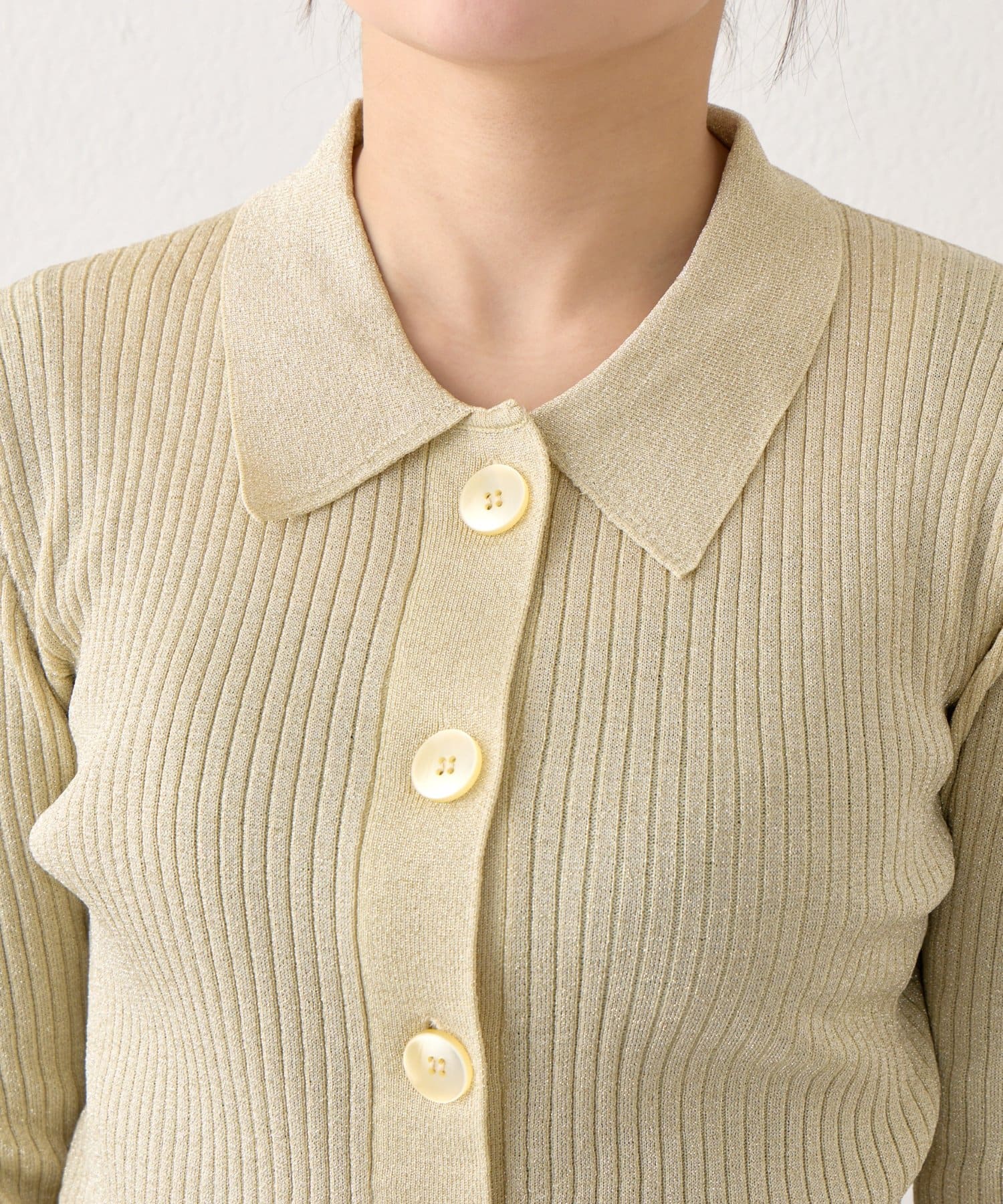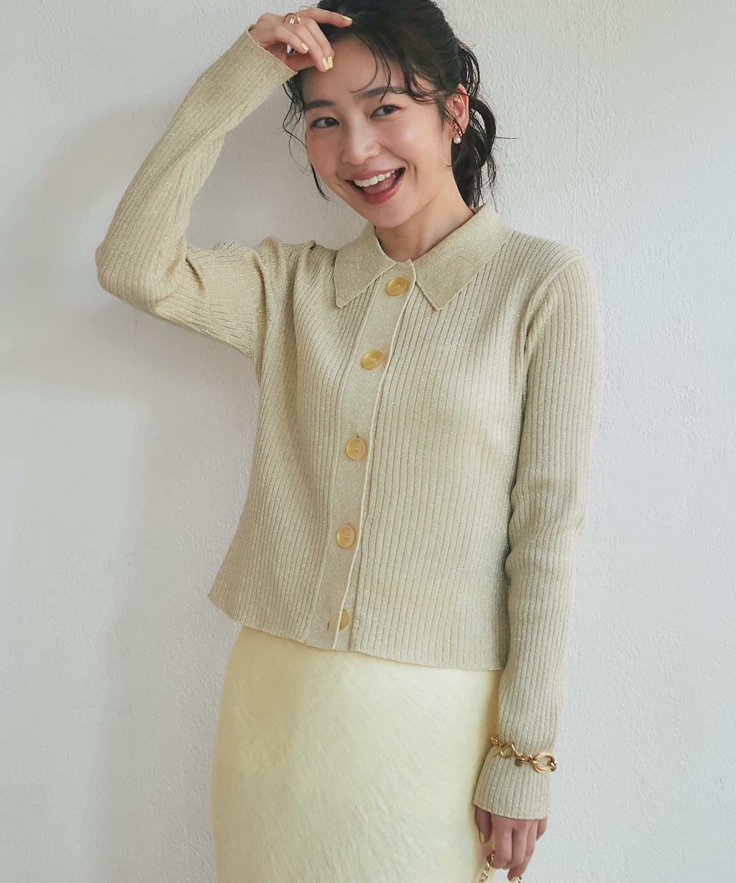 【名品・新色登場!】ラメリブポロ衿カーディガン