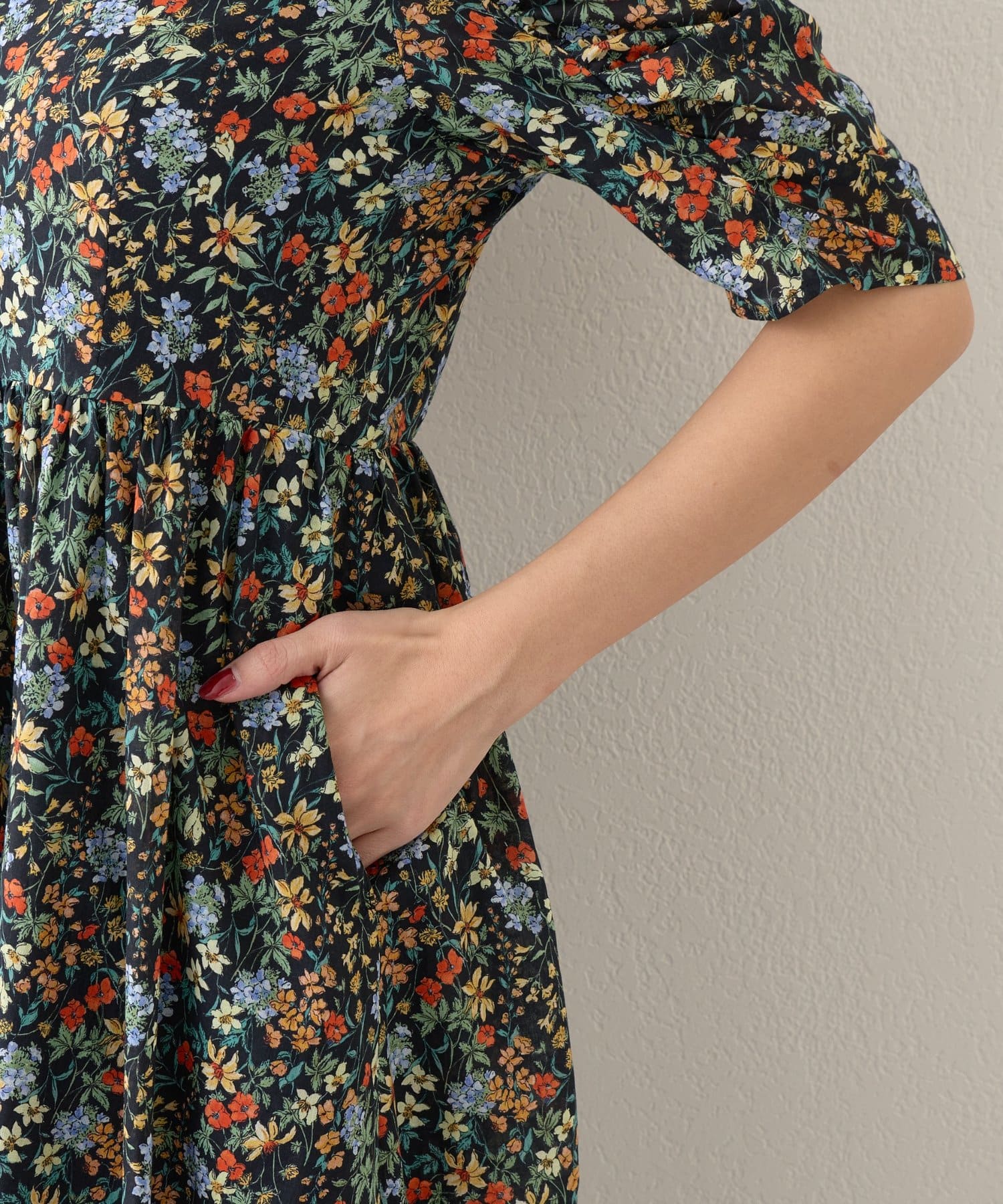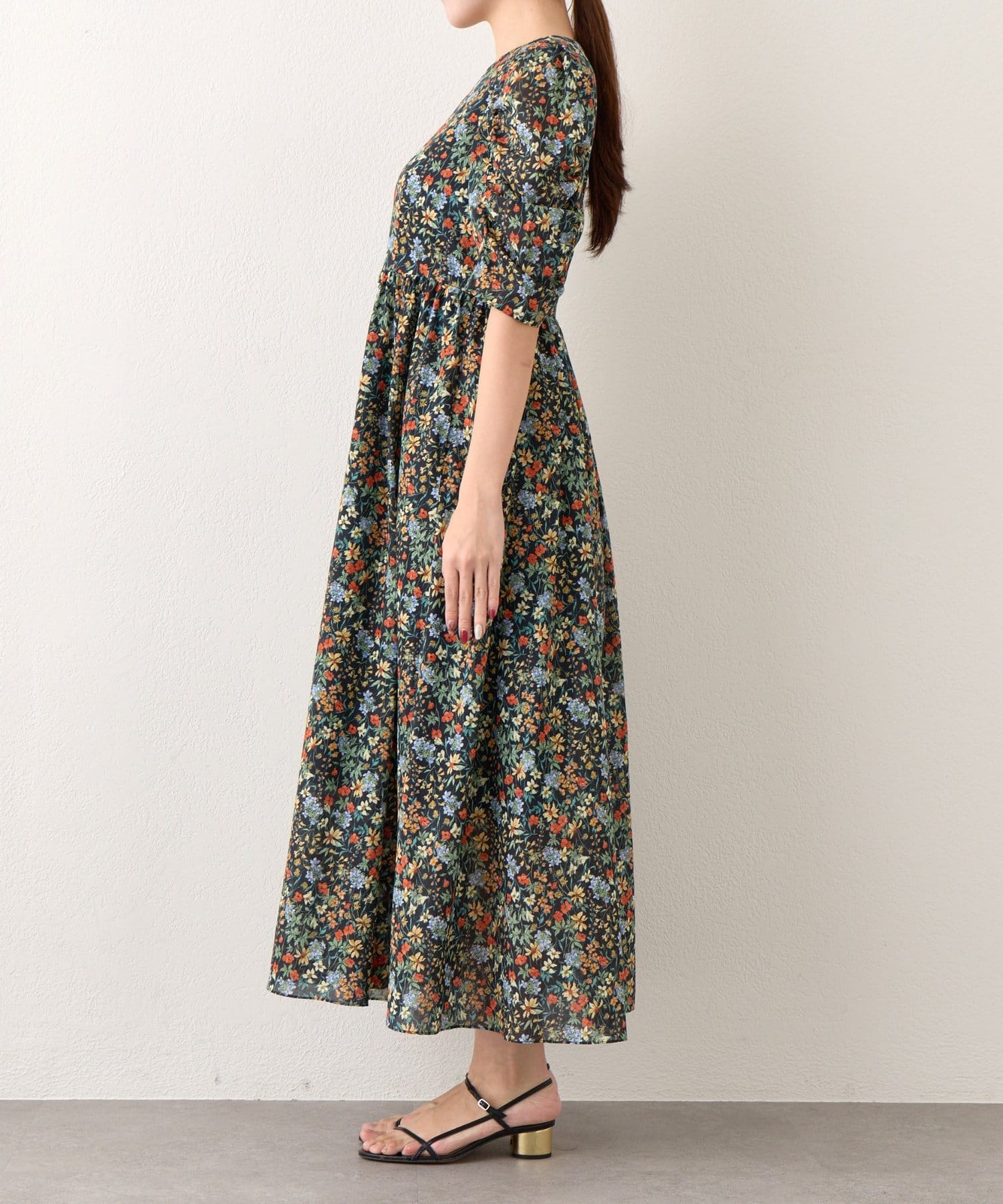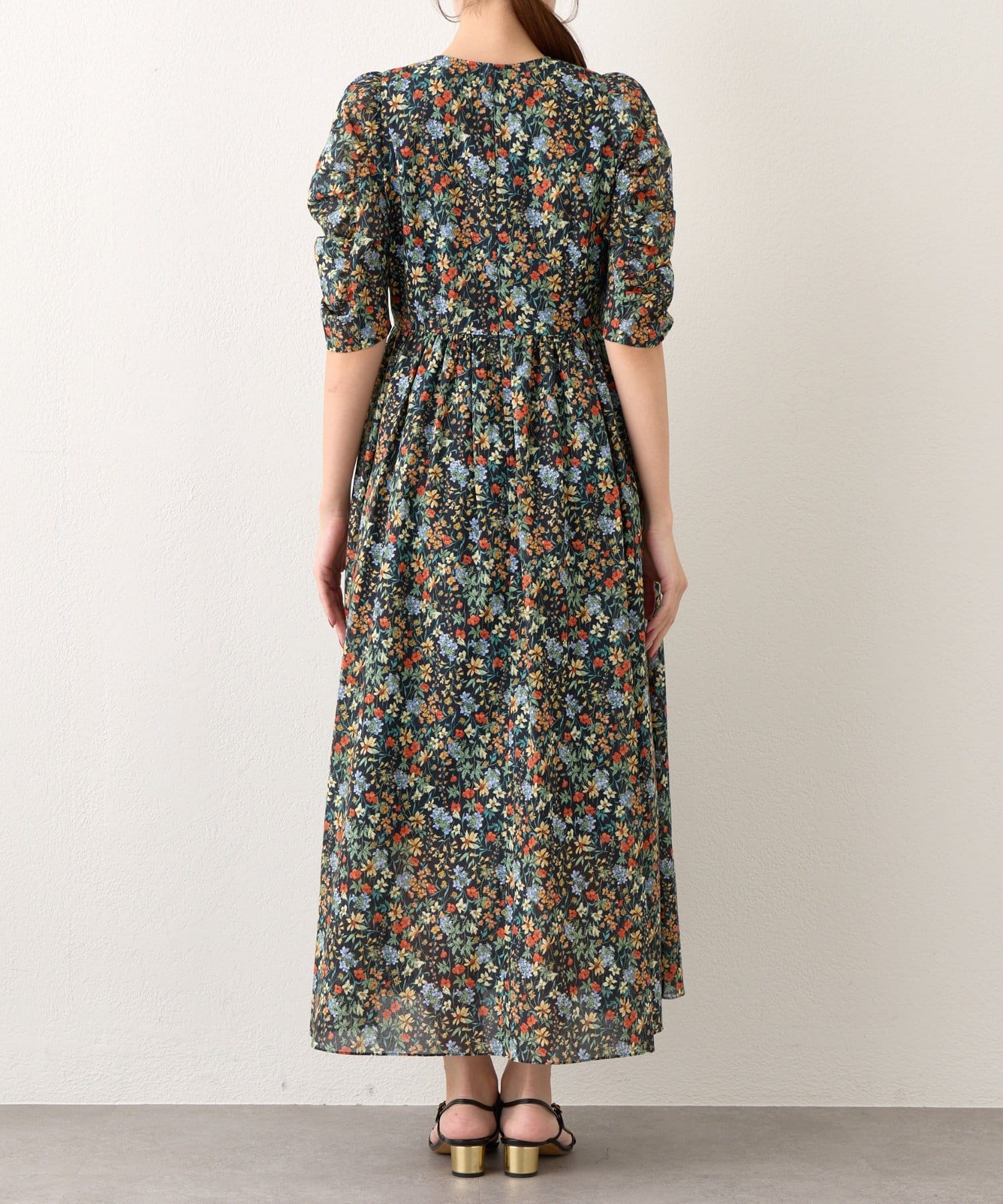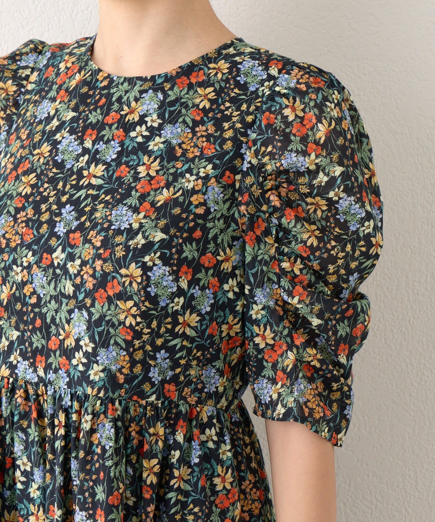優しい花柄で季節を纏う、ギャザースリーブワンピース