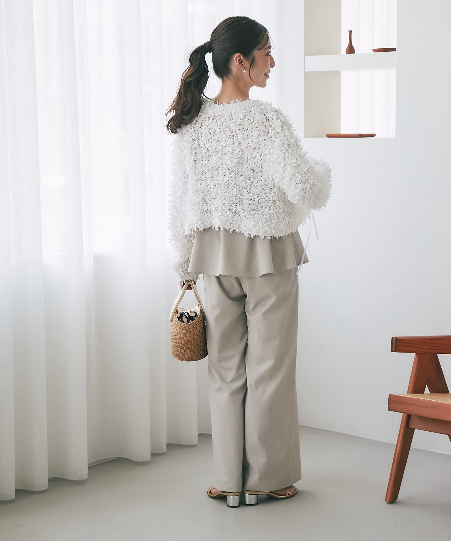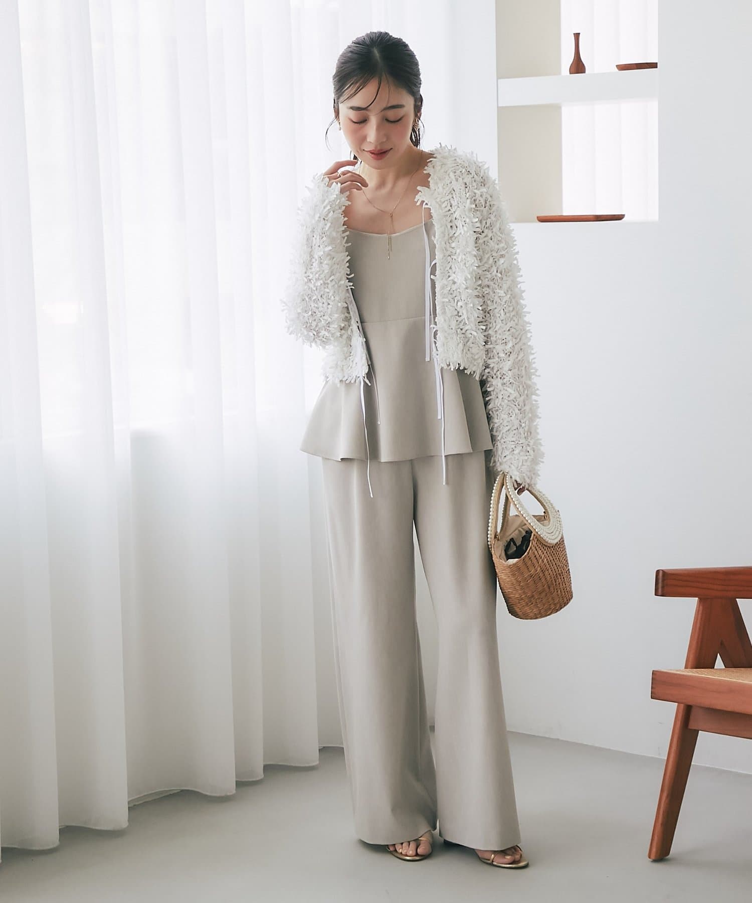 ・パンツは甘くなりすぎないストレートシルエット