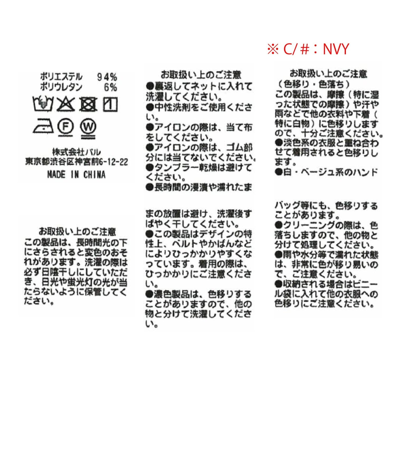 素材 ポリエステル : 94%