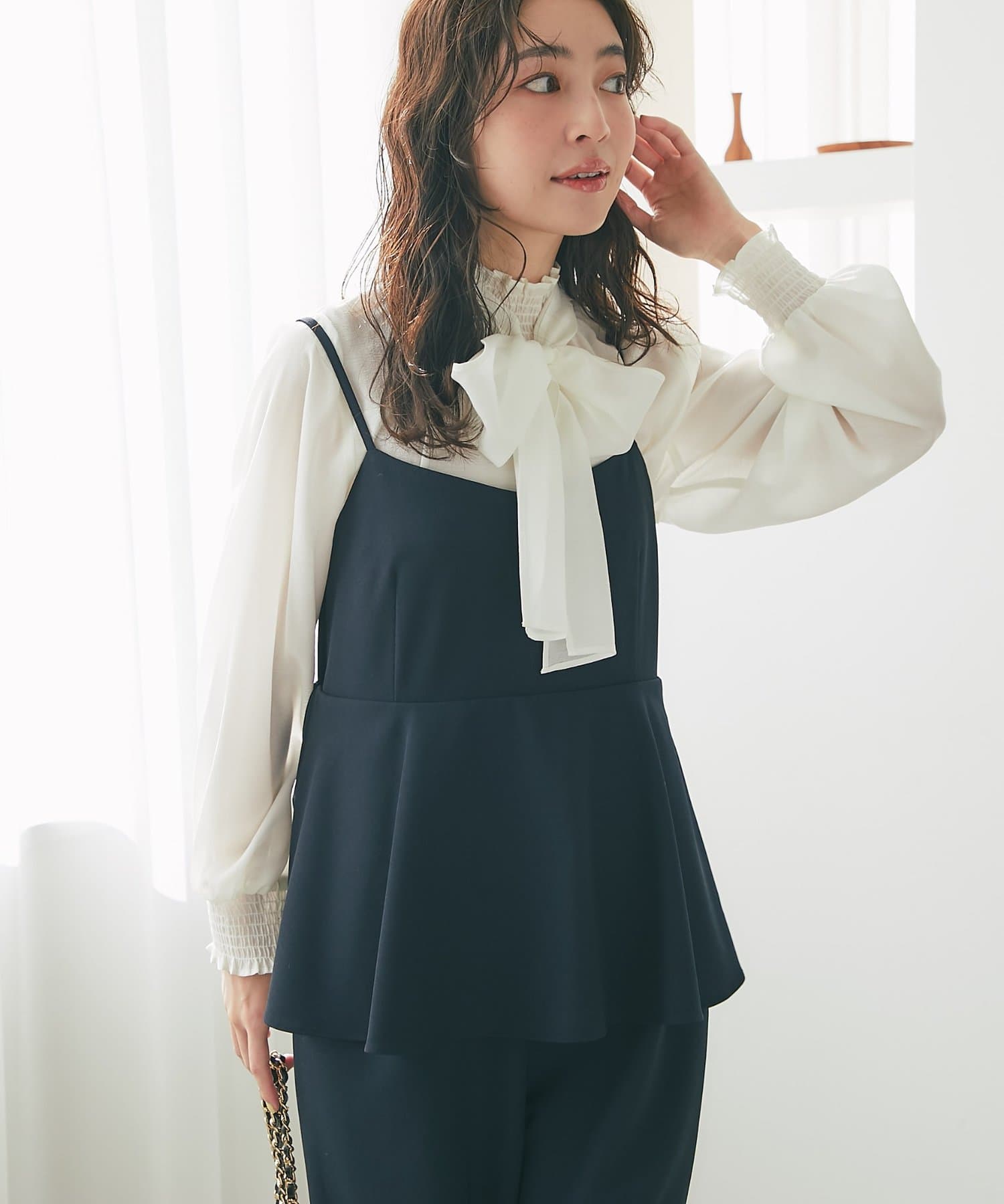 レースやシアー素材のインナーを合わせれば、フェミニンで上品な印象に。