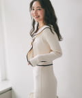 大人の女性らしい上品な印象に導きます。切り替えラインを高めに配置しスタイルアップ効果も◎
