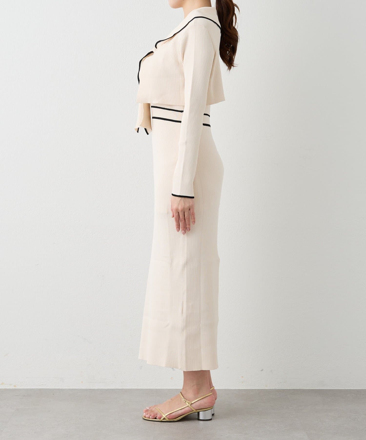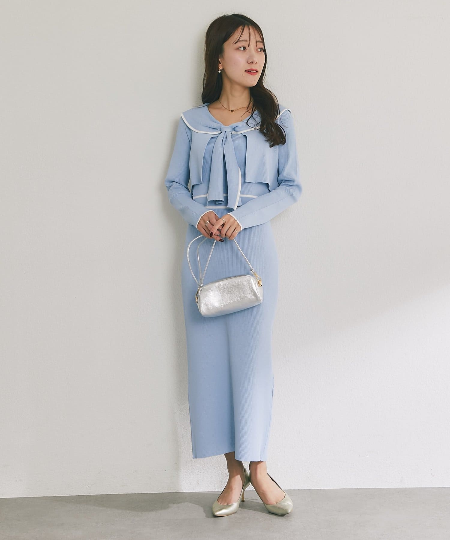 キャミソールワンピースとショートニットのセットアイテム。