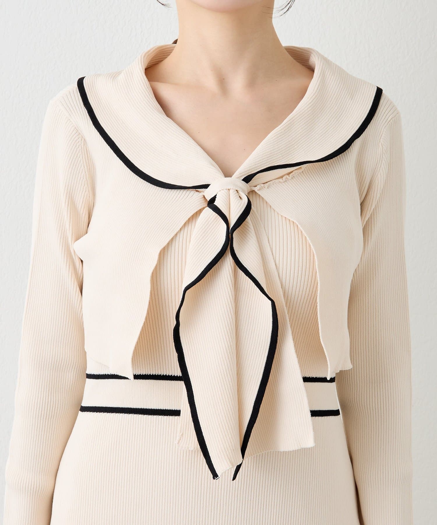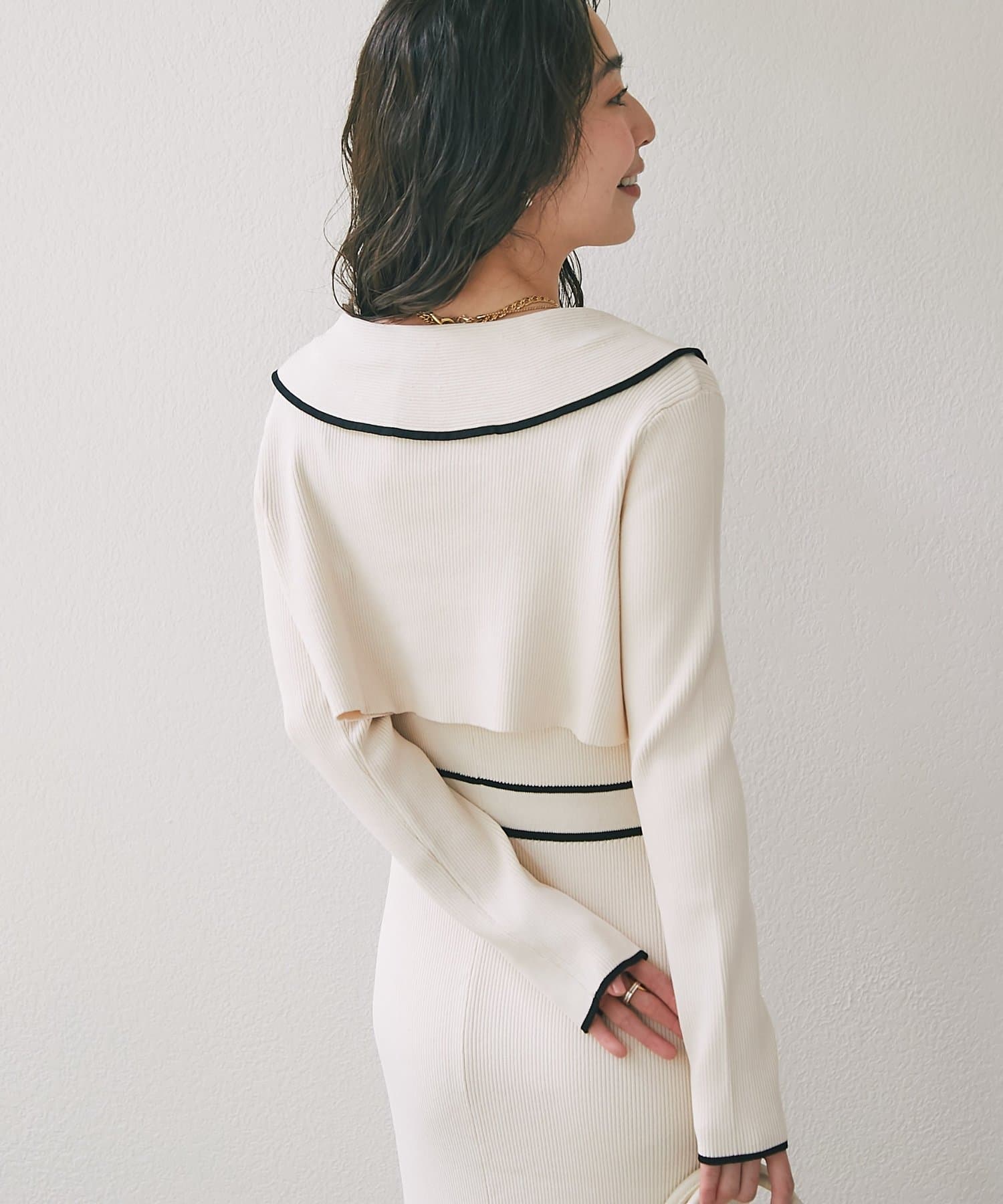 ショートボレロは大きめの襟とリボンディテールが