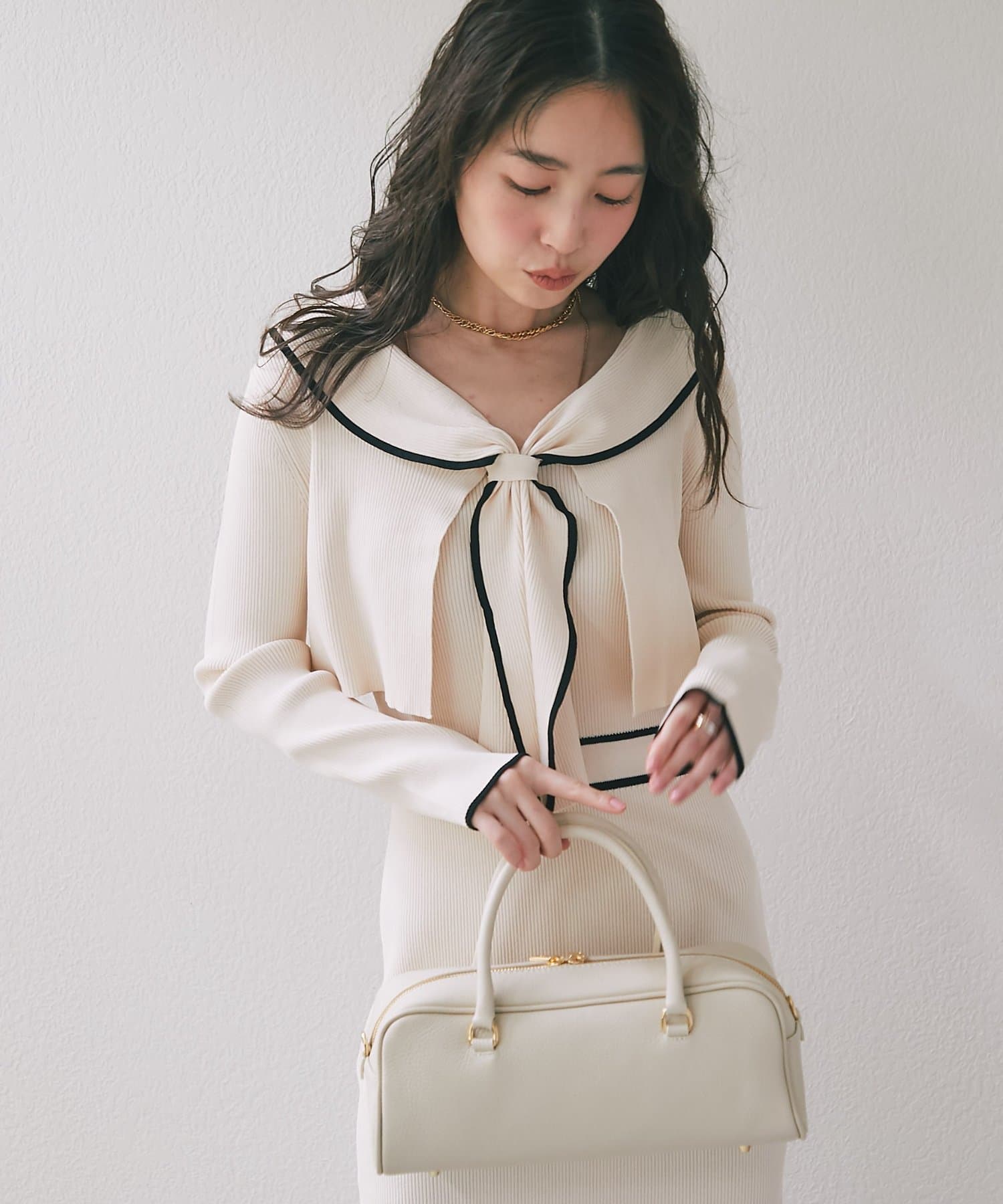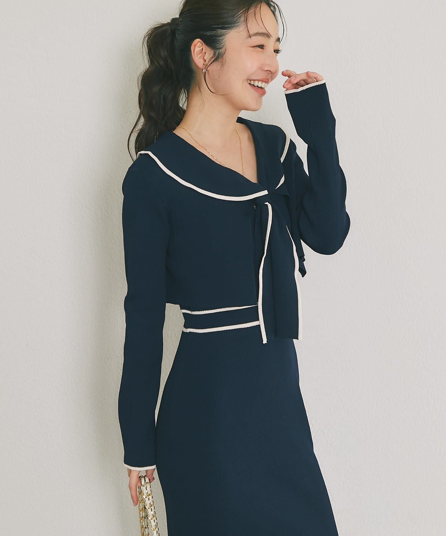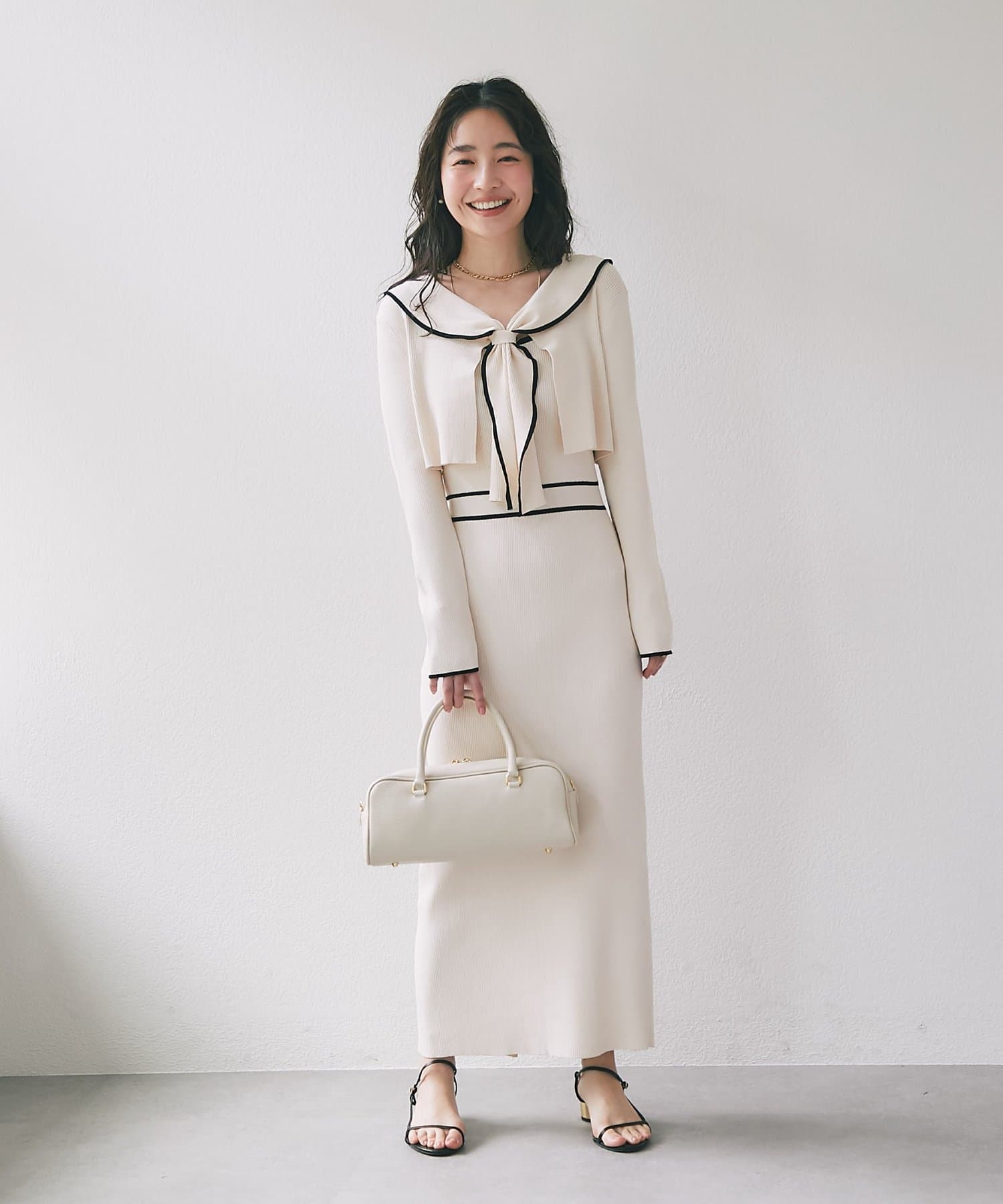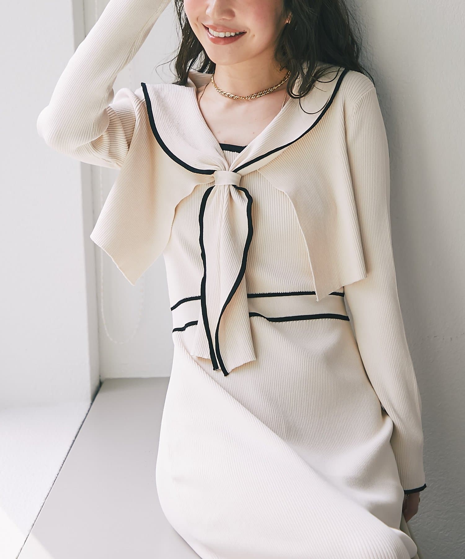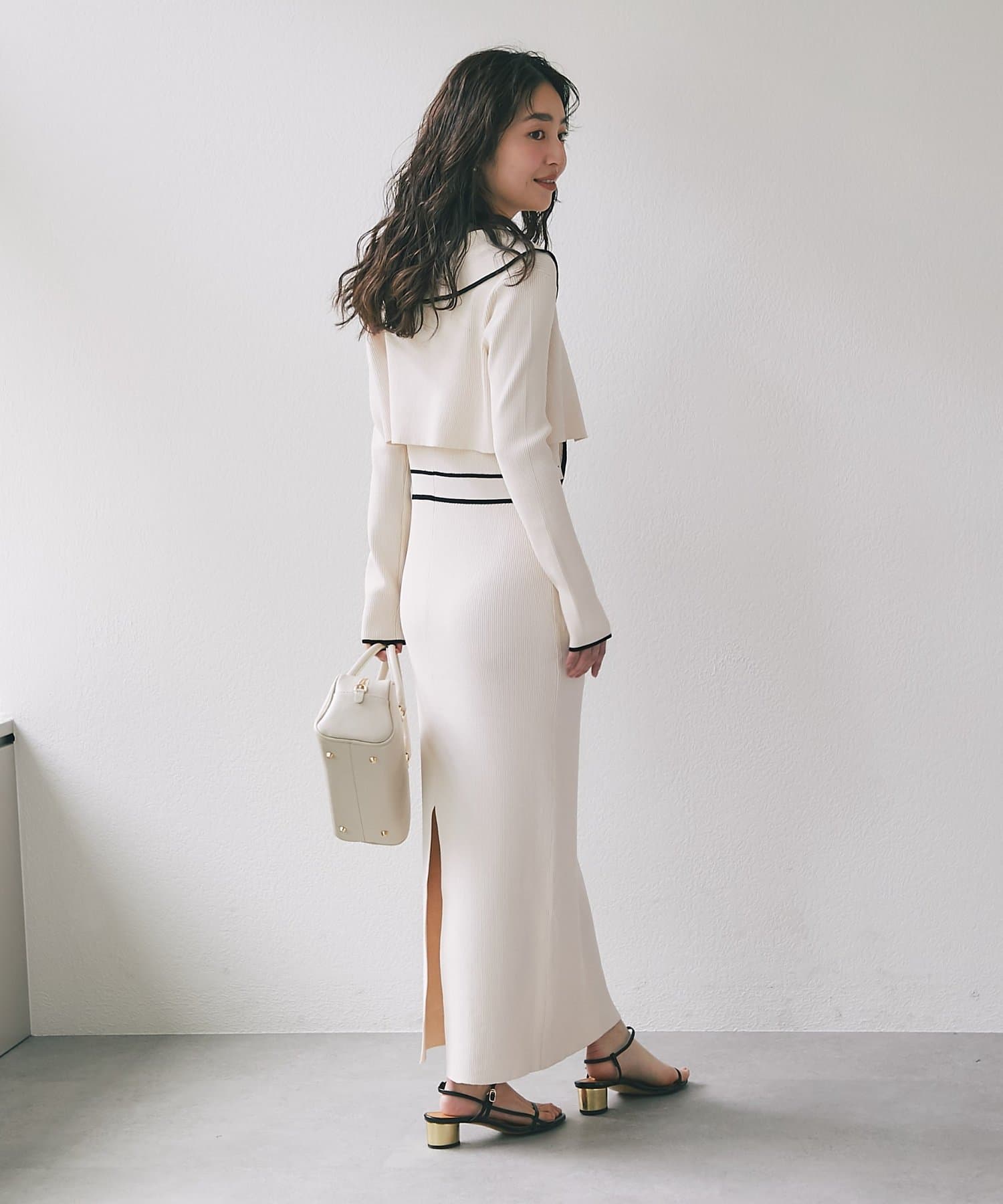 バイカラーが映える、上品レディなニットセットワンピース