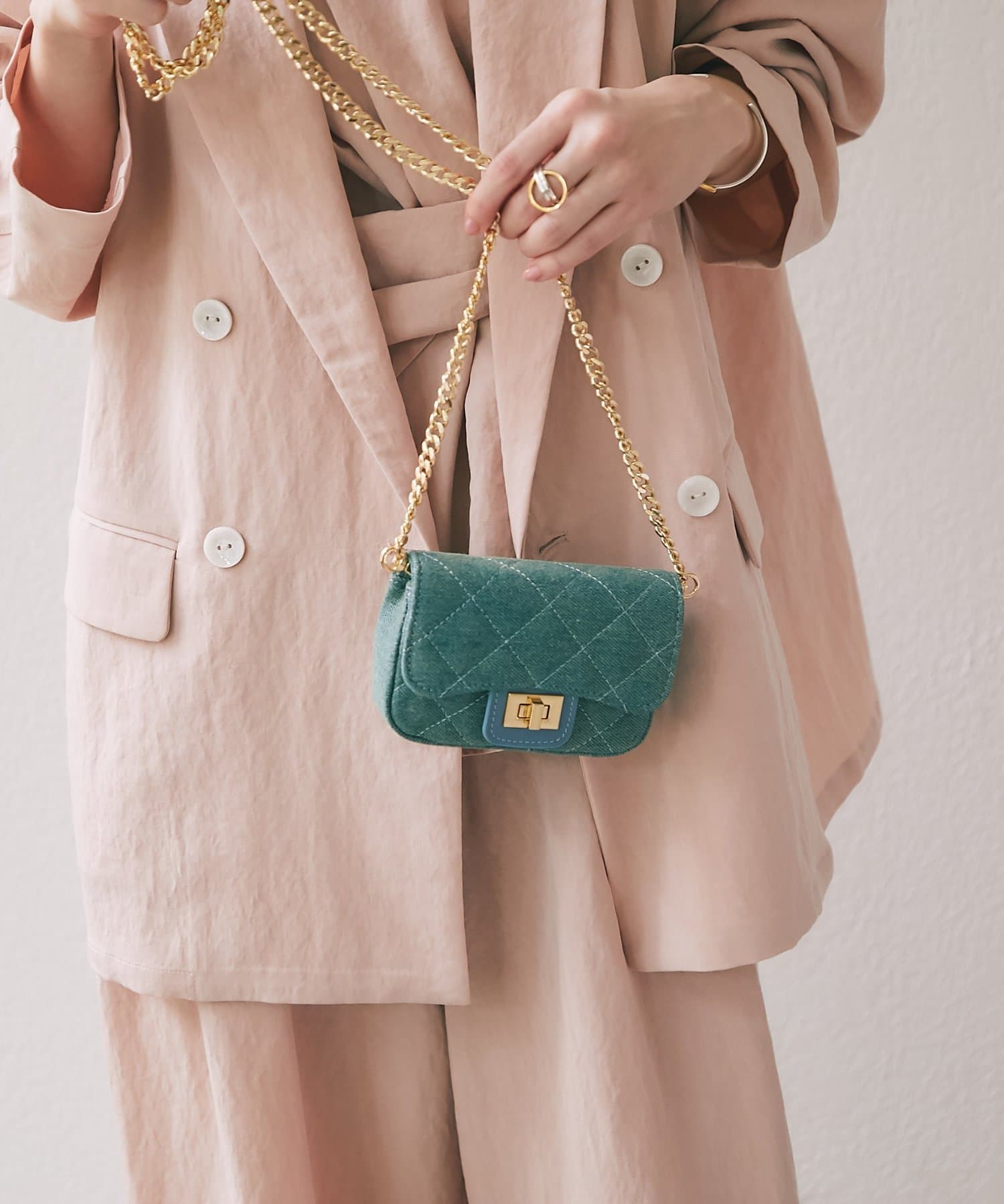 オウレンティ/ミニデニムキルティングチェーンバッグ