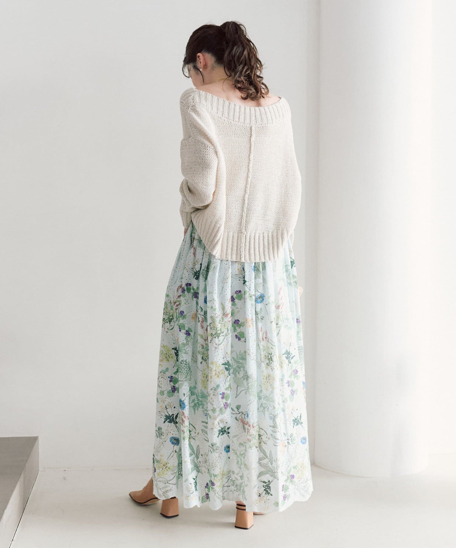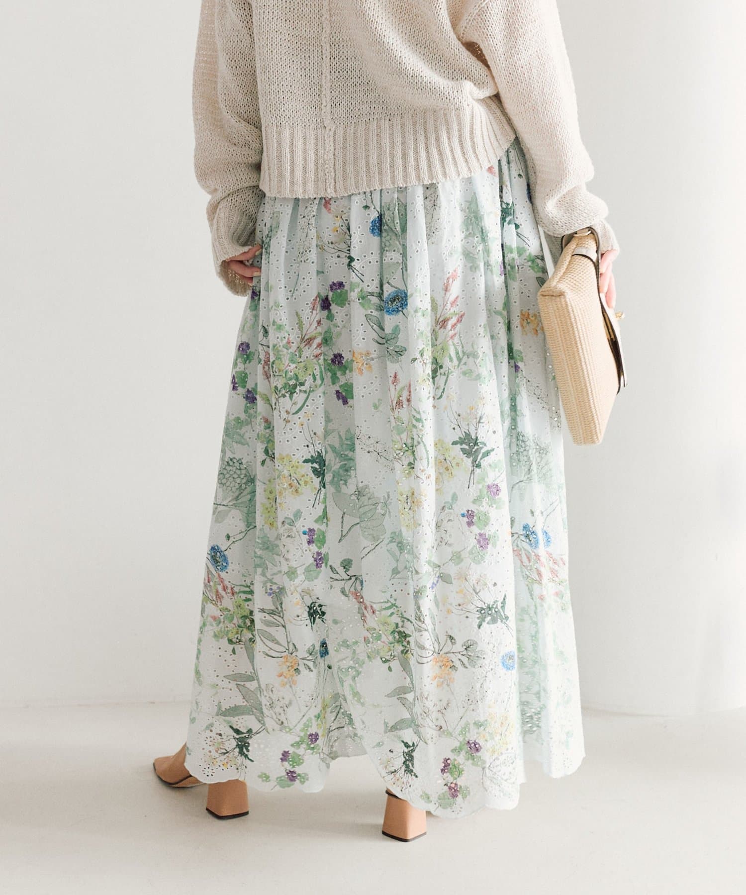 【着映えスカート】エンブロイダリーフラワープリントスカート
