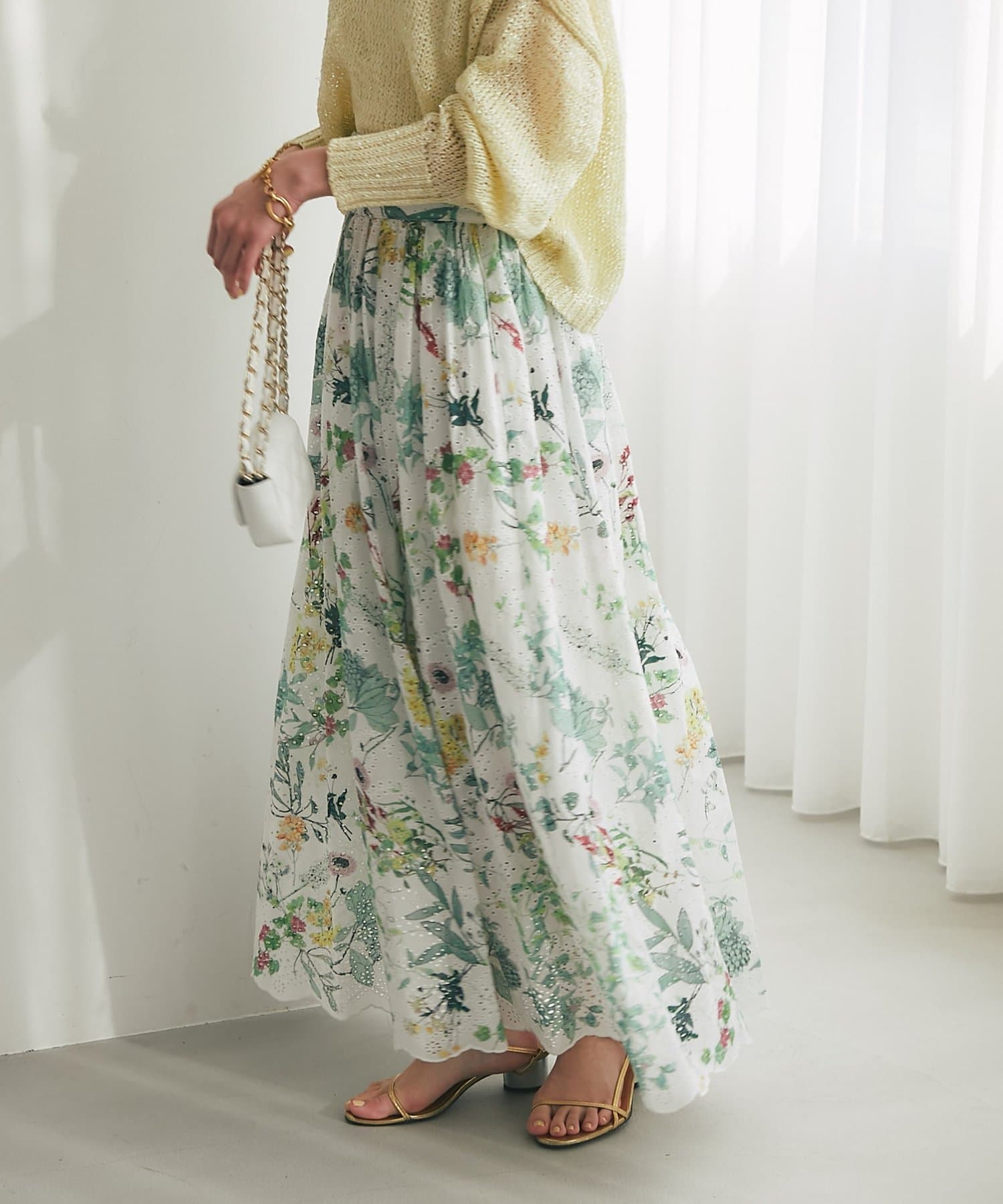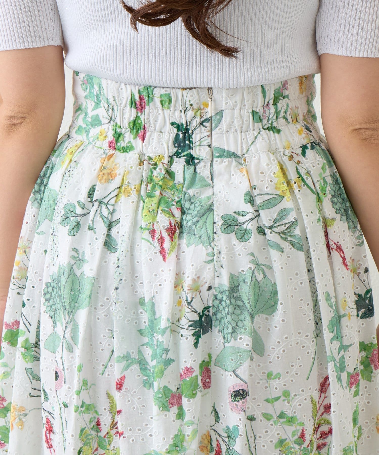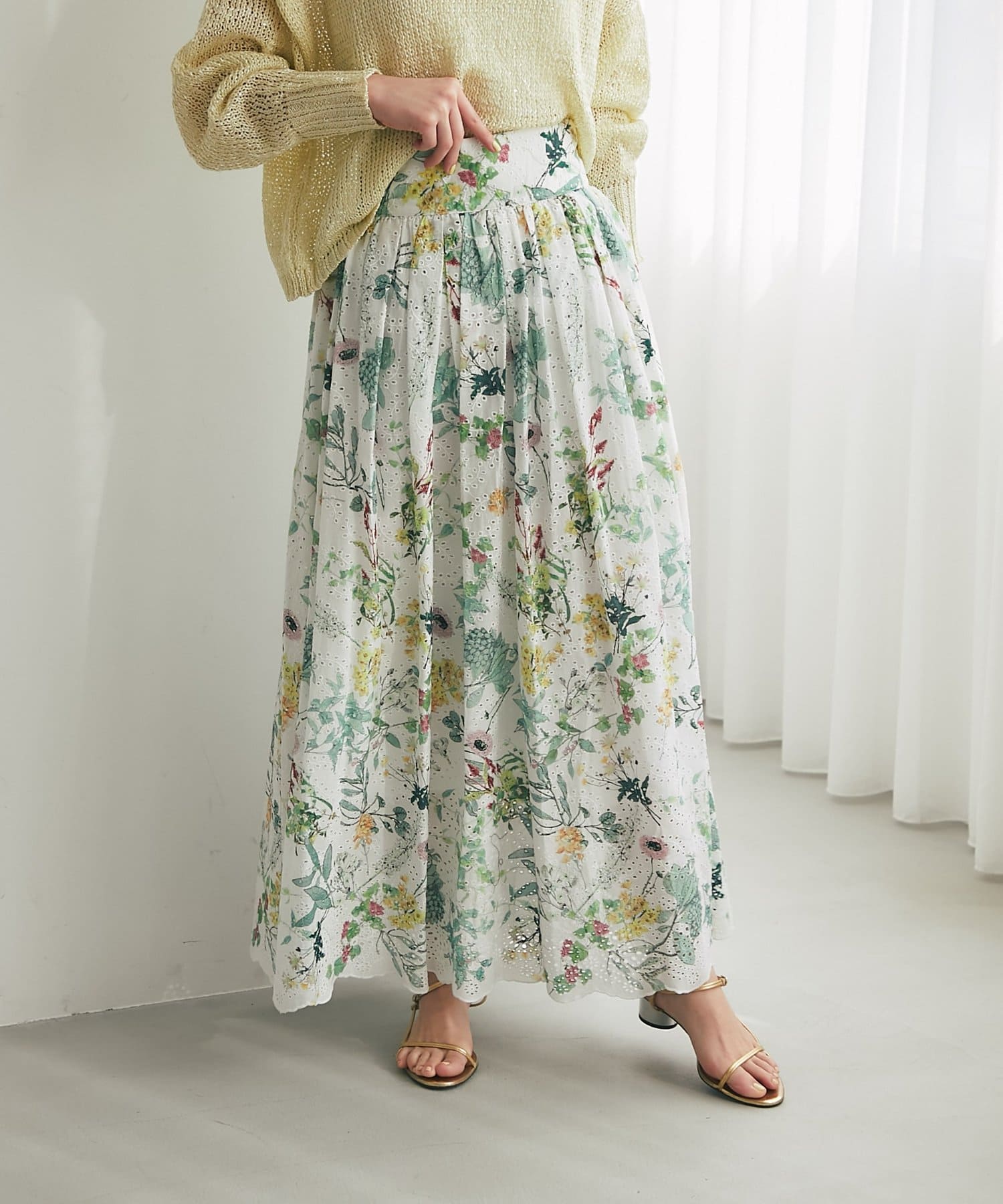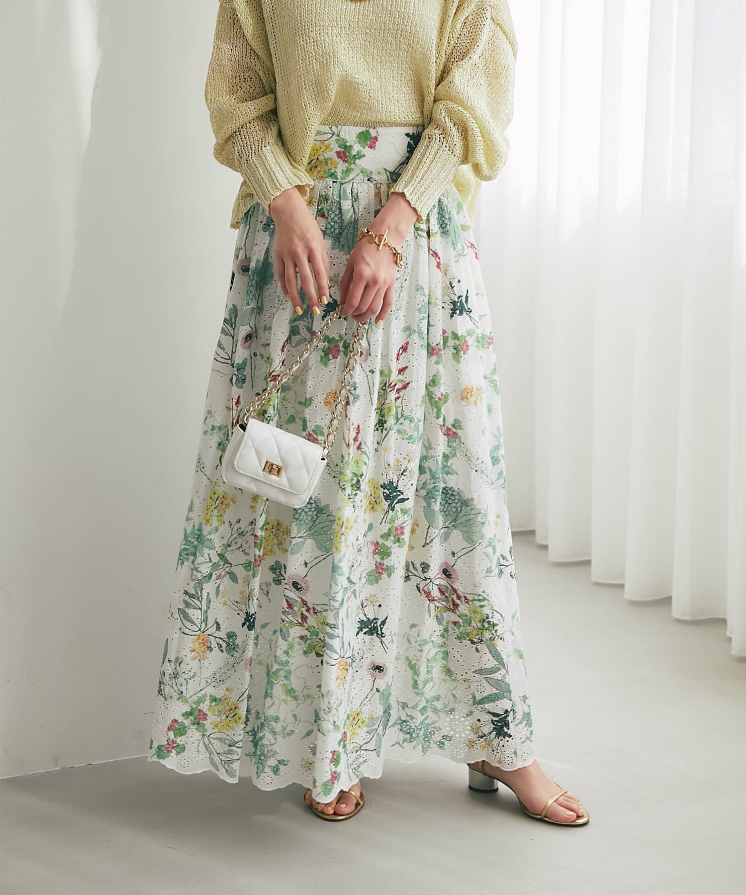 【着映えスカート】エンブロイダリーフラワープリントスカート