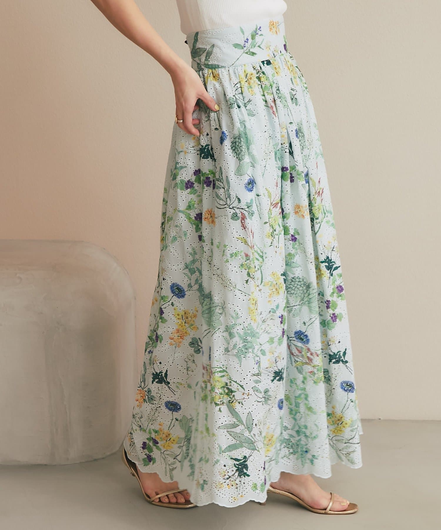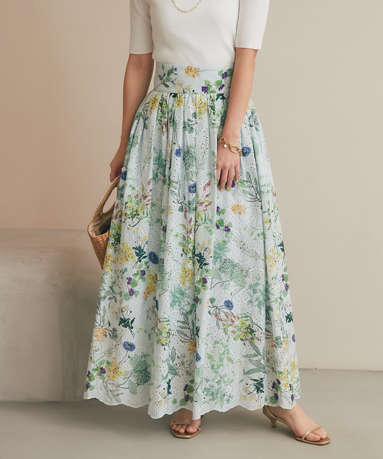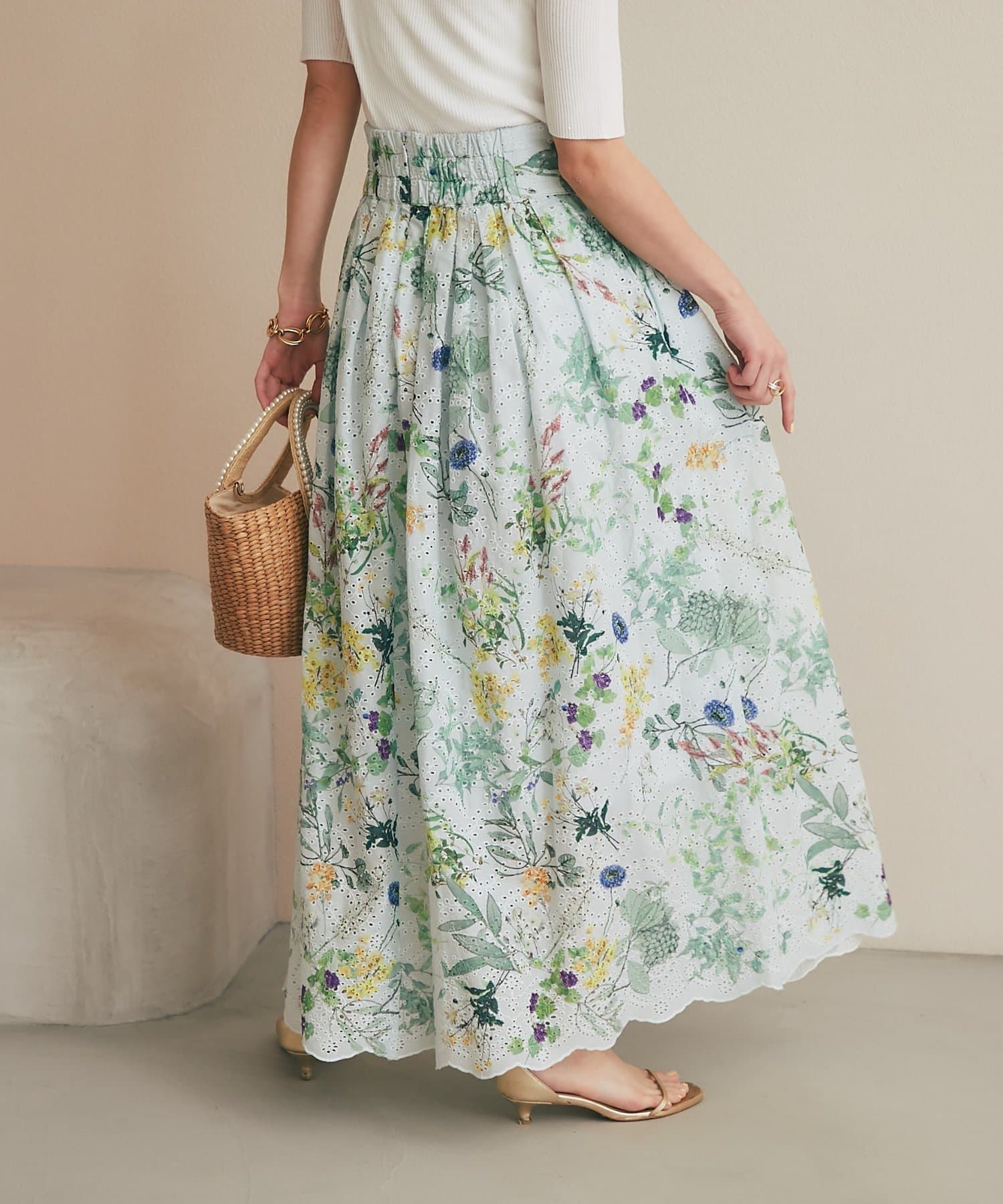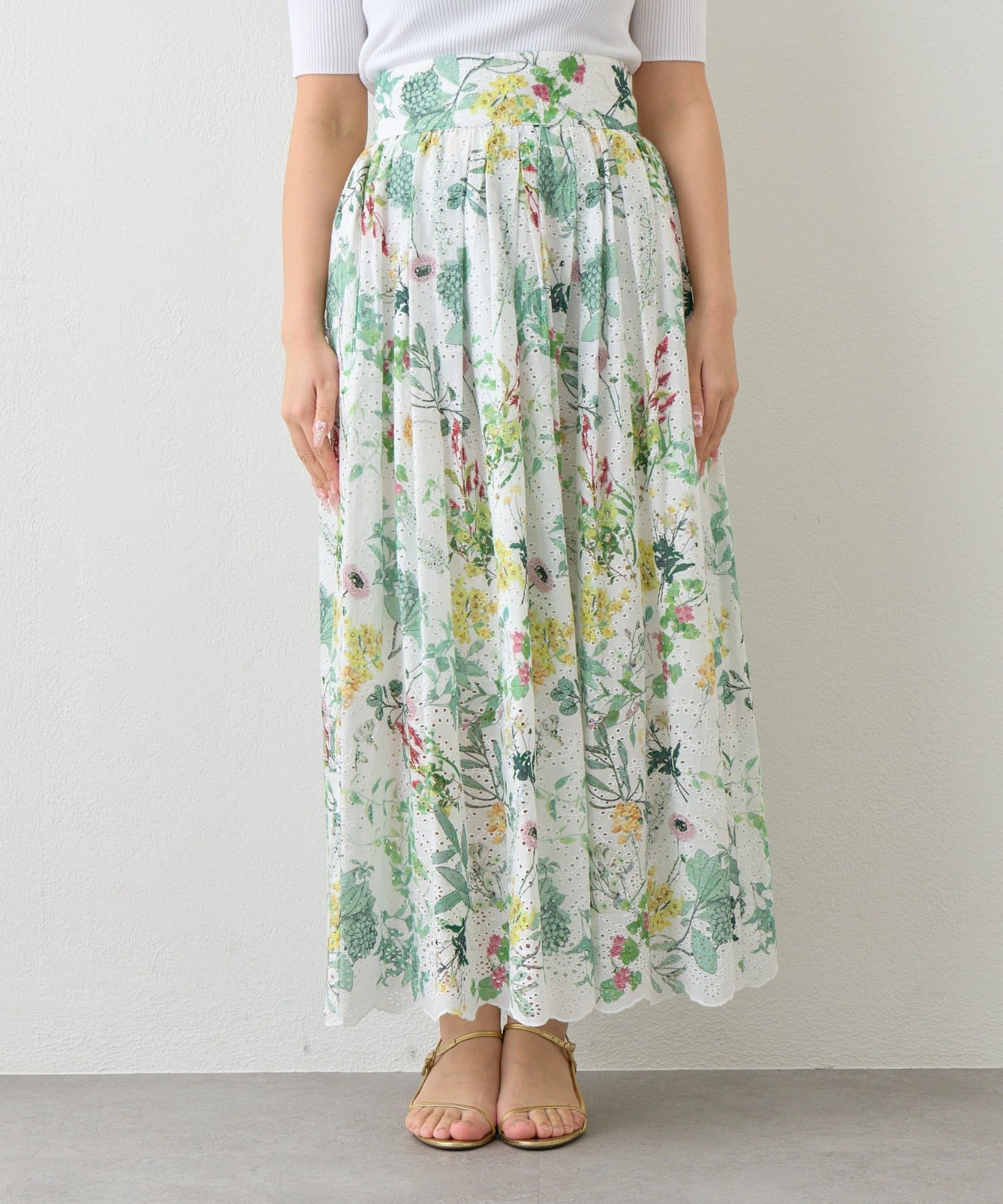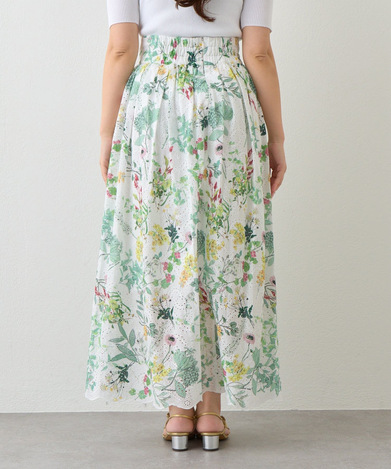 【着映えスカート】エンブロイダリーフラワープリントスカート