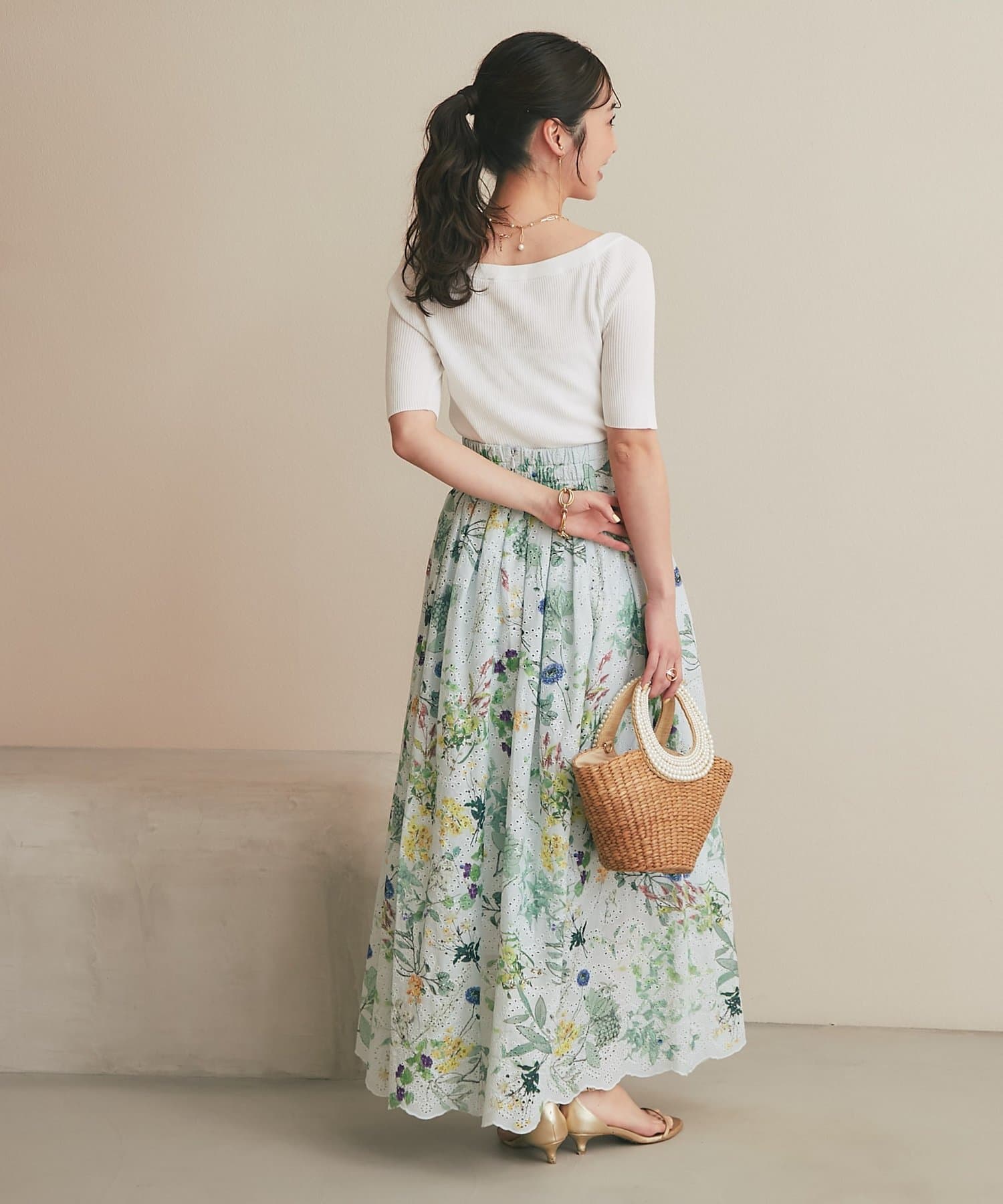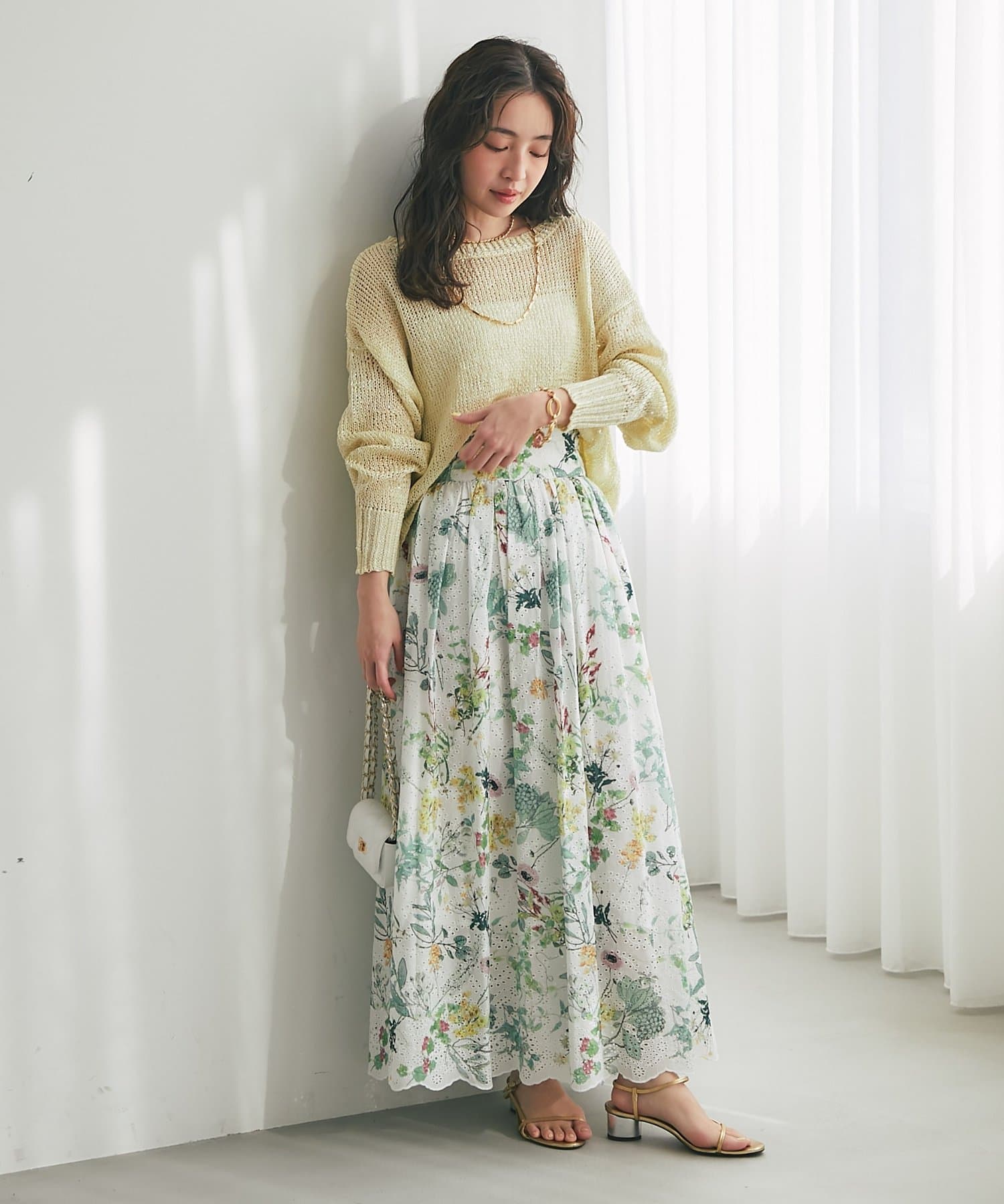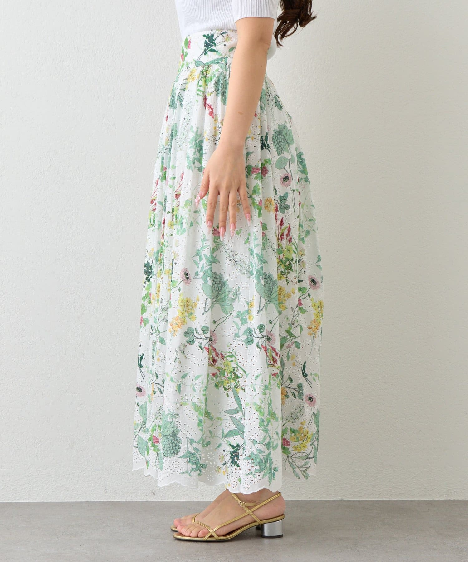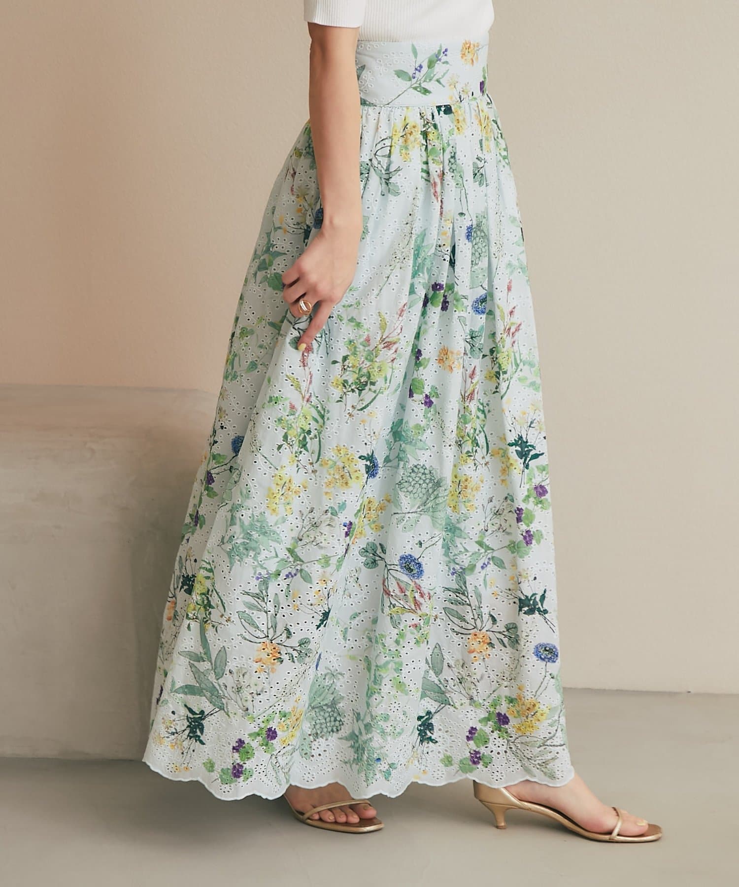 【着映えスカート】エンブロイダリーフラワープリントスカート