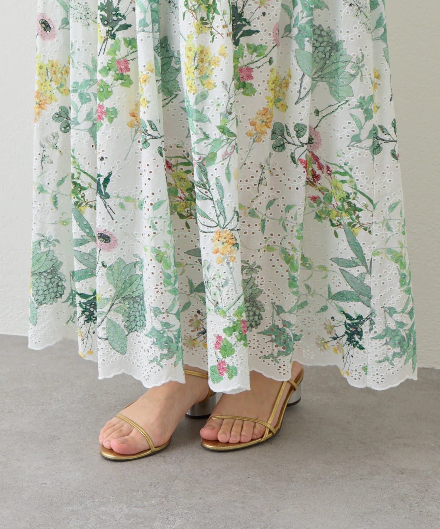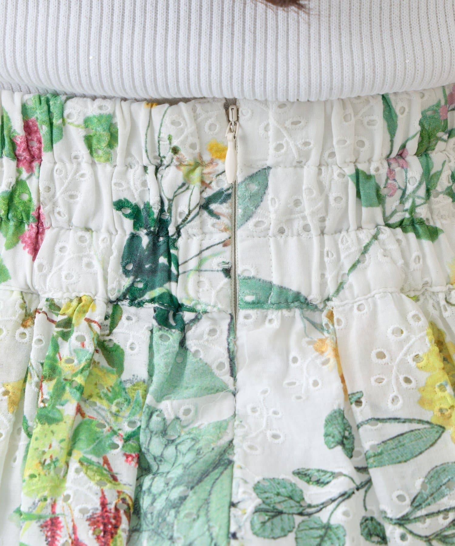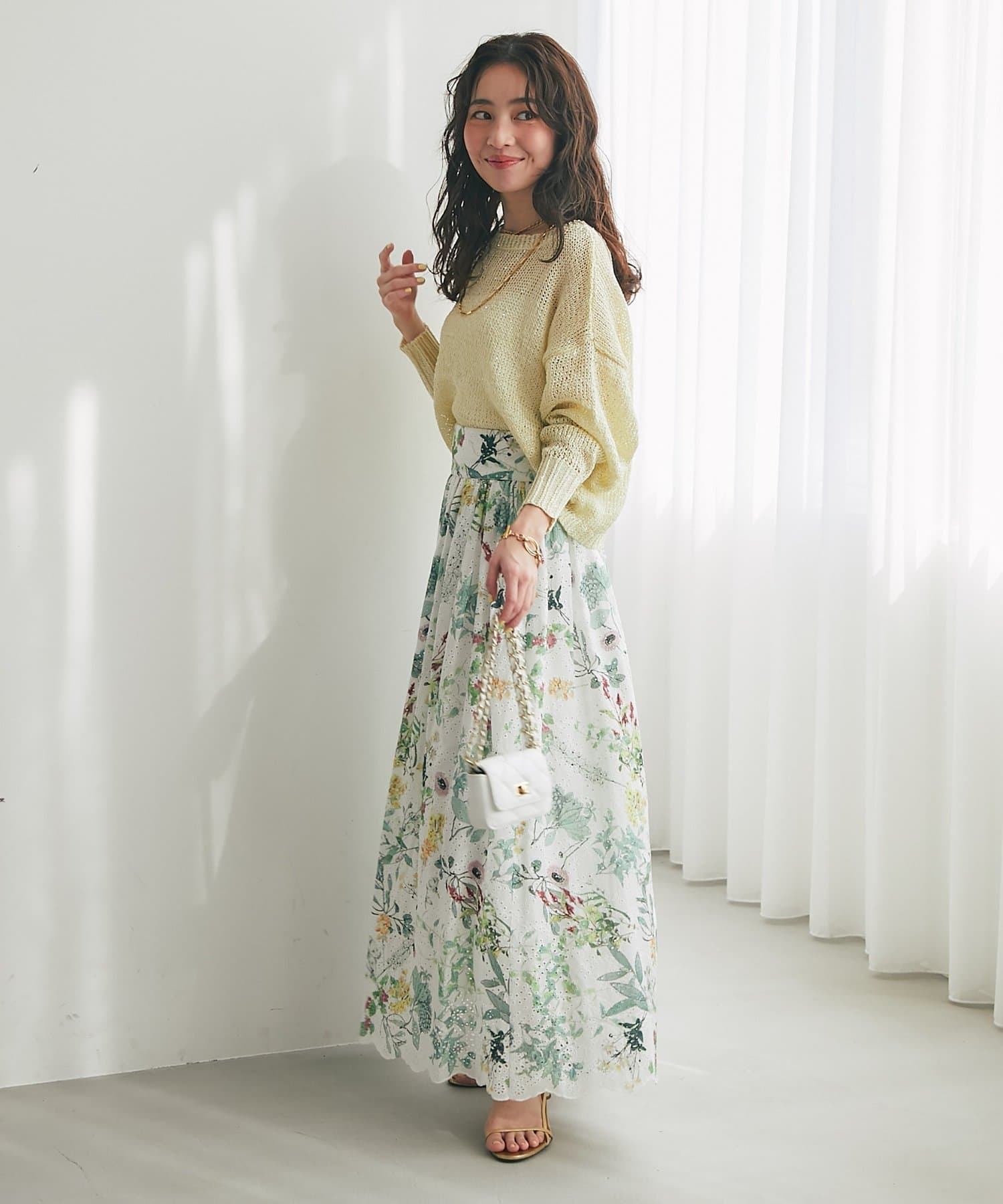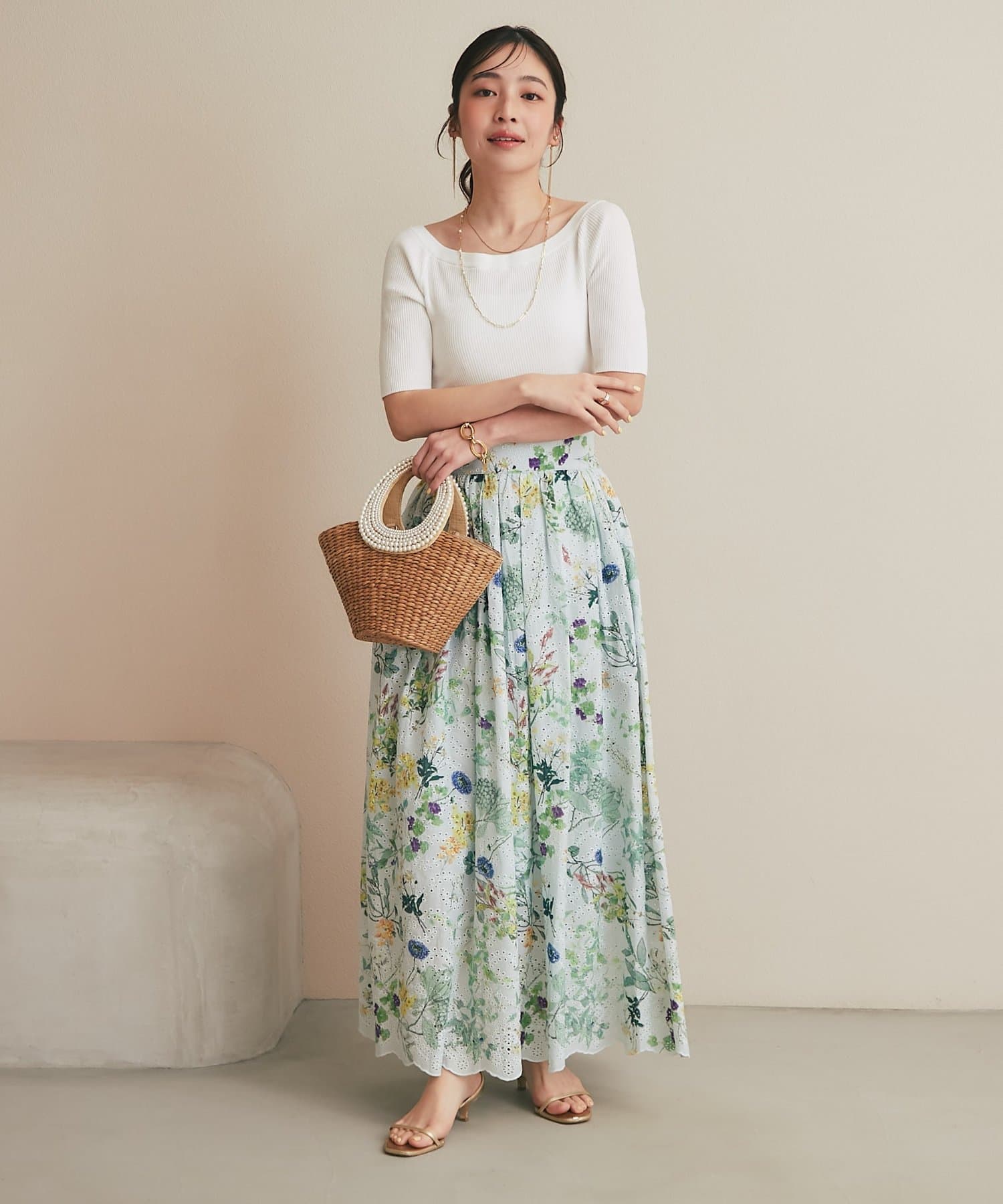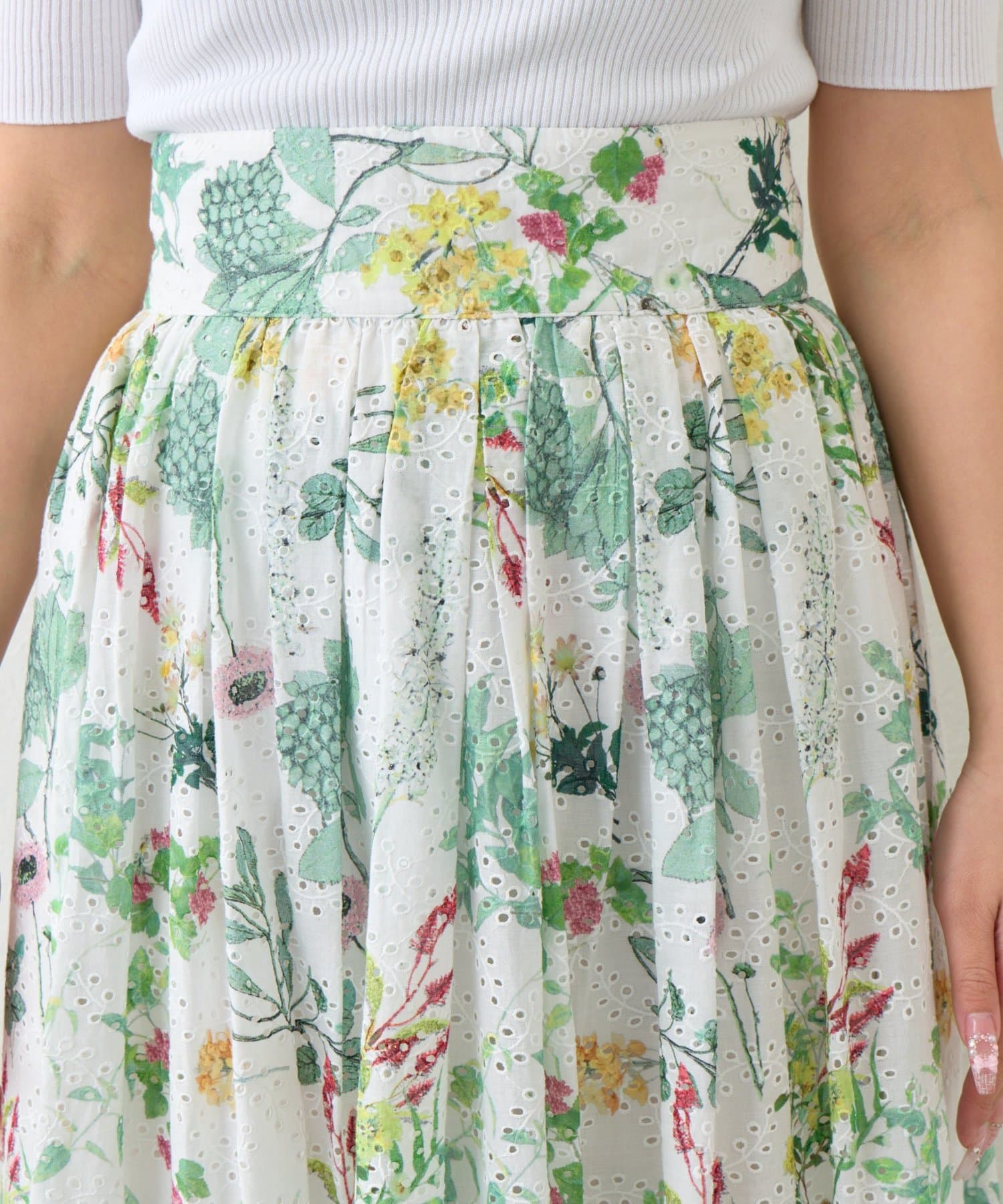 【着映えスカート】エンブロイダリーフラワープリントスカート