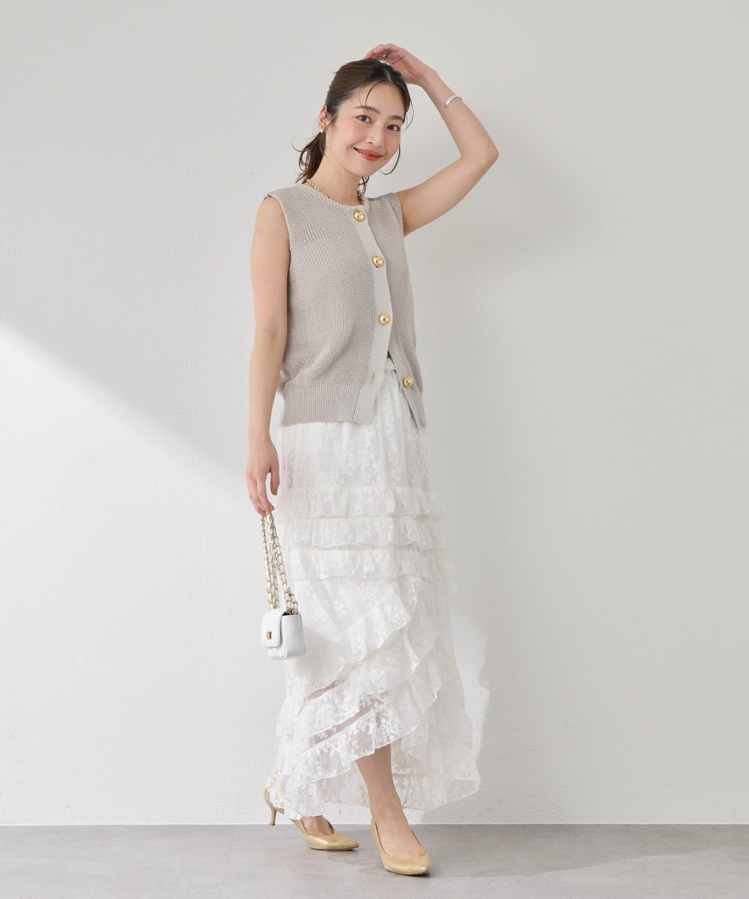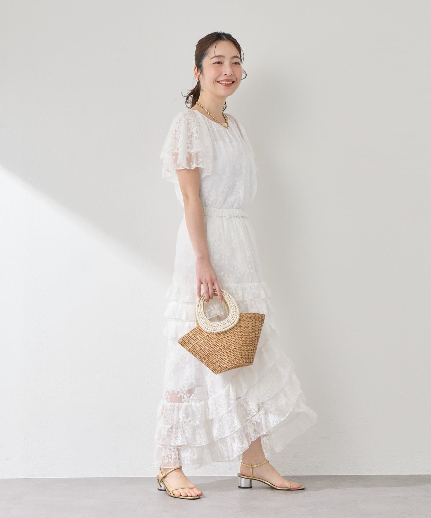 重なり合うフリルが描く、フェミニンなシルエット