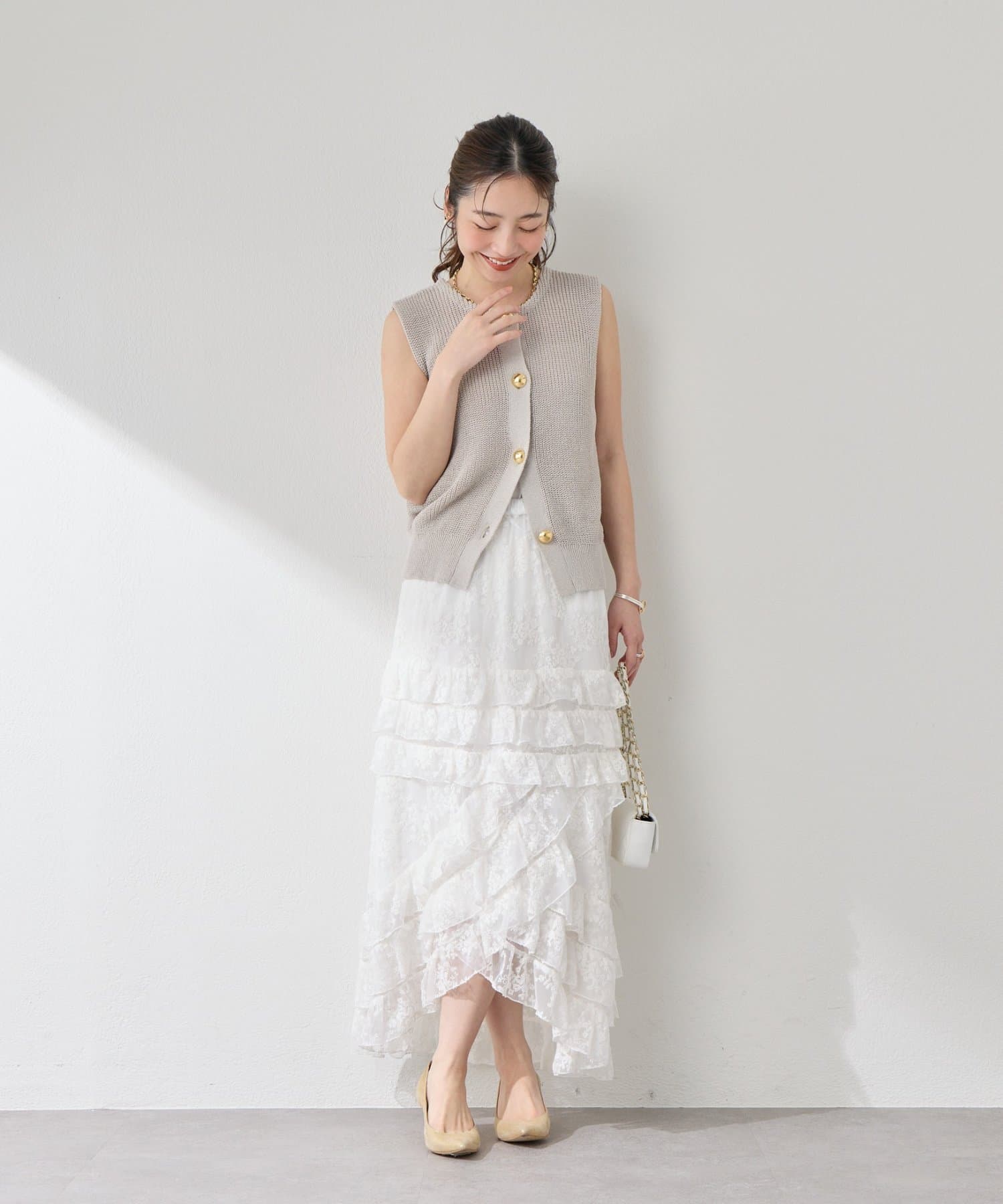 軽やかな透け感のチュールが揺れるたびに、女性らしく柔らかな印象に。