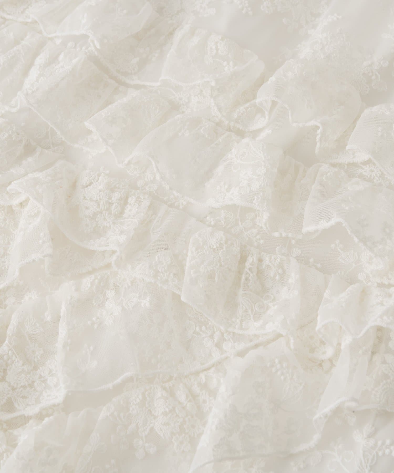 繊細な刺繍を施したチュール素材を使用した、華やかなフリルマキシスカート。