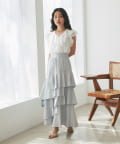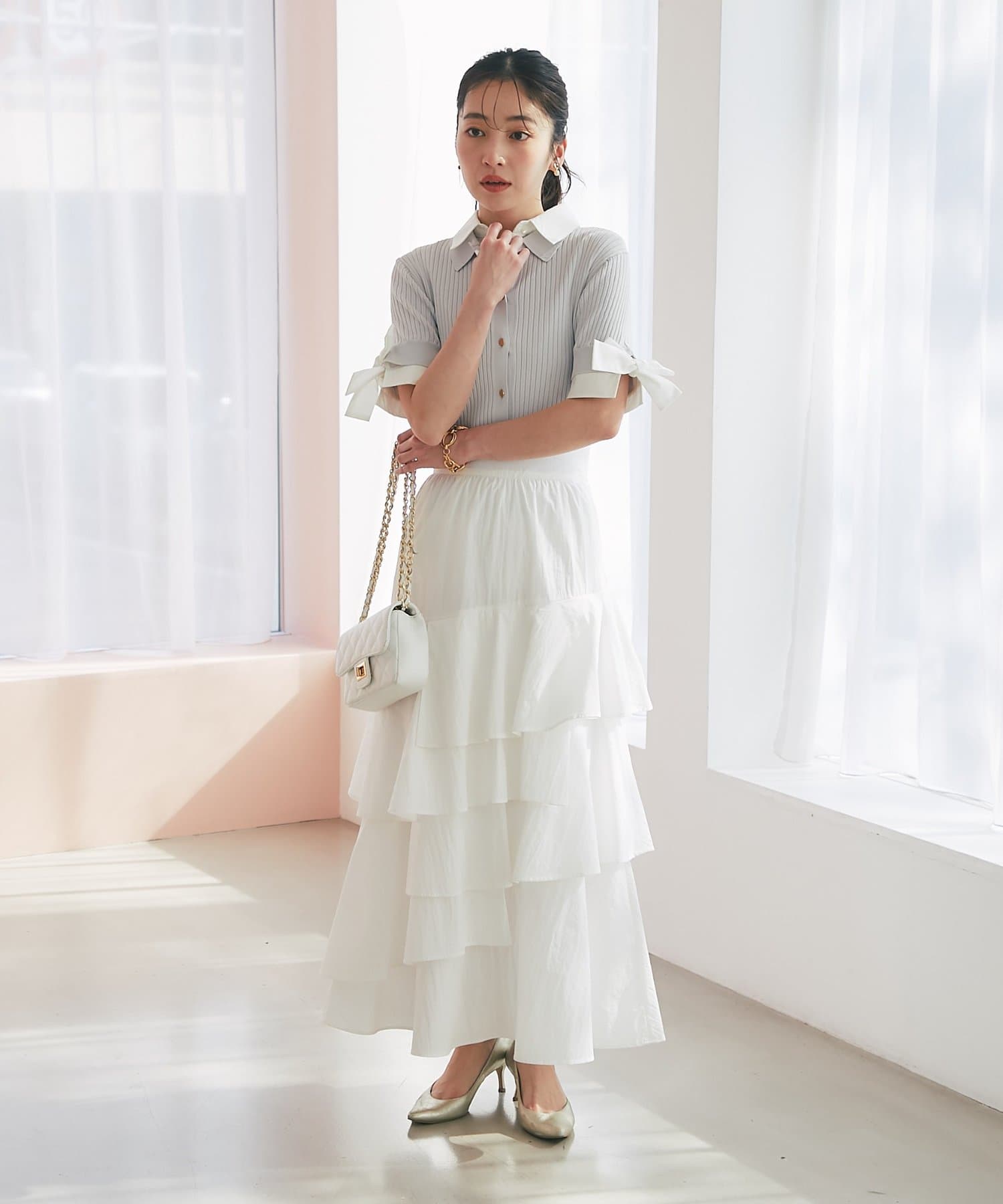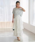 ランダムに何段も重なるフレアが目を惹く印象的なデザインです。