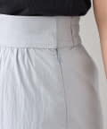 太めのベルトはウエスト周りをすっきりと見せ、後ろがゴム仕様になっているので楽な履き心地です。                                         コットン・ナイロン混のタイプライター素材を使用し、シボ感がありフラットすぎずこなれた印象に。