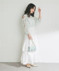 タイトなトップスはもちろんデザインのあるブラウスなどとの着こなしもおすすめ。