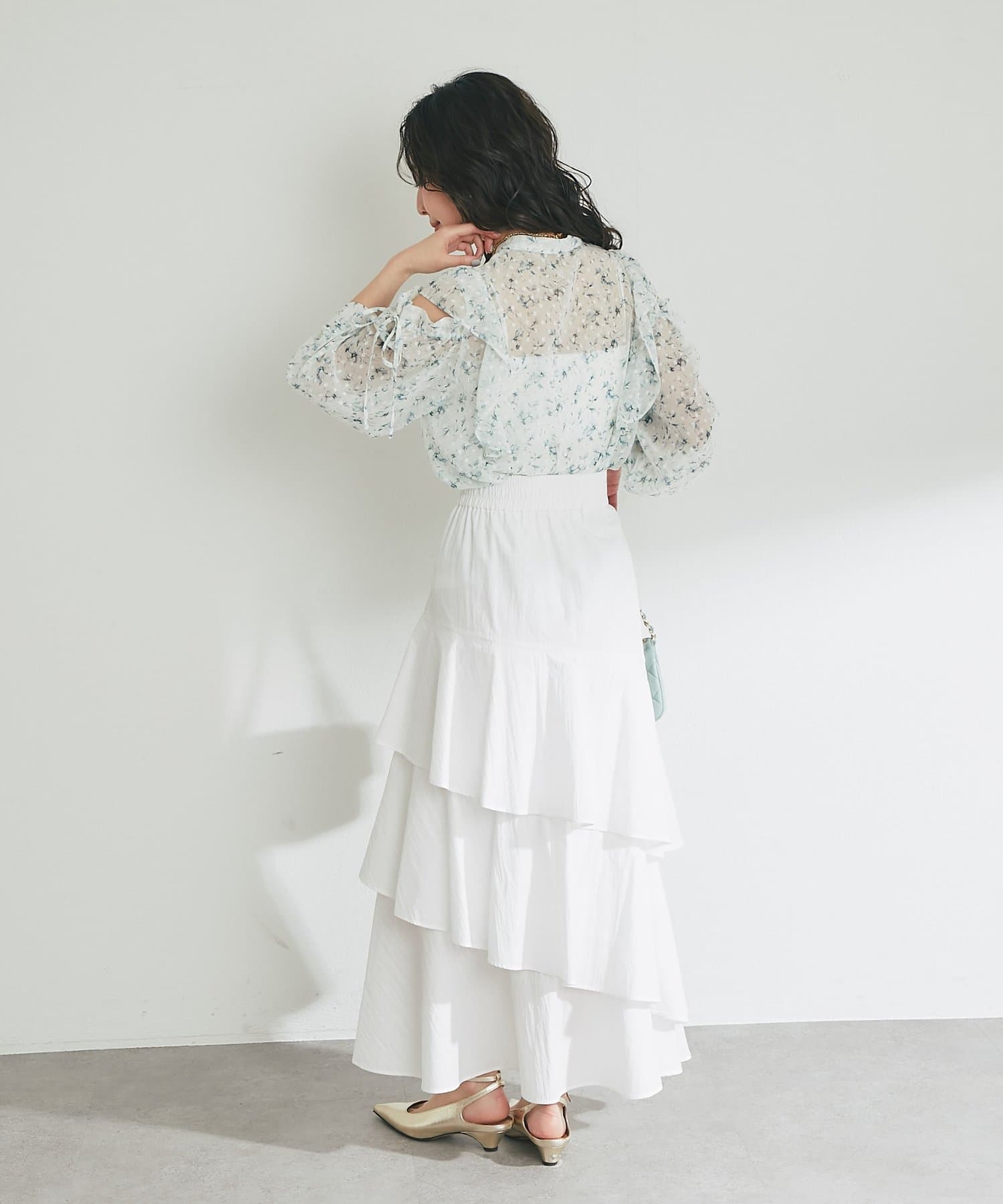 【立体的で華やか】コットンナイロンイレヘムティアードスカート