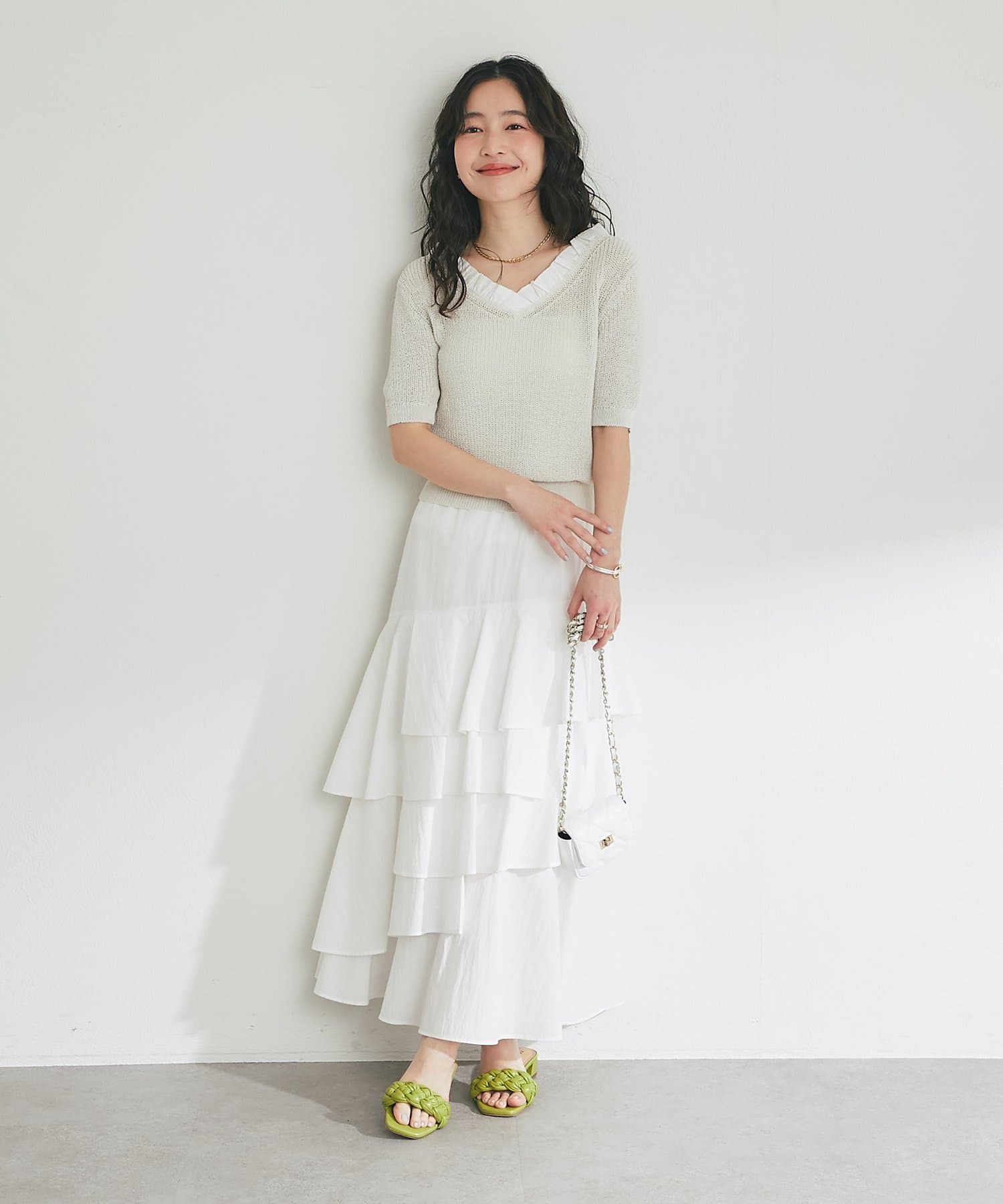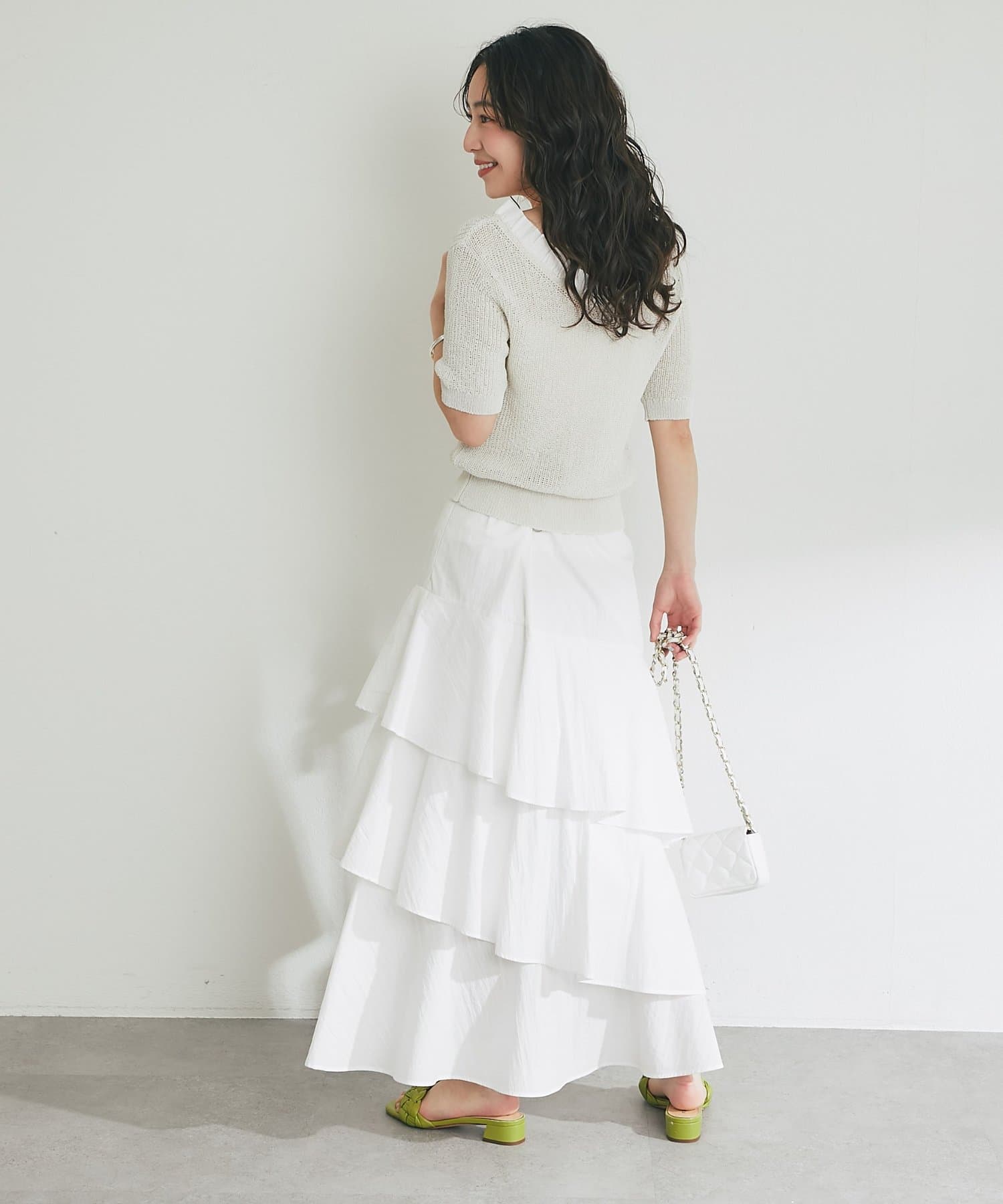 アシメラッフルで華やかに着映えするスカート。